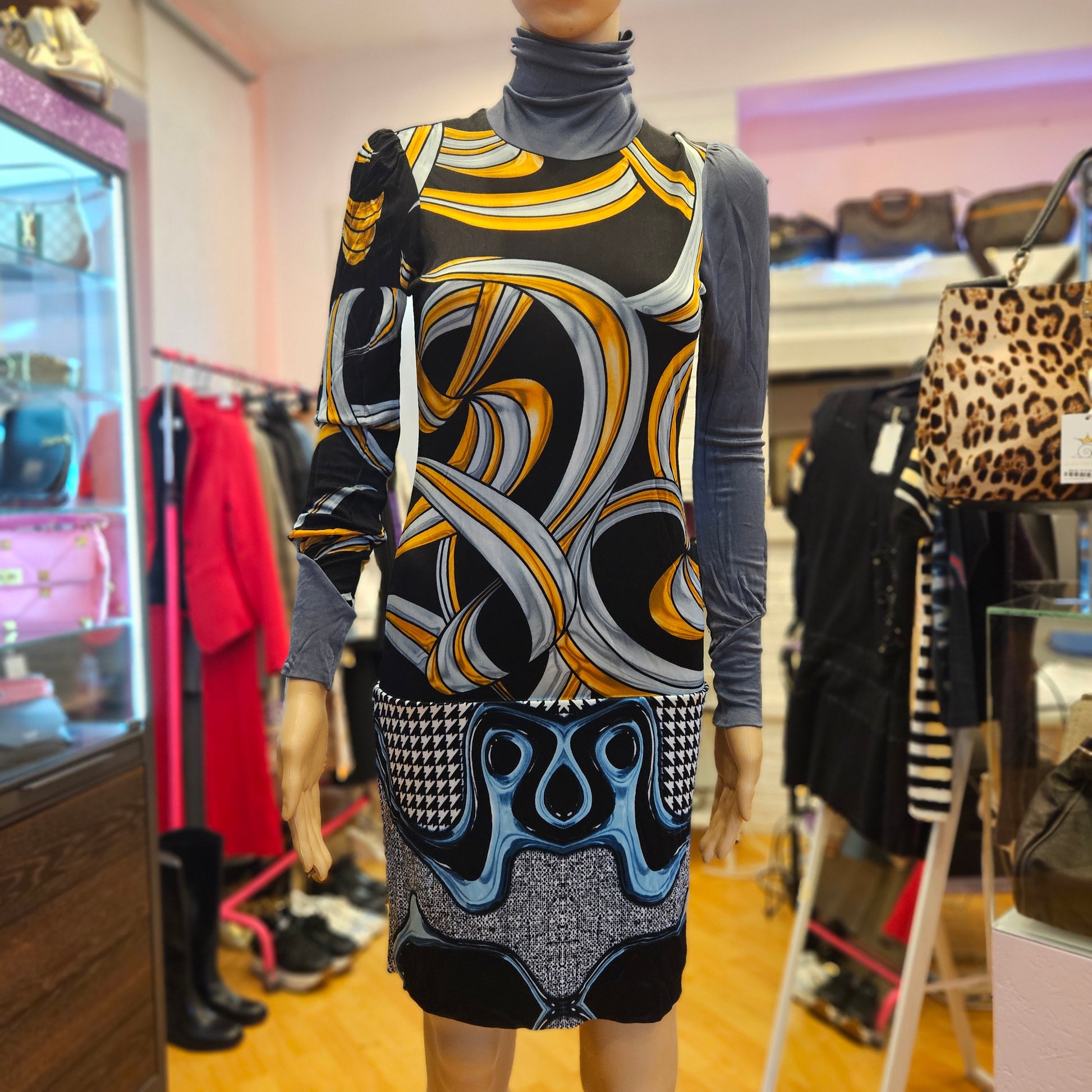 Abito Custo Barcelona tg 2 corrispondente ad una S, completamente in viscosa e molto elasticizzato, Multicolore