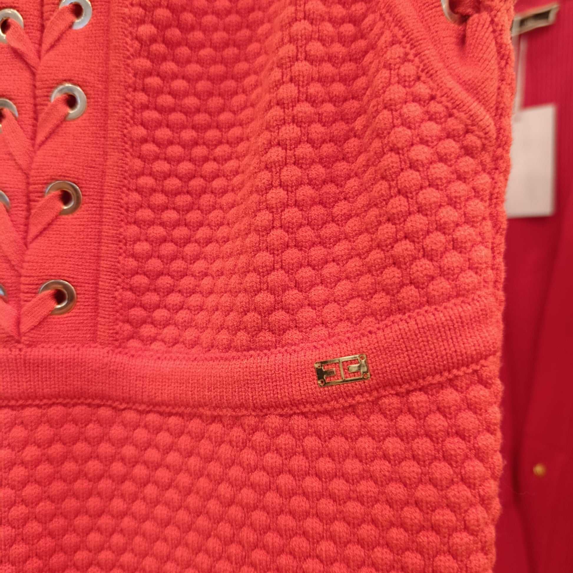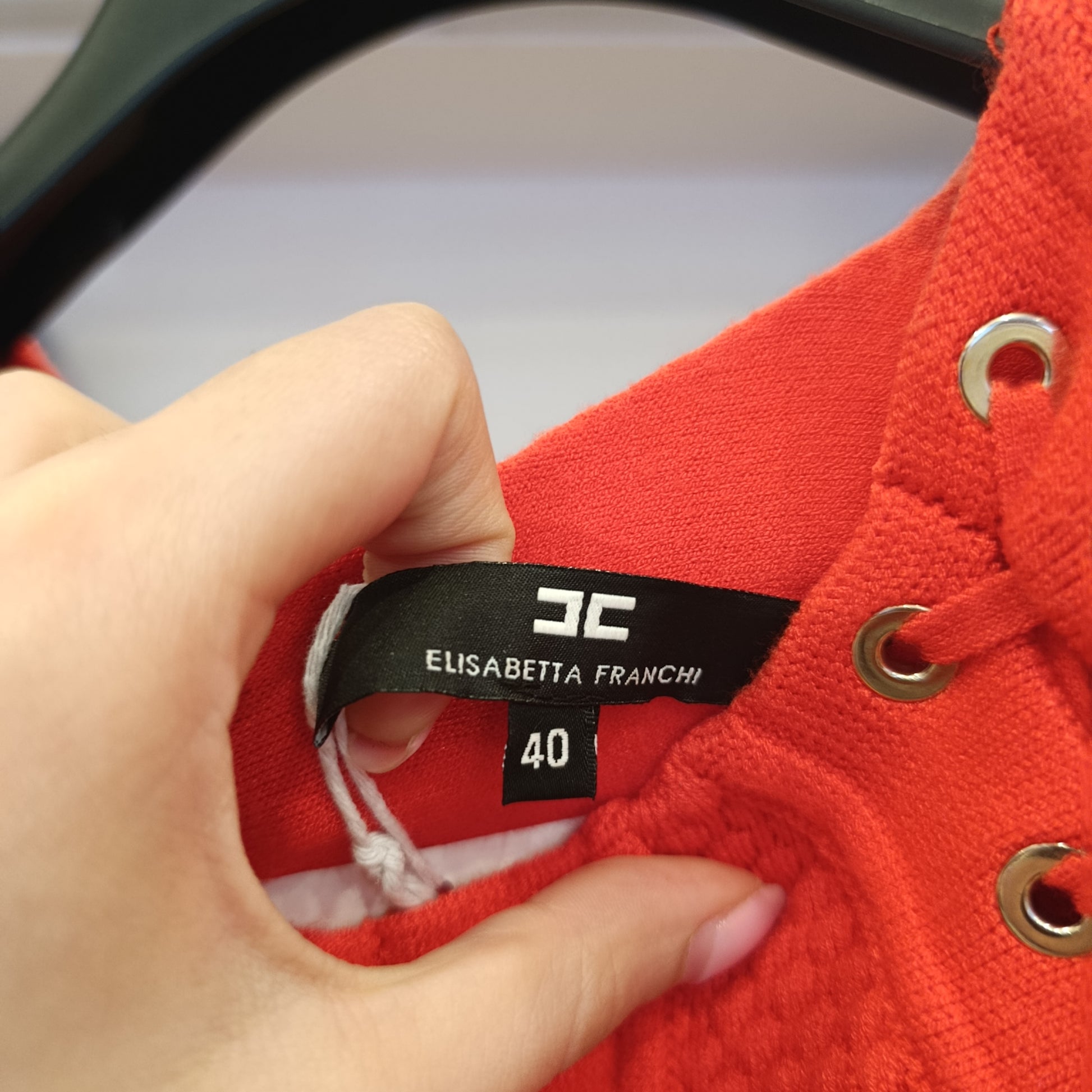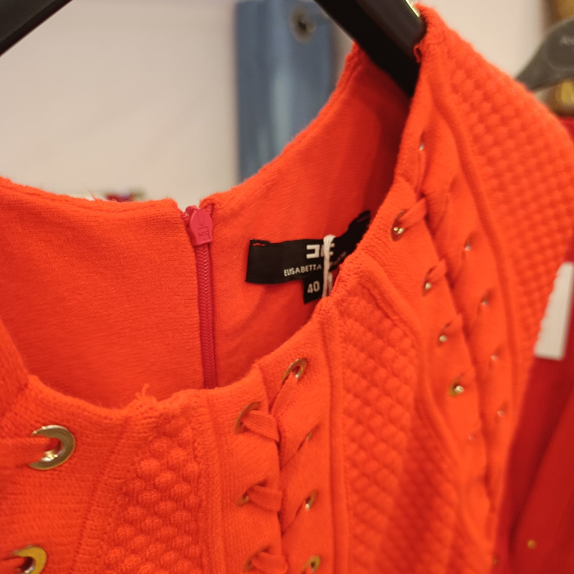 Abito Elisabetta Franchi tg 40, smanicato da portare aderente, fascia perfettamente il corpo rimanendo elastico,dettaglio intrecciato sulla scollatura, con dettaglio logo dorato