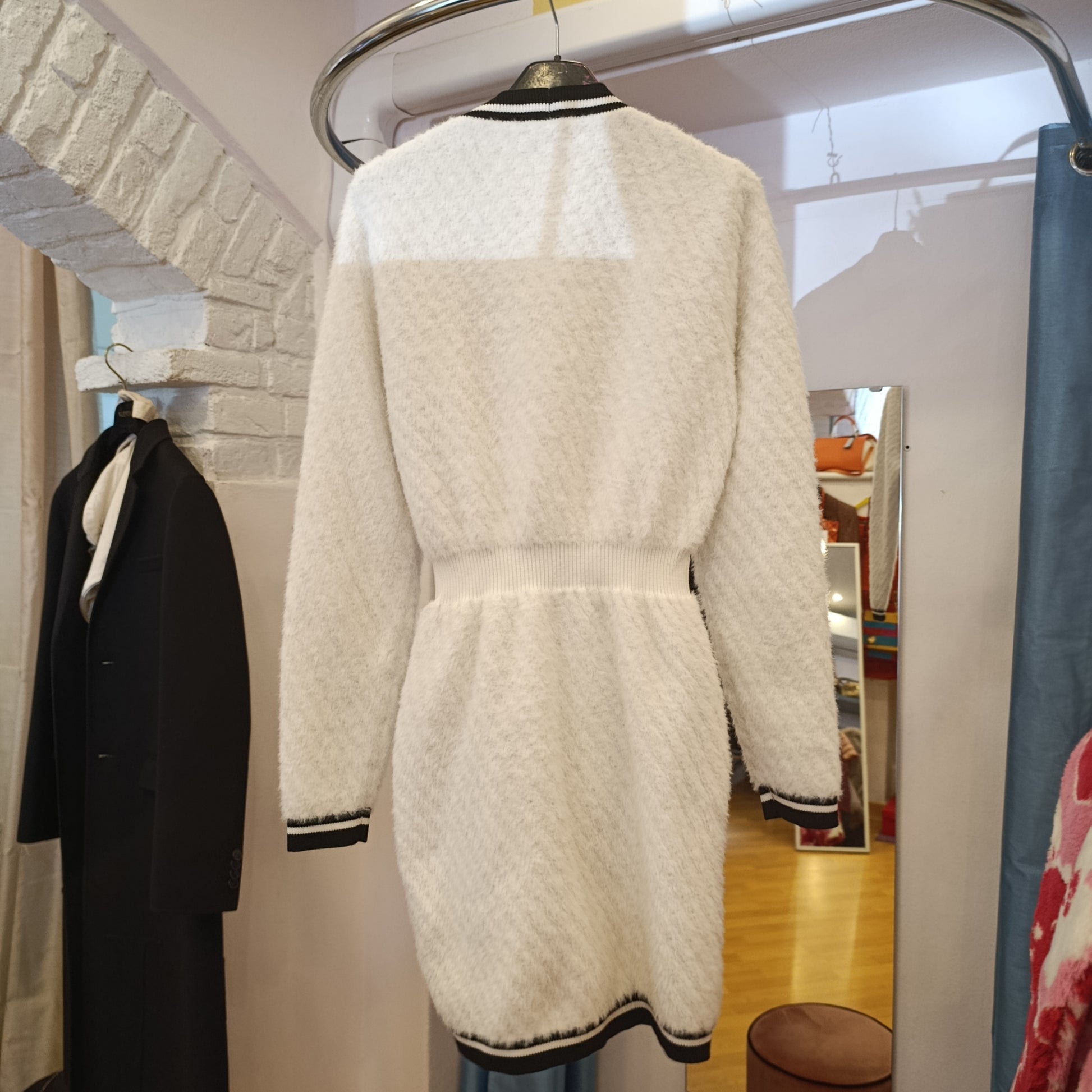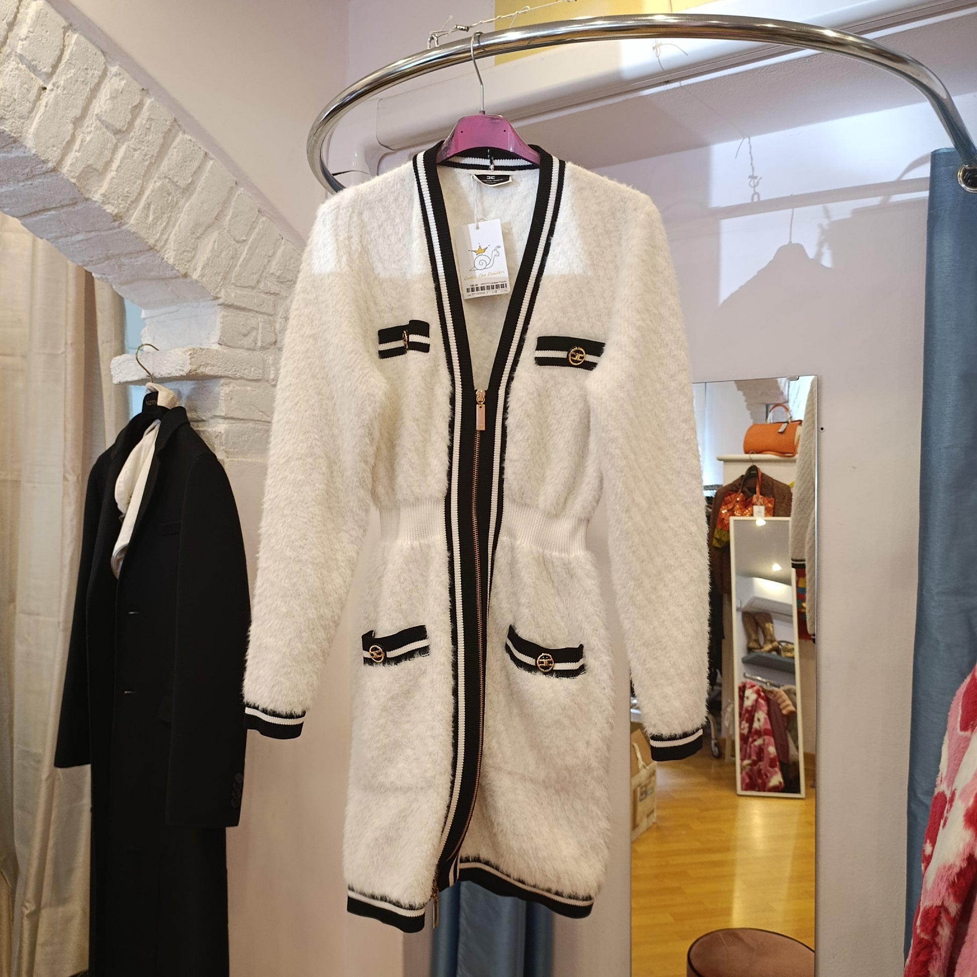 Stupendo abito Elisabetta Franchi tg 42 colorazione bianca effetto Teddy, presenta bottoni logo sul fronte Chiusura zip dorata a manica lunga, condizioni ottimali
