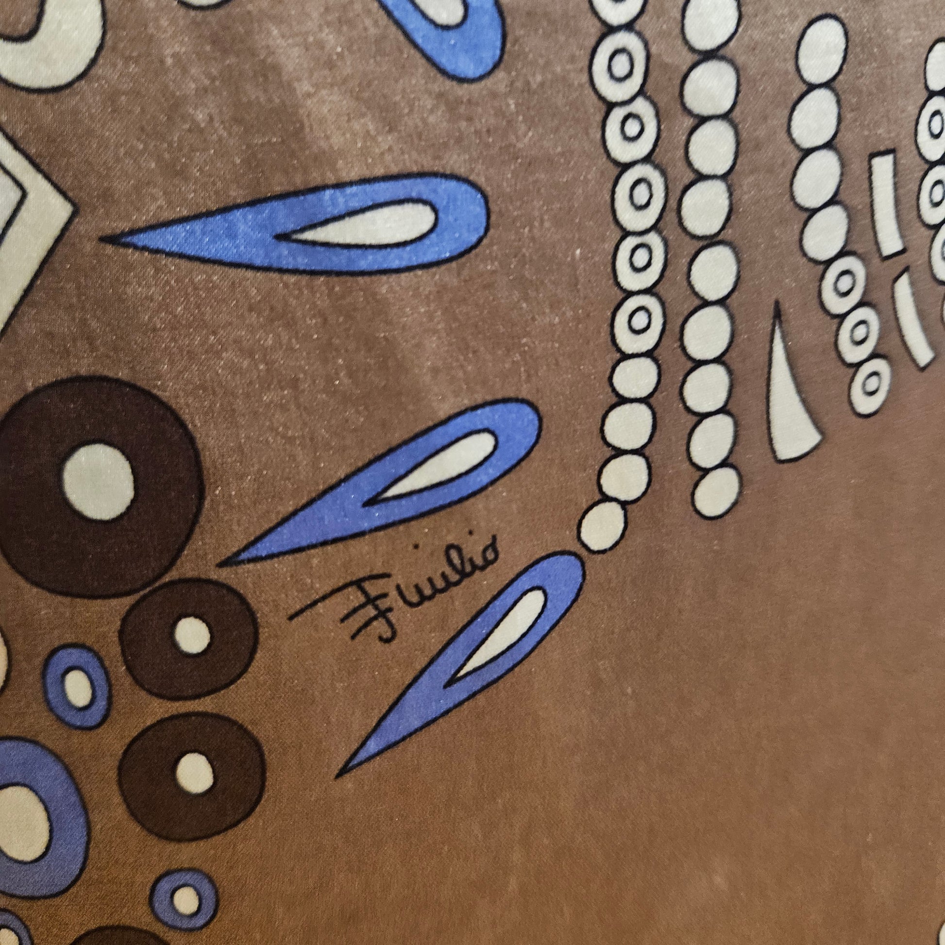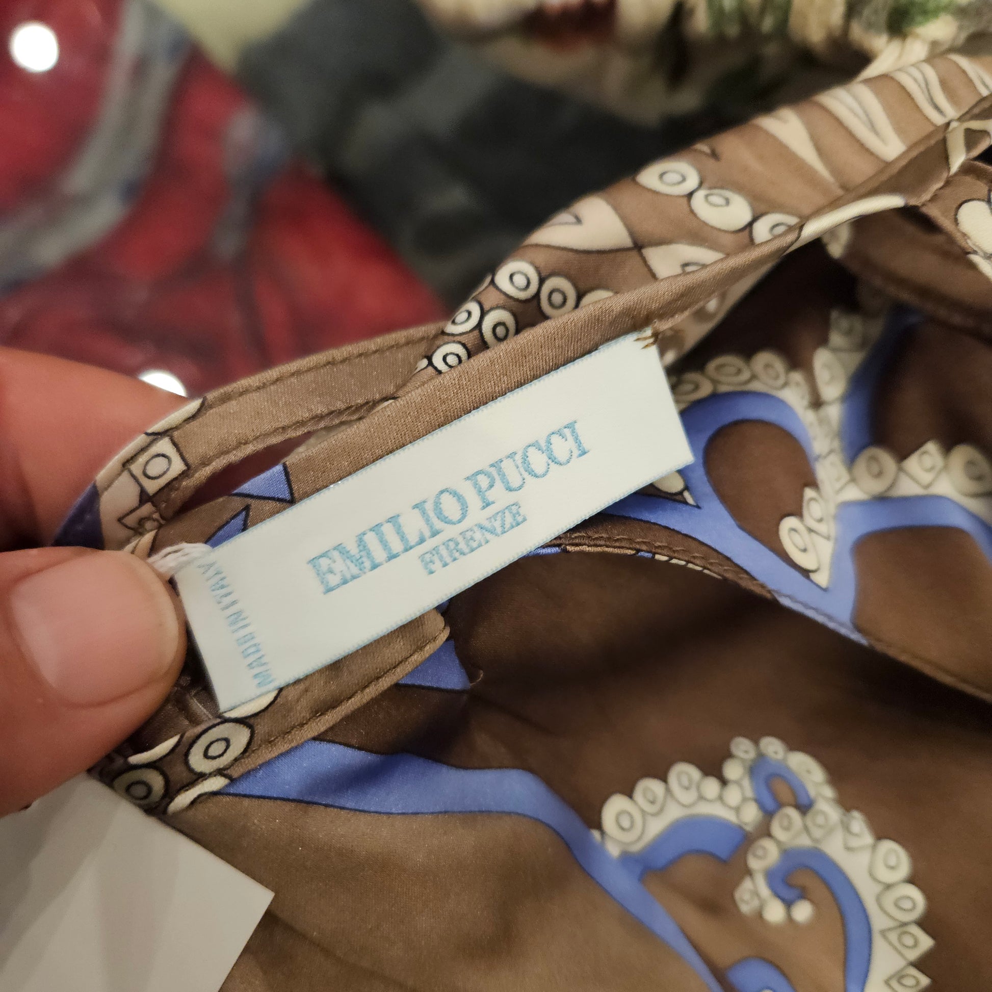 Bellissimo abito Emilio Pucci tg 38, in colorazione marrone motivo damascato blu e viola e beige., ampia scollatura posteriore data dalle spalline.