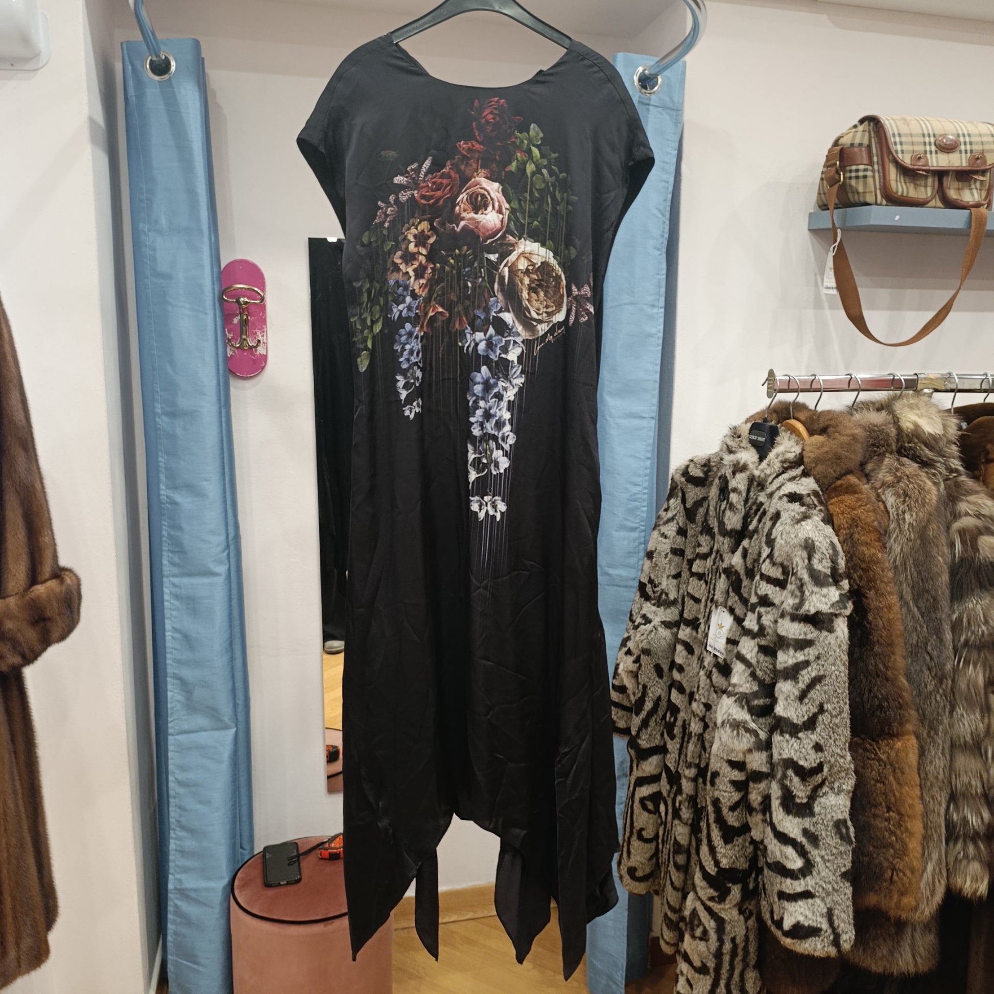 Maxi abito morbido e ampio, nero con fantasia floreale colorata di All Saints tg EU36.