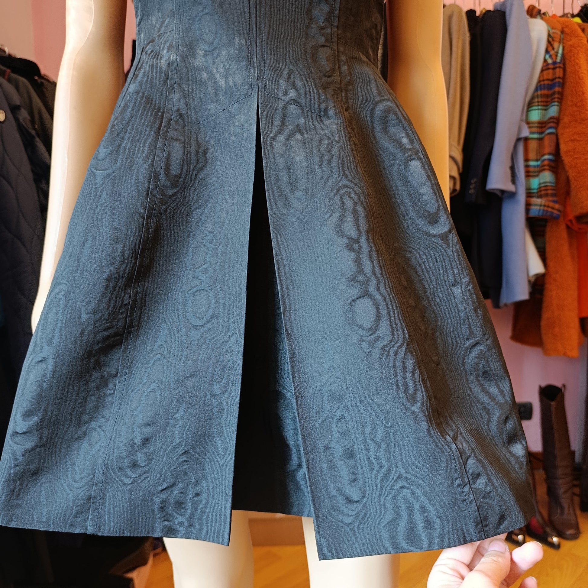 Riporta questa texture che sembra quasi un grande maculato cromato su tutto l'abito, e questo colletto applicato con dei ricami curati nei minimi dettagli.