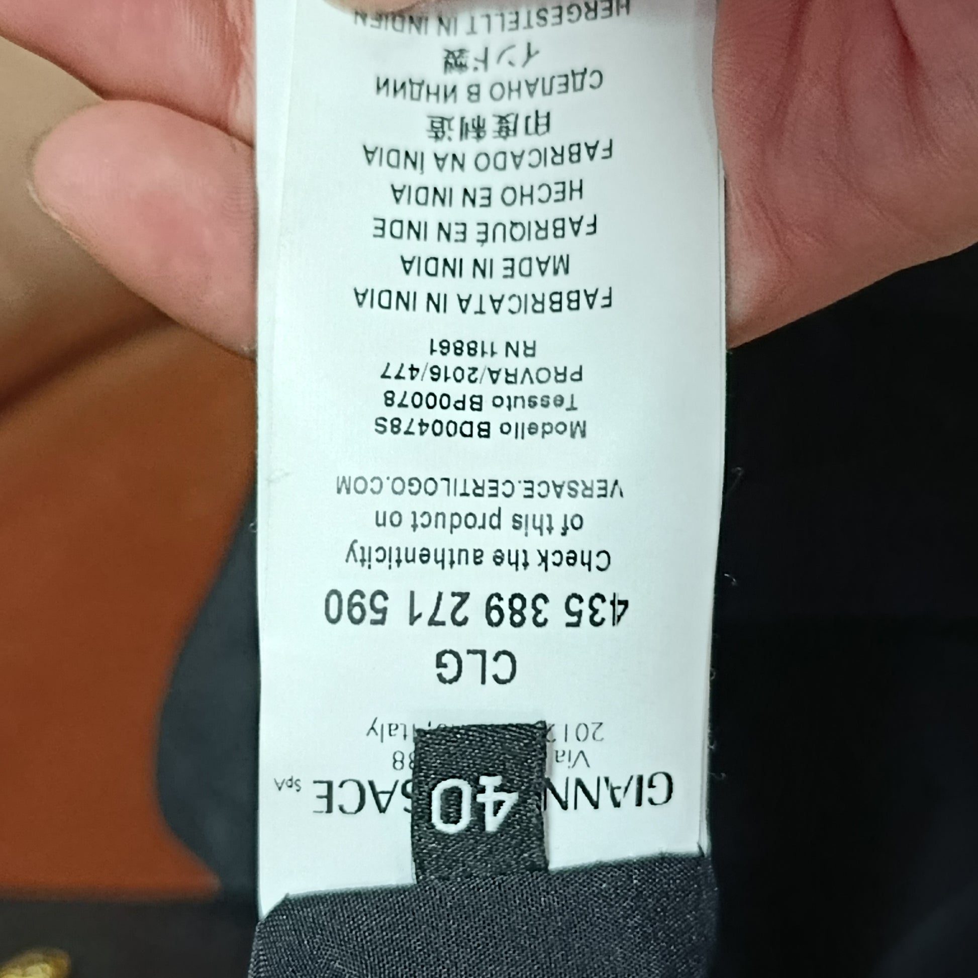 Ha questi dettagli in oro su tutto il colletto che ricordano la classica medusa di Versace.