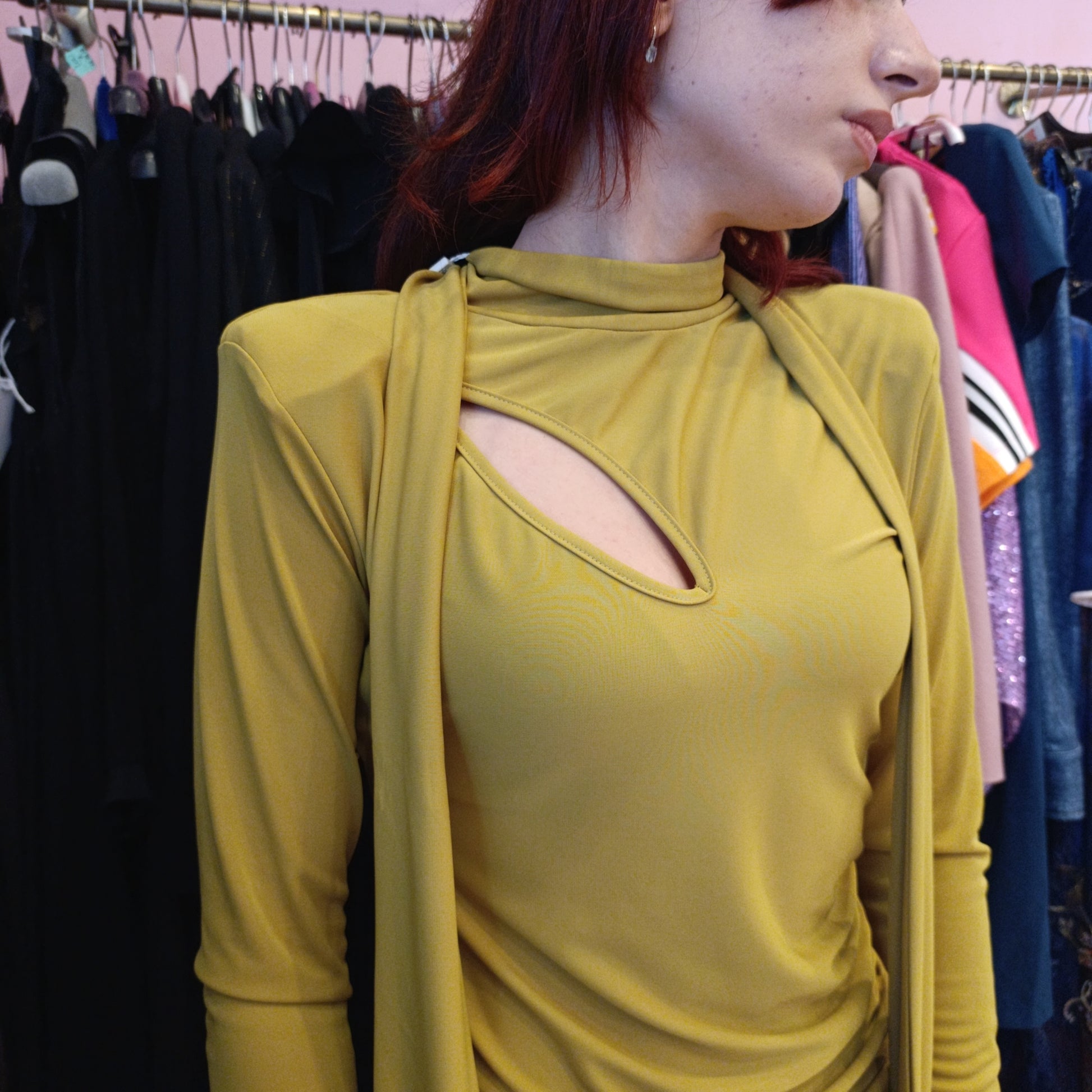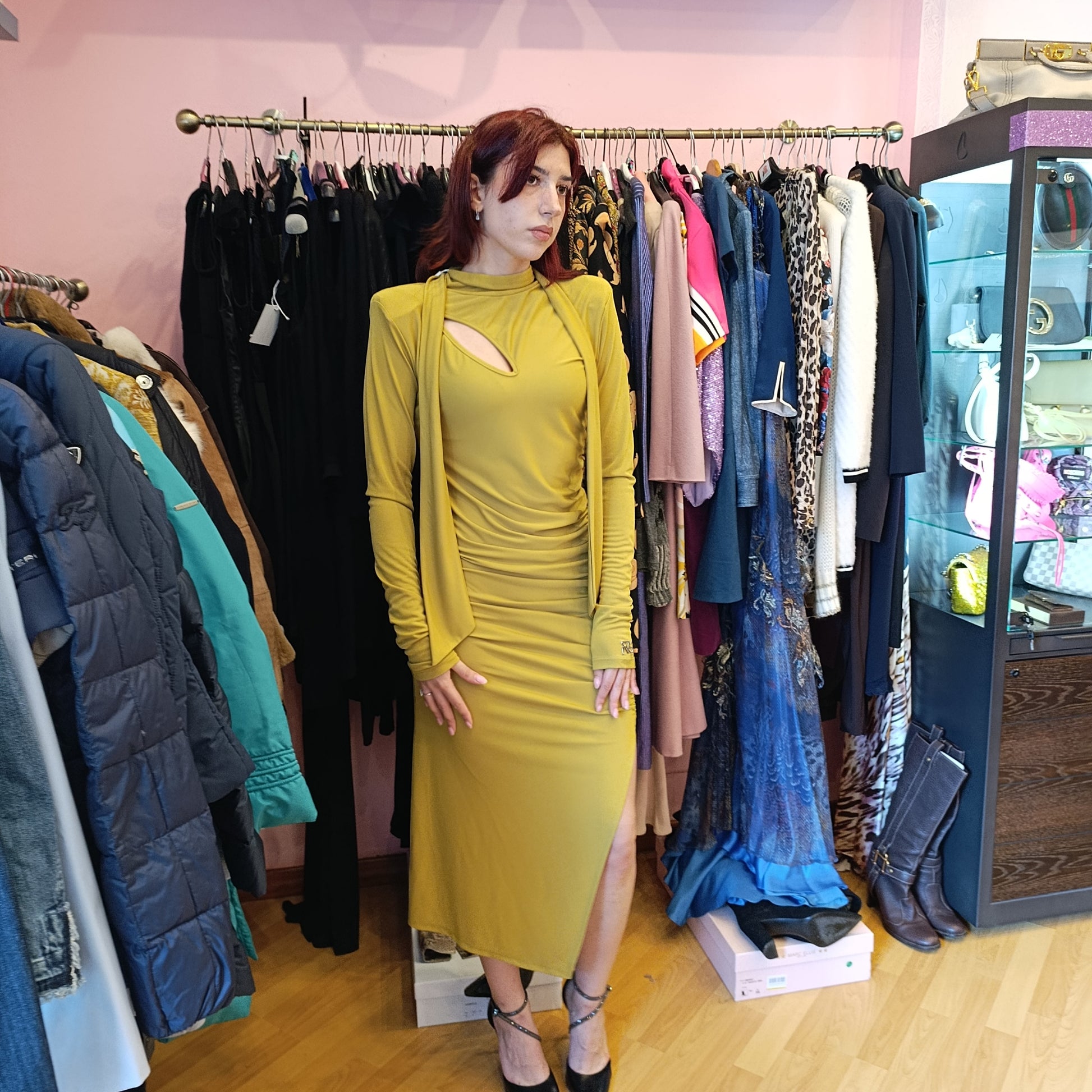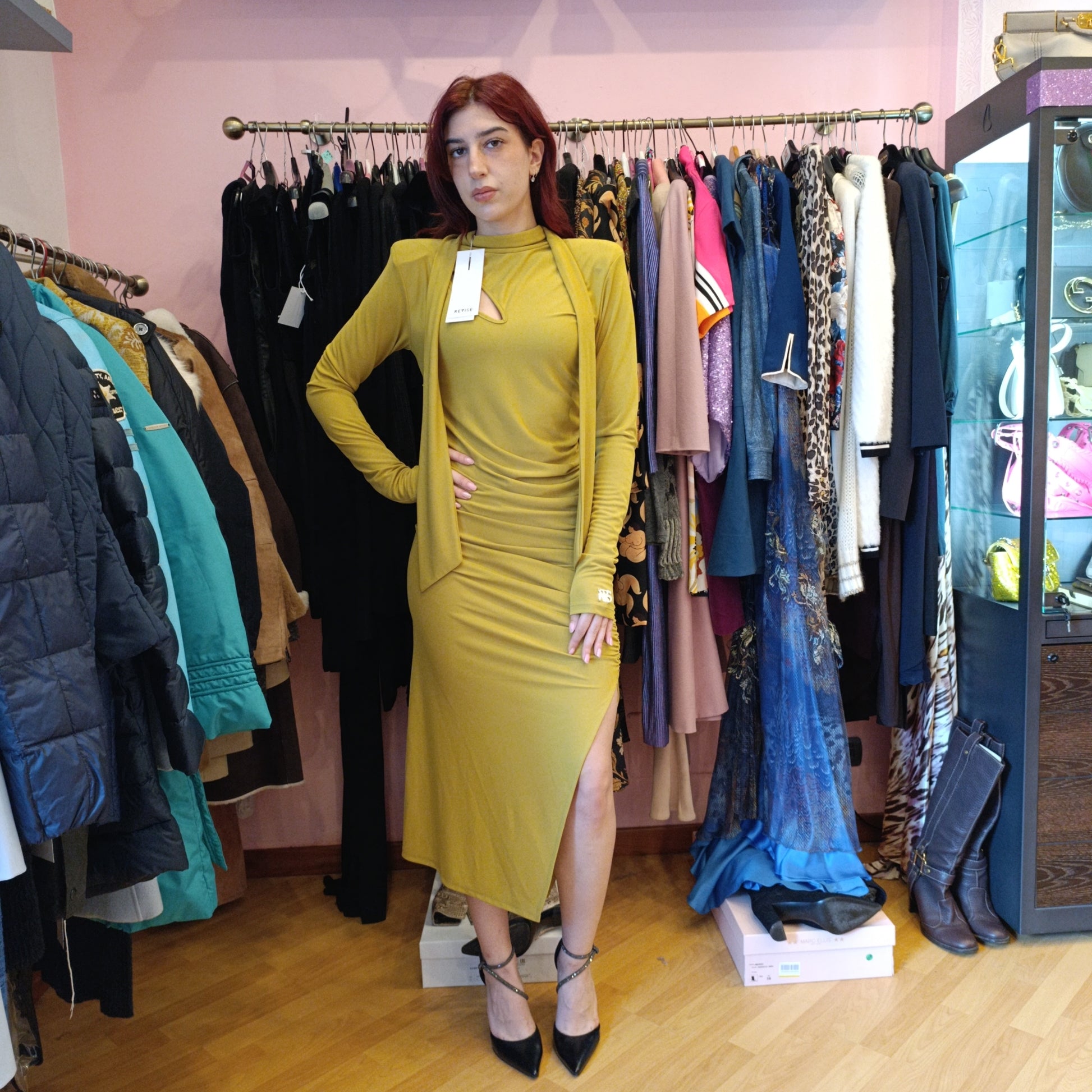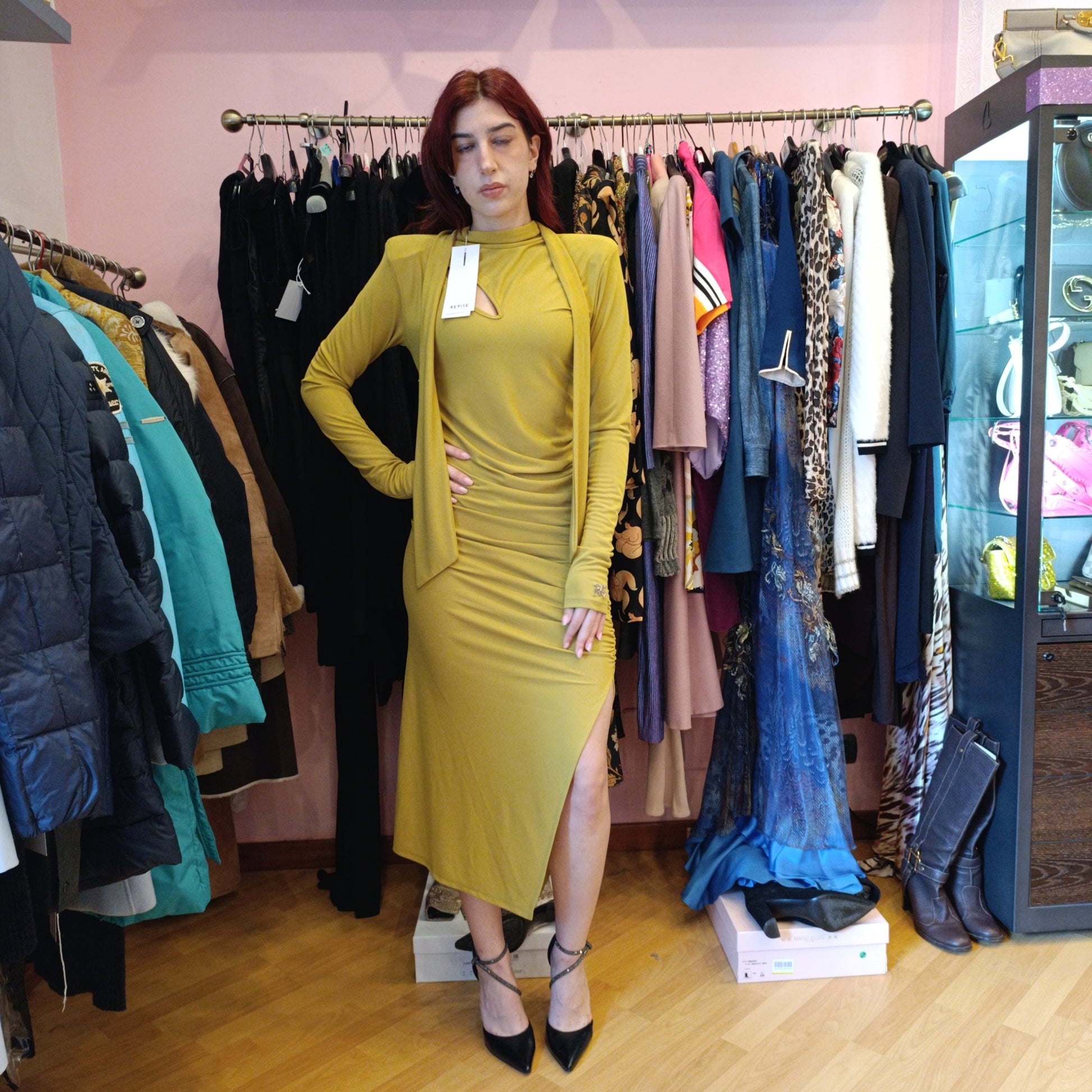 Abito revise nuovo con cartellino tg 44 vestibilità ridotta, zip sul fianco, dettaglio cut out sul fronte, arricciato sul fianco, manica lunga con spalline imbottite