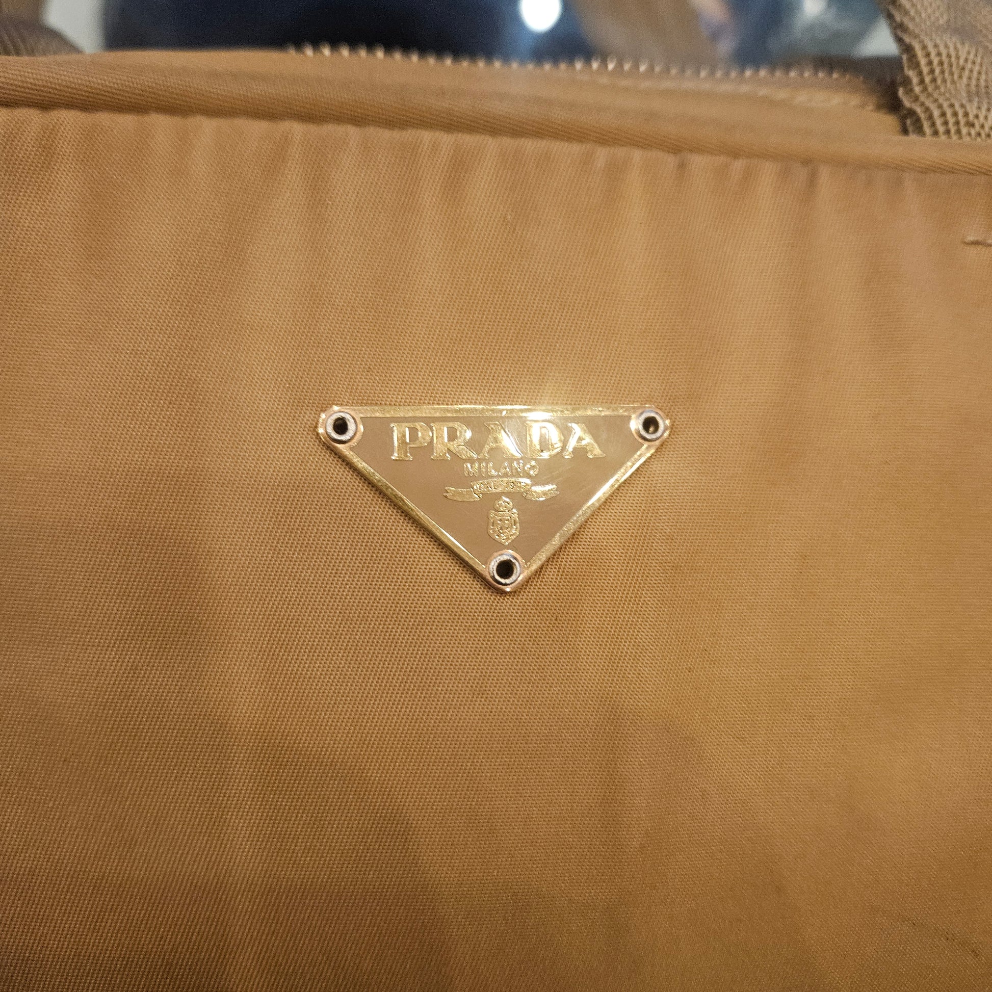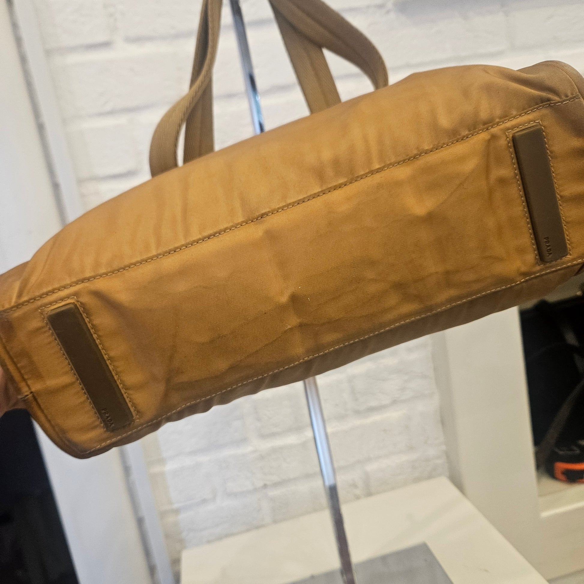 Bauletto Prada in tessuto tecnico colorazione senape . La borsa si presenta in buone condizioni ma presenta segni dovuti all'uso e al tempo