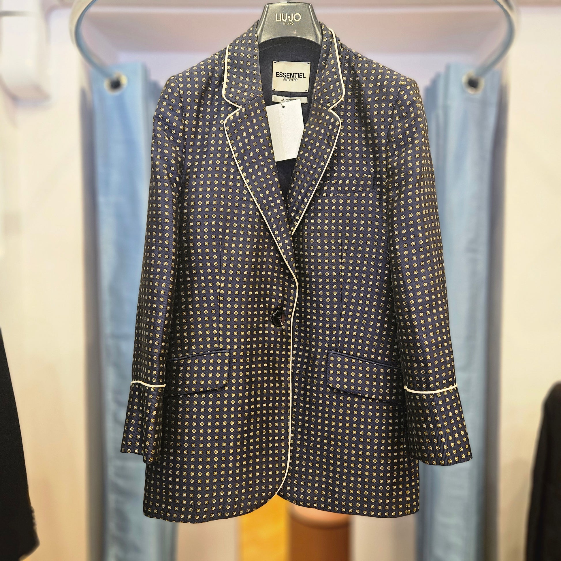 Blazer Essentiel tg38 in colorazione,ione blu con fiorellini gialli