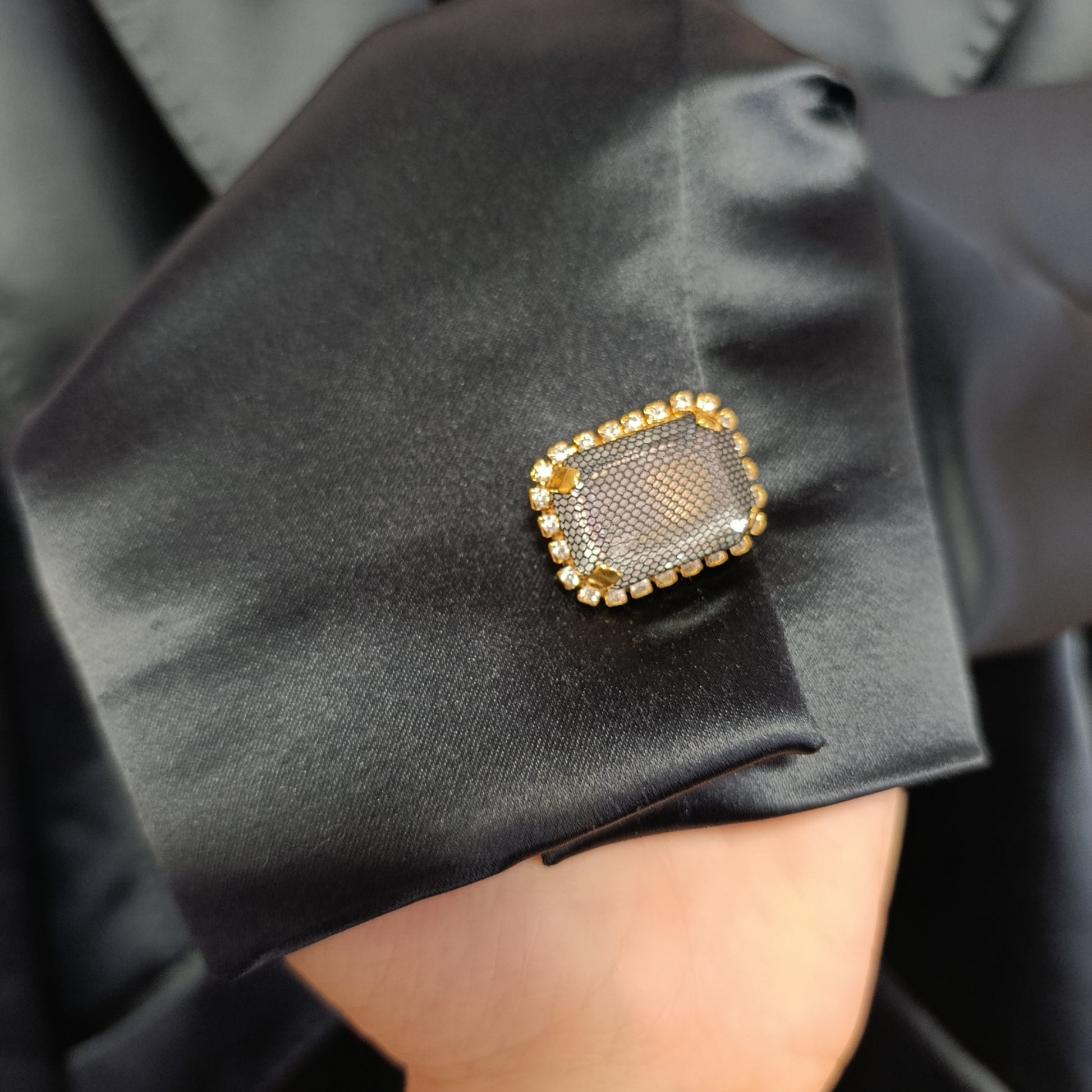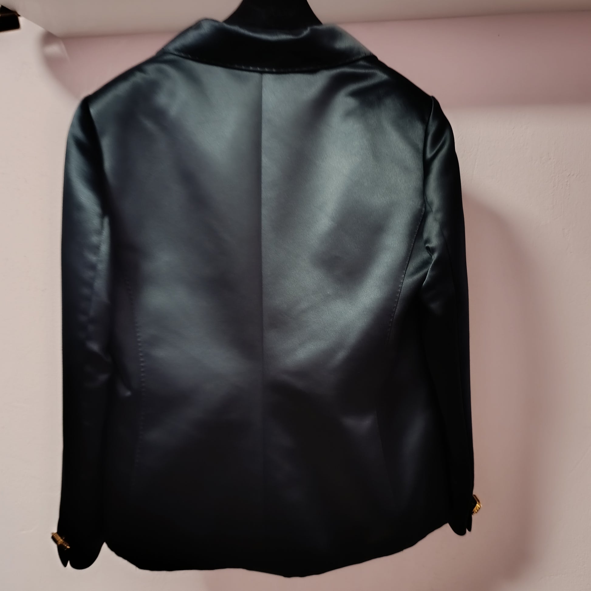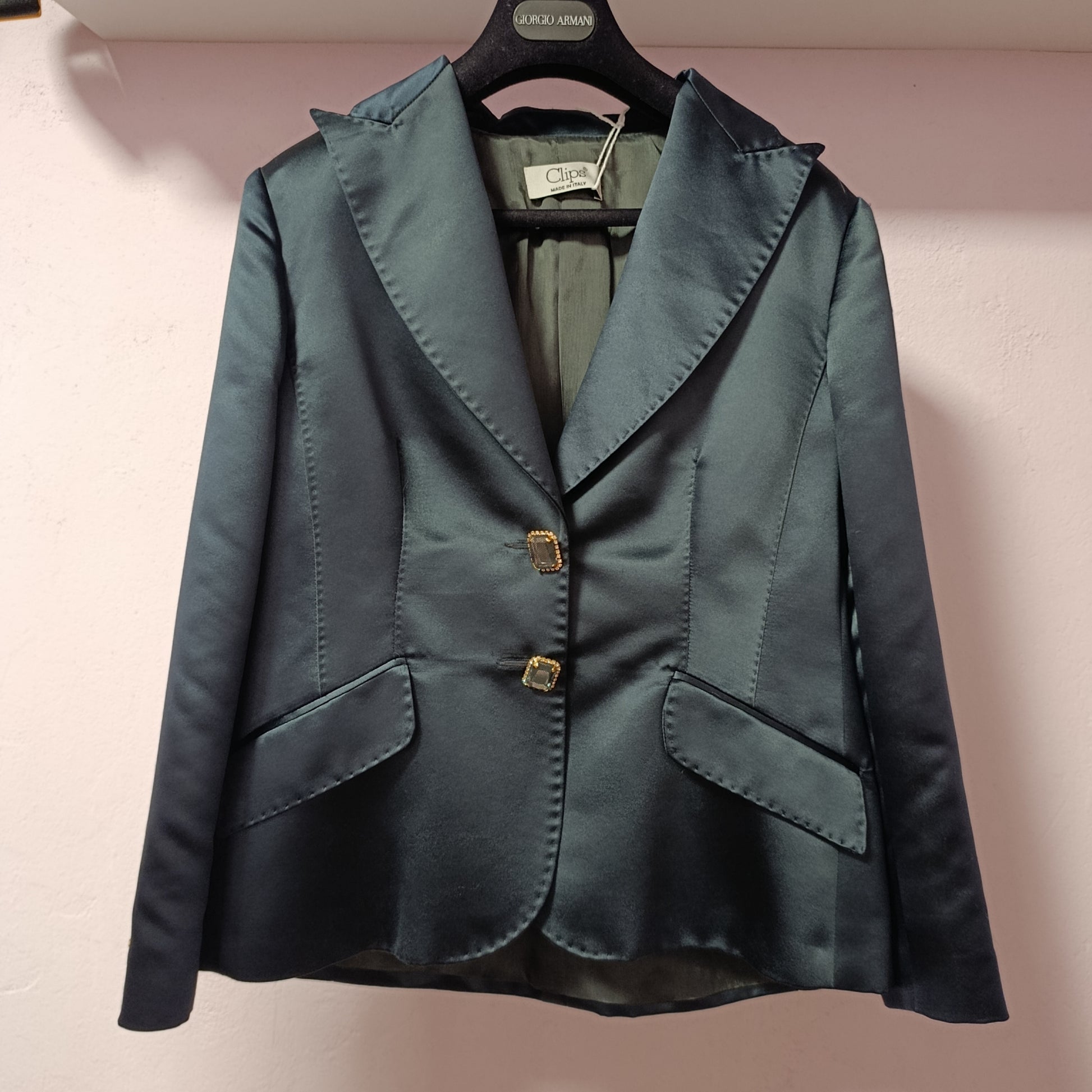 Blazer signore blu lucido arricchito da botti gioiello alla chiusura e sulle maniche tg 48, vestibilità ridotta!