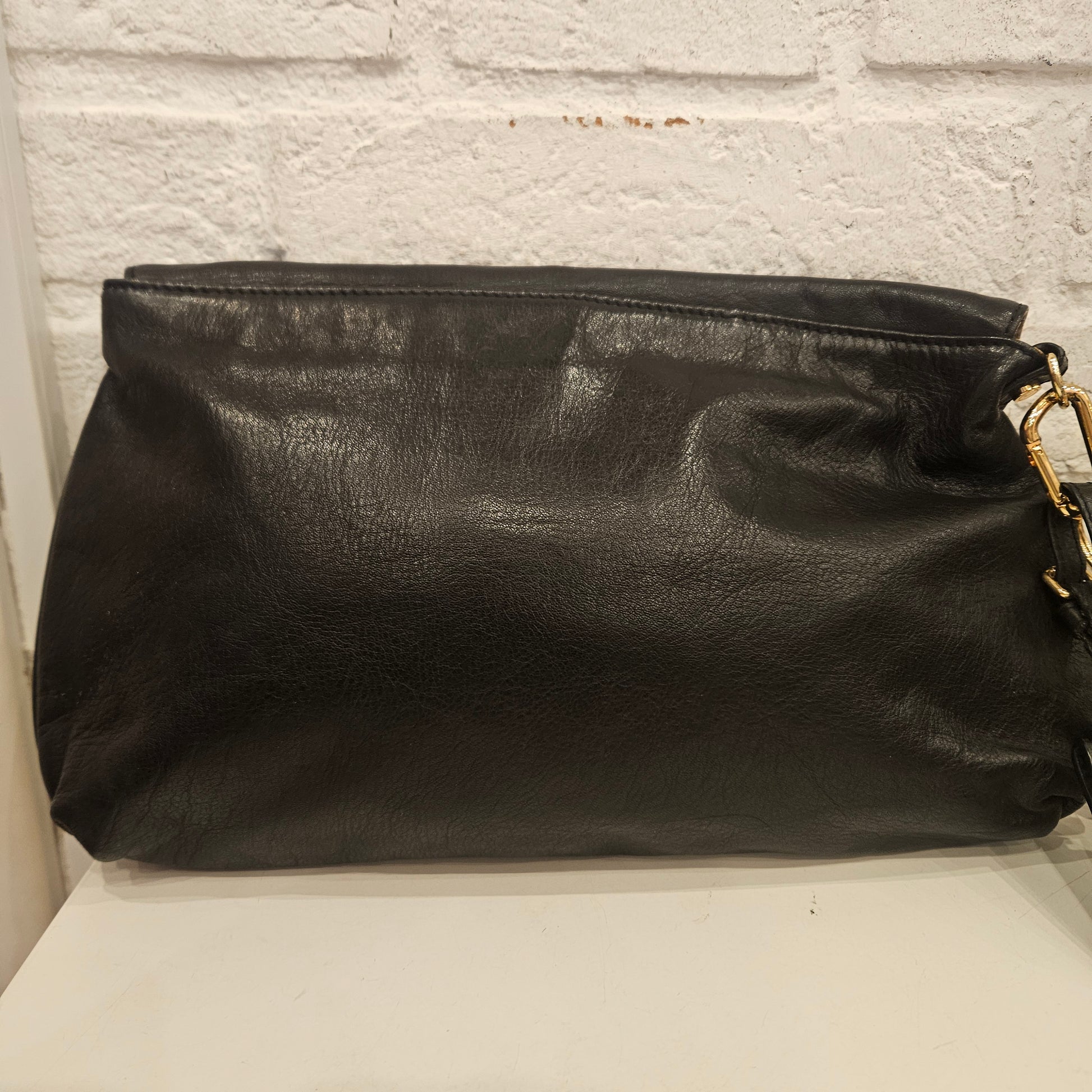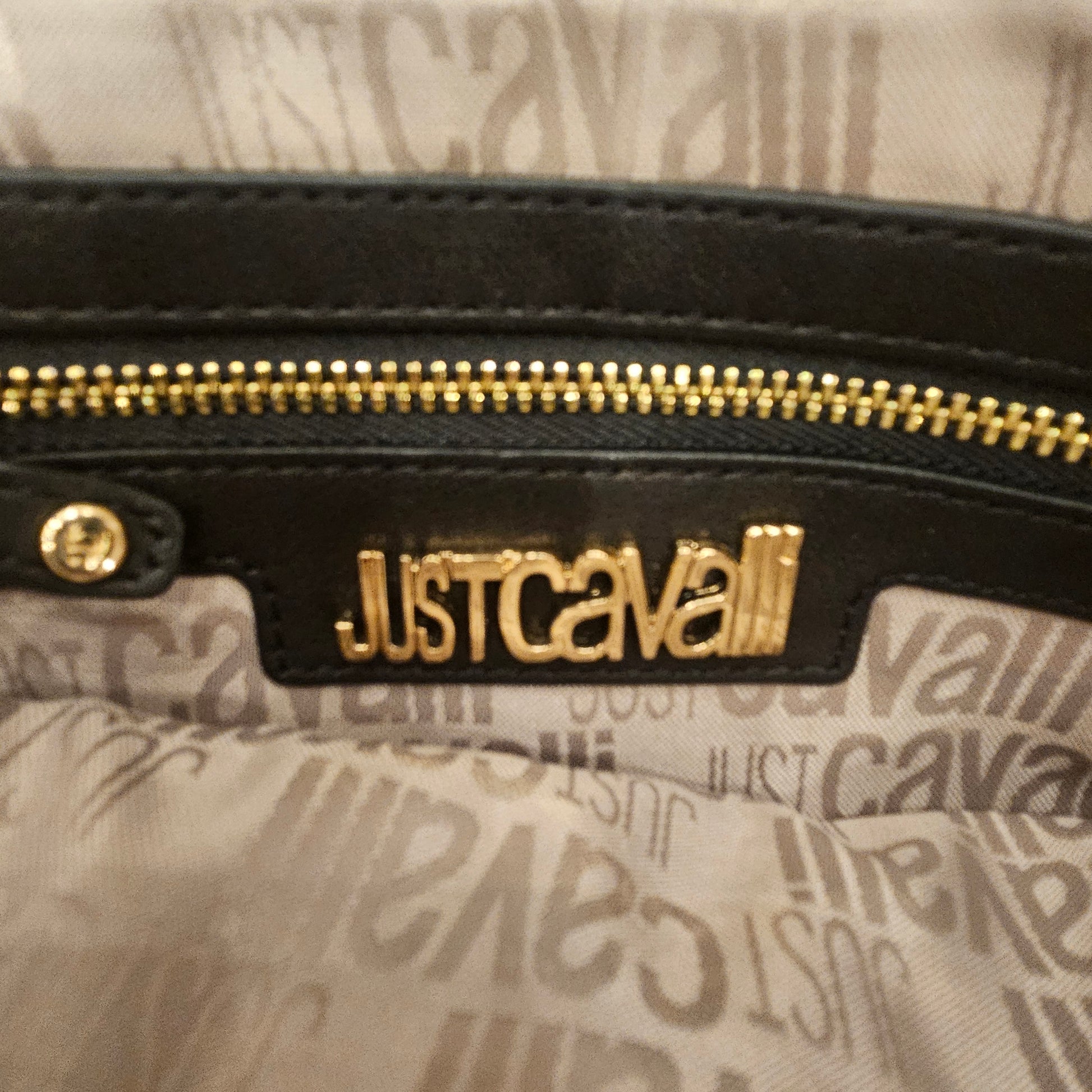 Borsetta a mano Just Cavalli in pelle nera, chiusura a clip e pom pom, borsa in ottime condizioni normali segni dovuti all'uso