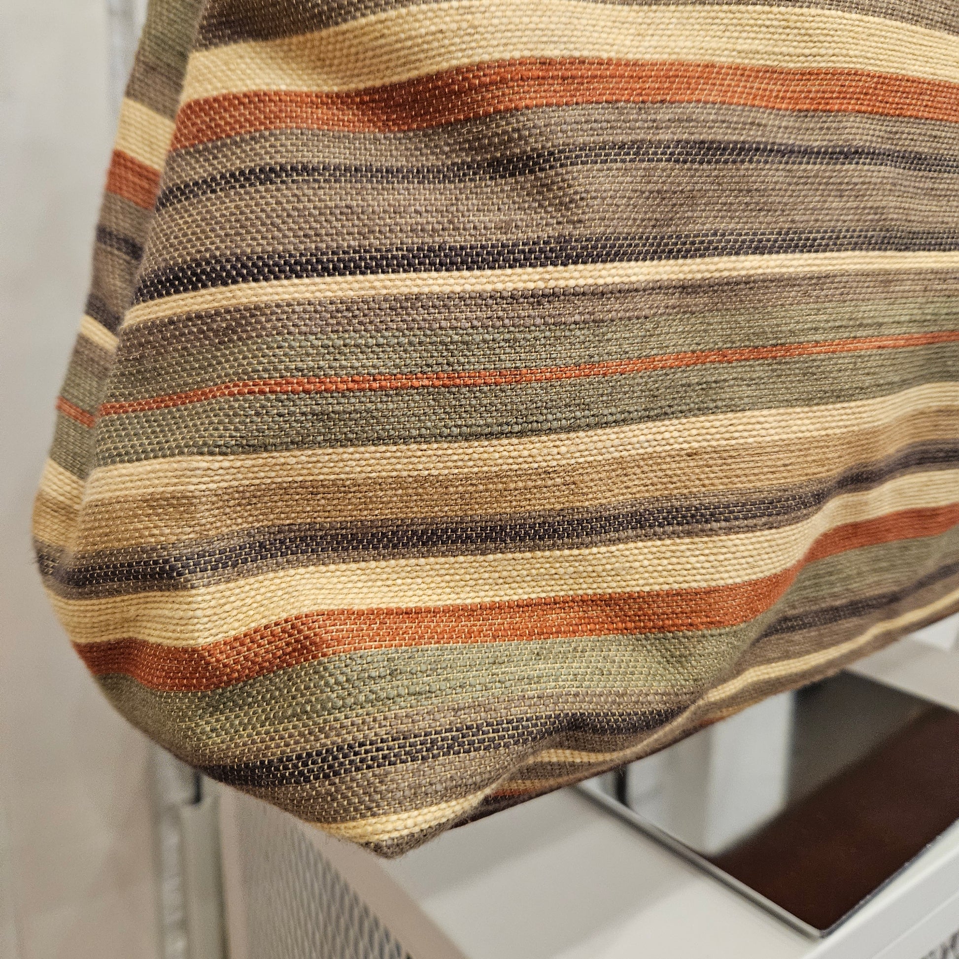 Tessuto multicolor a righe orizzontali prive di segni dovuti all'utilizzo, interno anch'esso in ottime condizioni con due tasche interne. Borsa comoda e spaziosa che può essere portata a spalla e a mano.