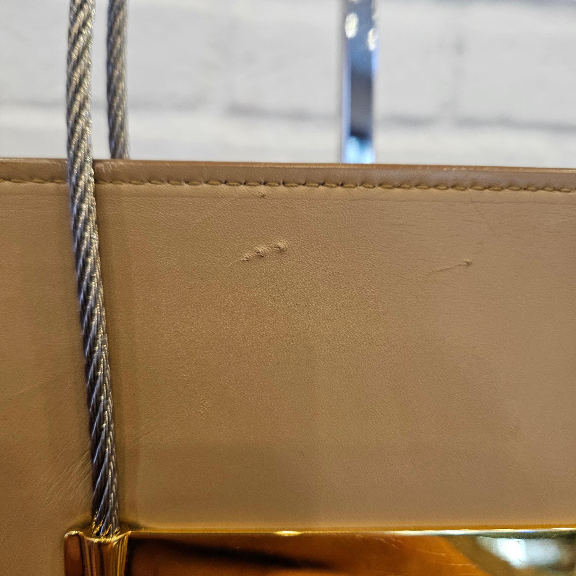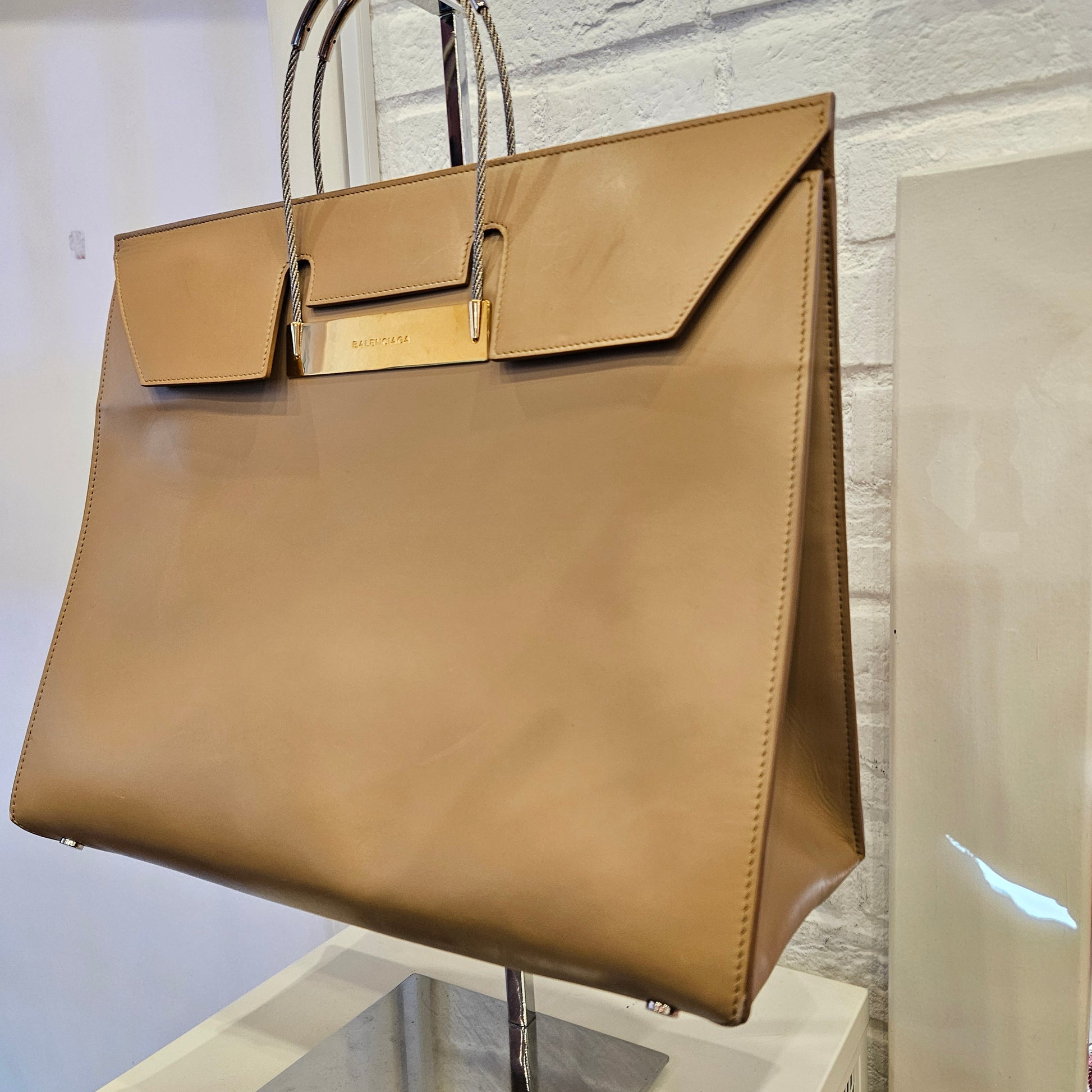 Borsa Tote Bag Balenciaga in pelle colorazione beige e interno sempre in pelle colorazione nera, manici in acciaio e placchetta esterna dorata, articolo in ottime condizioni normali segni dovuti all'uso,
