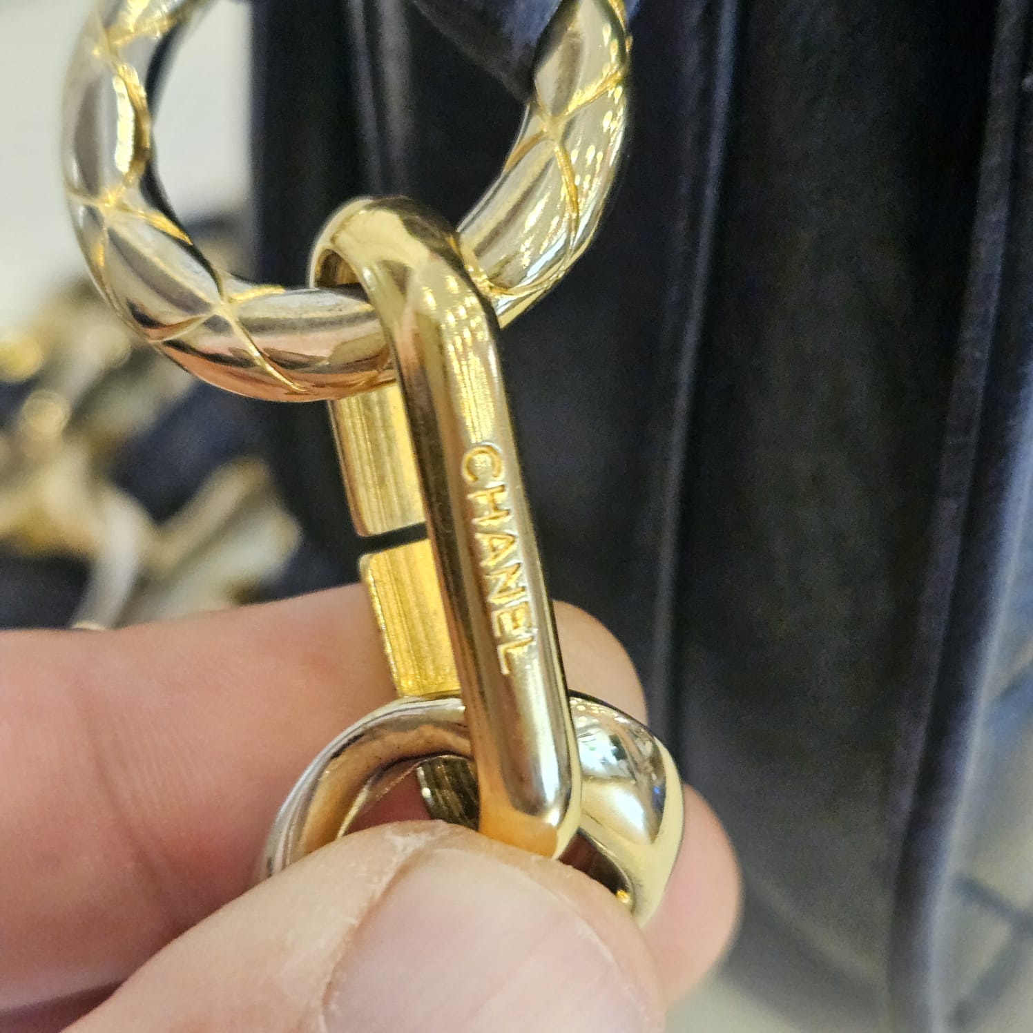 Borsa Chanel vintage in colorazione blu notte con dettagli dorati