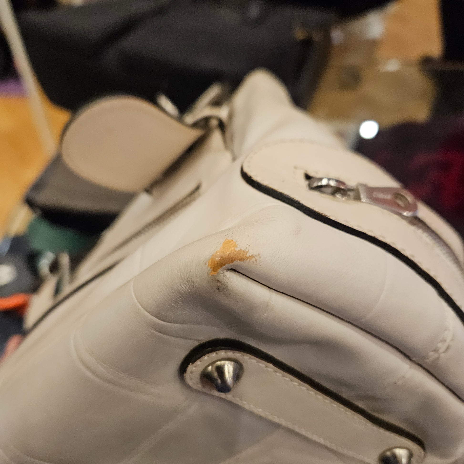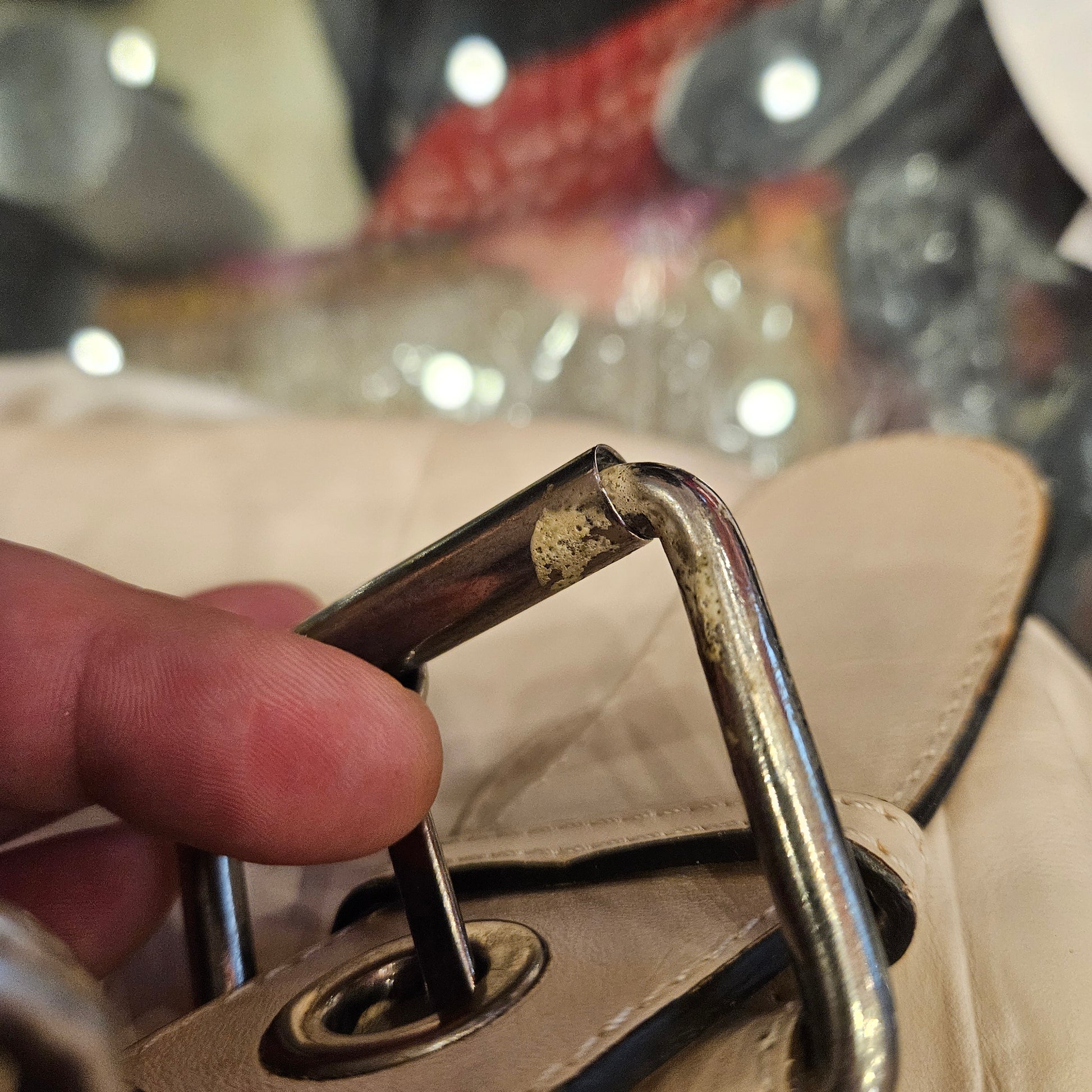 Borsa Chloé white avorio in stampa cocco, Disegnata dalla Phoebe Philo nota stilista di Celine .articolo in ottime condizioni, presenta qualche segno dovuti all'uso come leggere ossidazione su fibbia e angoli leggermente usurati.