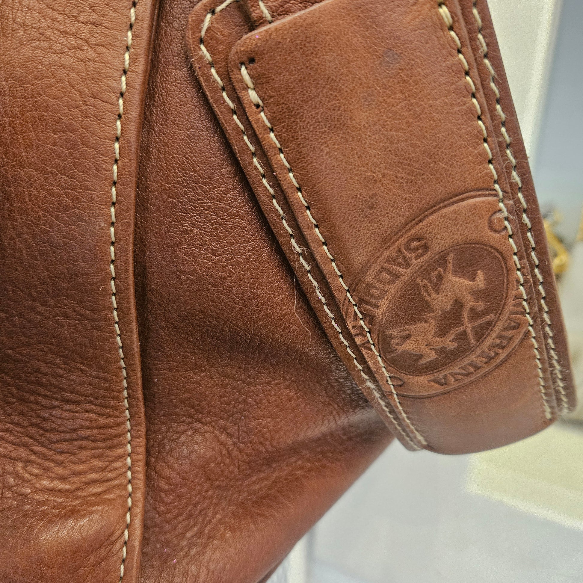 Borsa da viaggio La Martina in cuoio marrone. Borsa in ottime condizioni sia esterne che interne, non presenta angoli, manici e base consumati. É presente la sua tracolla.