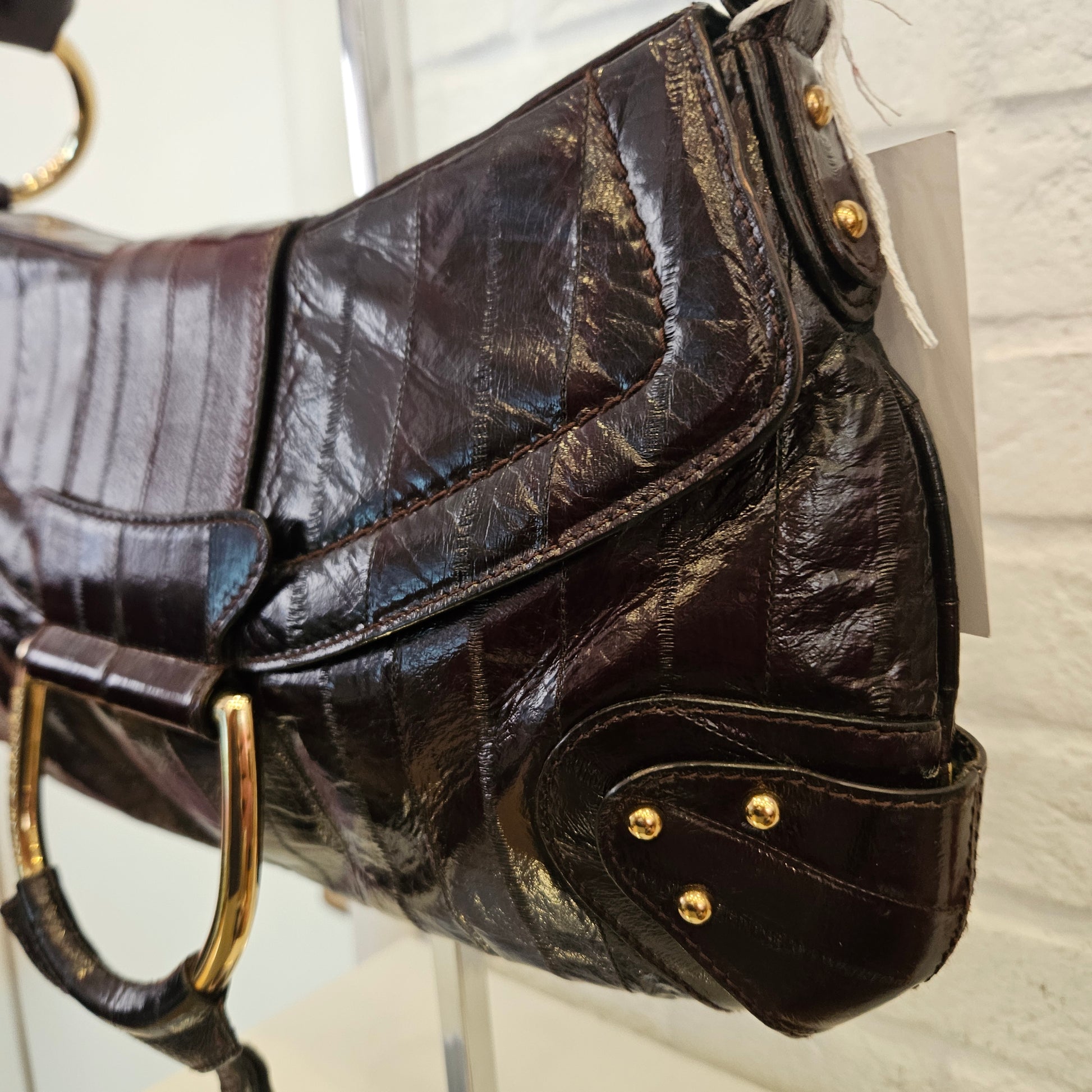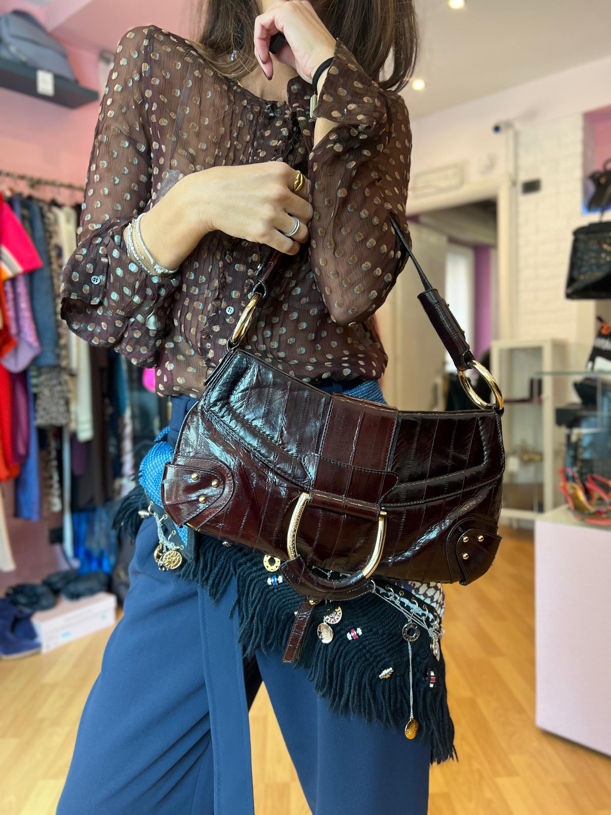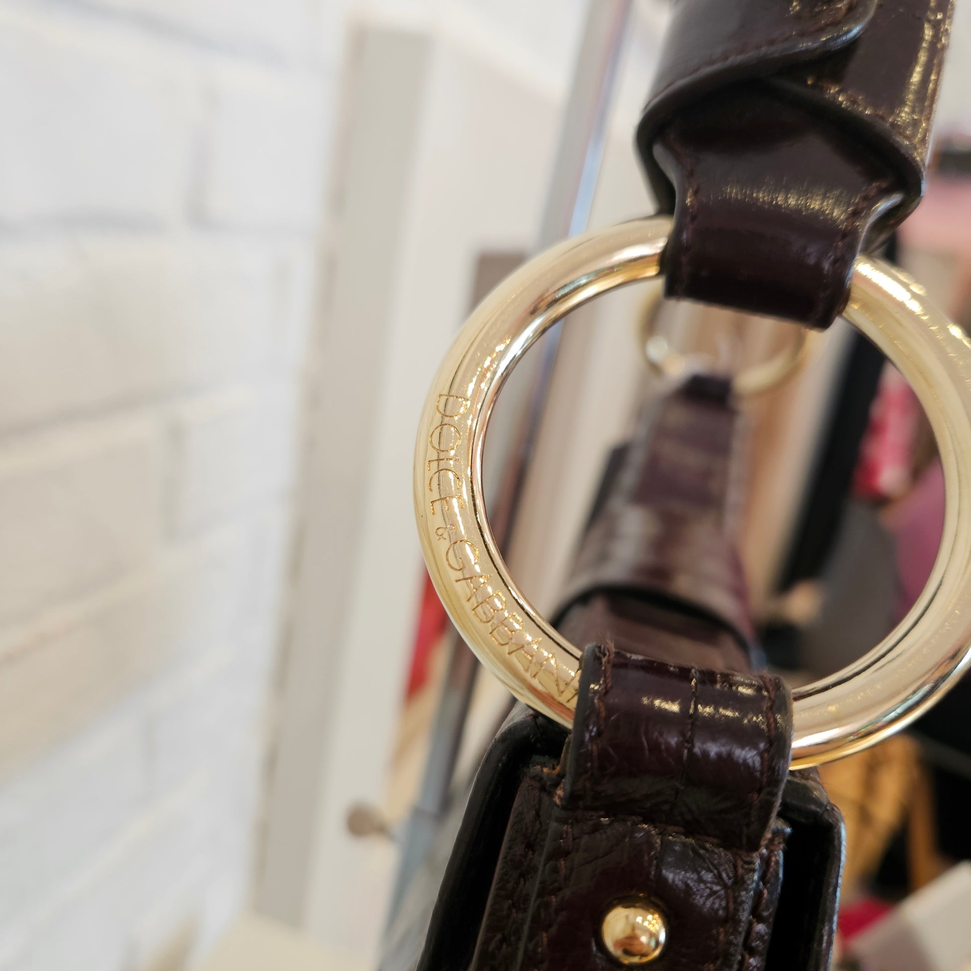Borsetta Dolce&Gabbana in oelle di anguilla, colorazione marrone e dettagli metallici dorati, la borsa é in ottime condizioni prima di segni dovuti al frequente utilizzo, interno anch'esso in ottime condizioni.