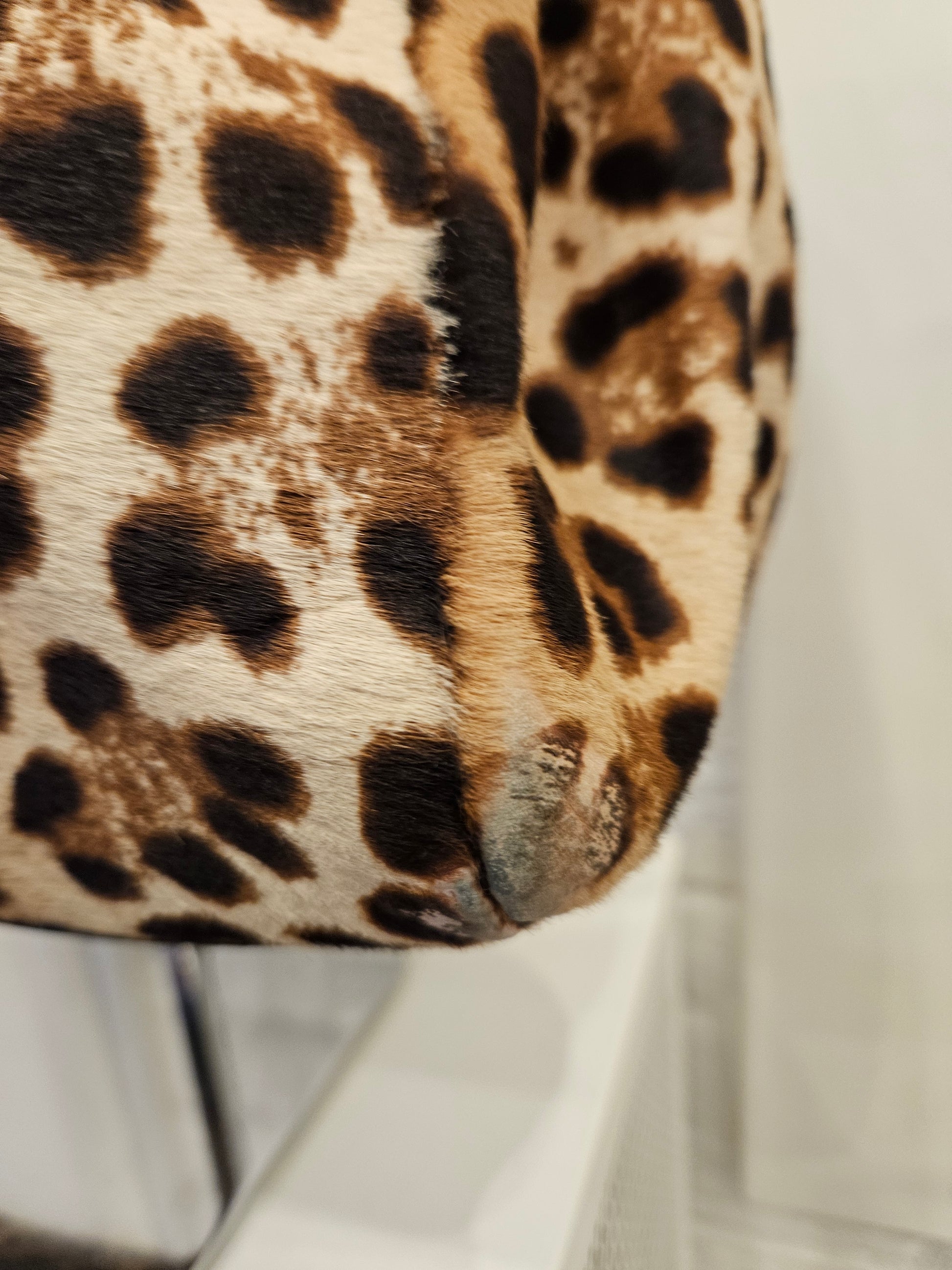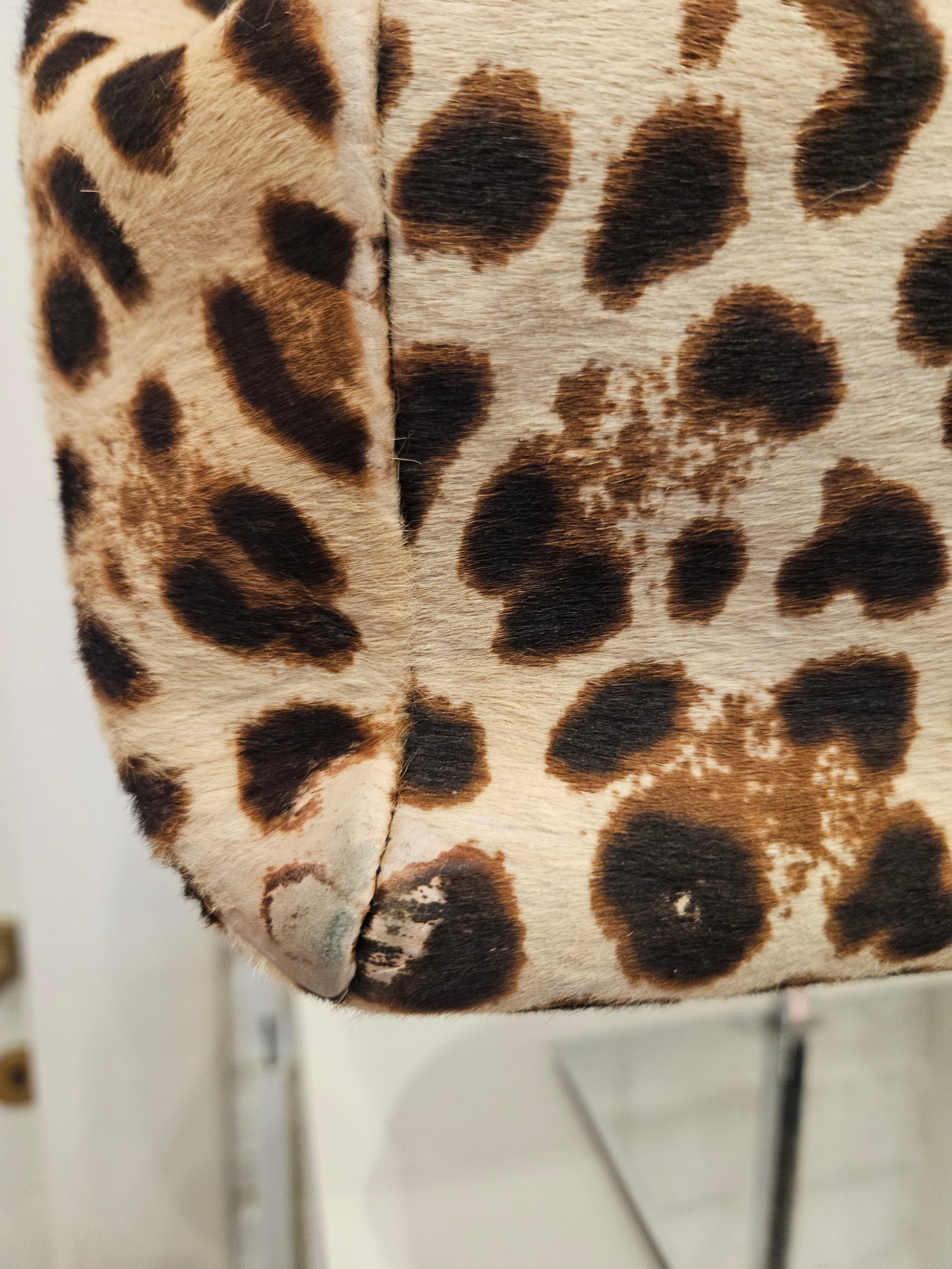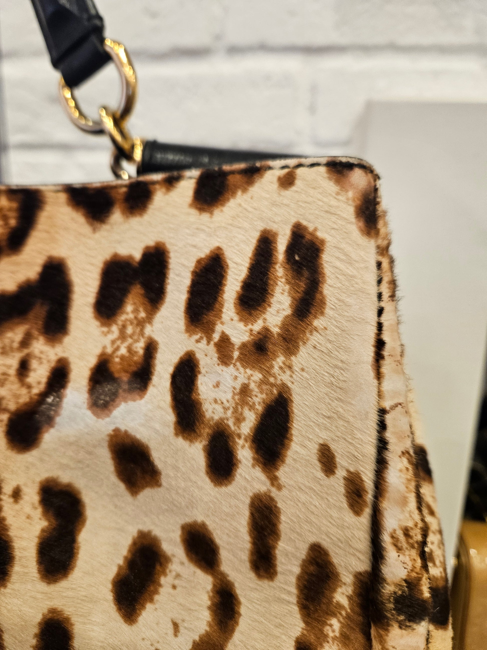 Borsa Dolce&Gabbana in pelle di vitello con effetto cavallino e motivo leopardato, interno con tre scomparti. La borsa é in buone condizioni ma la pelle presenta alcuni punti di usura con un effetto danneggiato in alcuni punti del cavallino.
