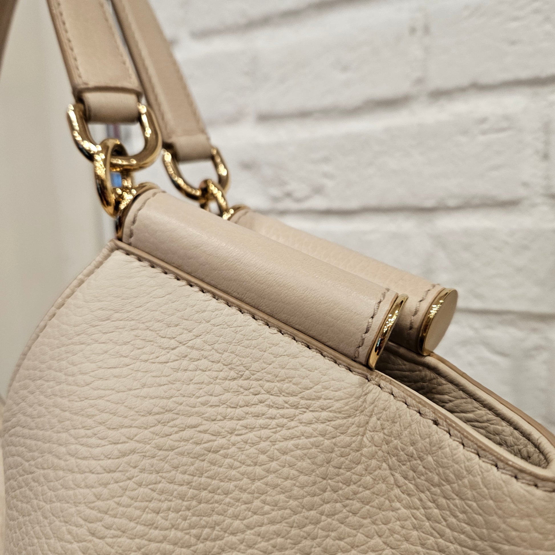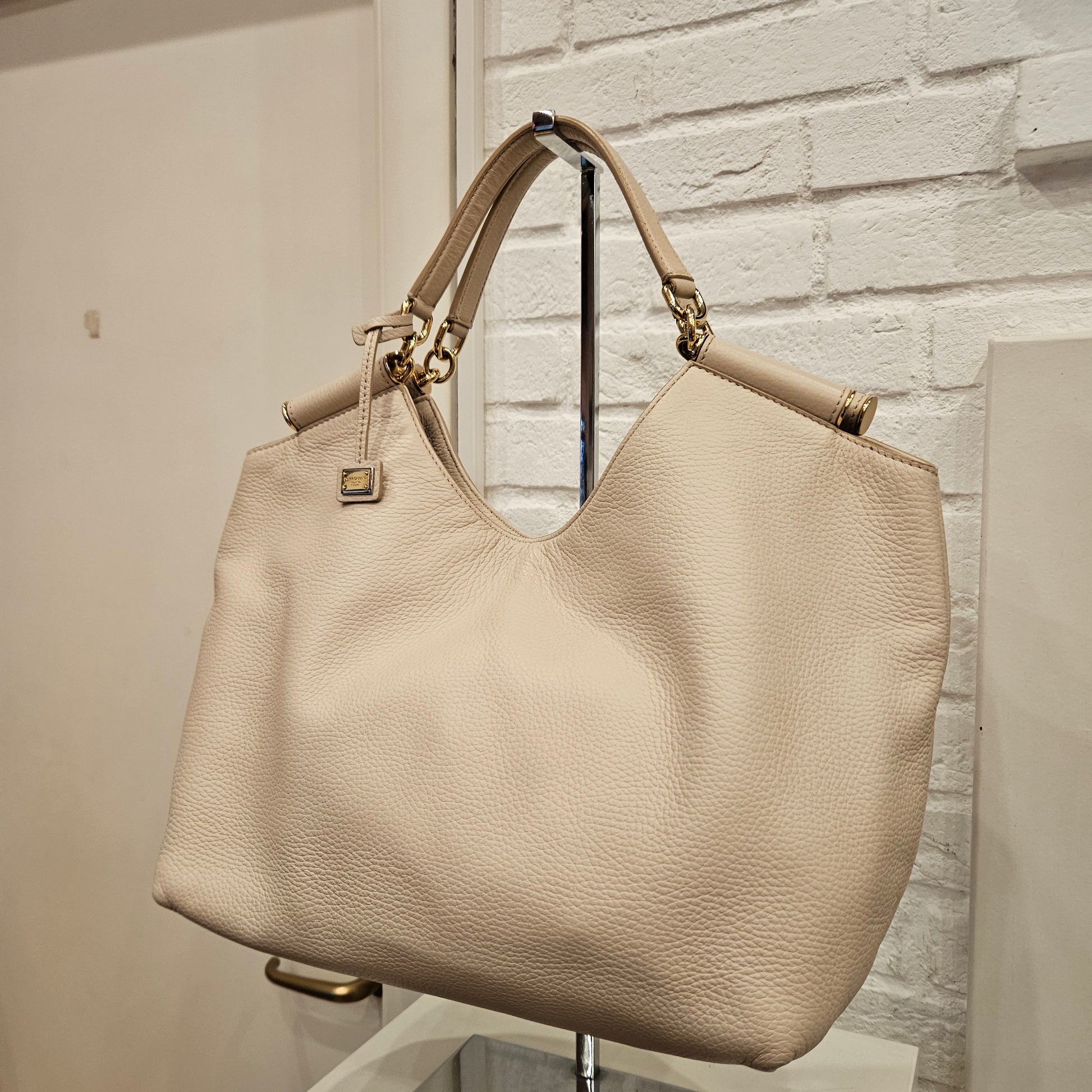 Borsa a spalla in oelle colorazione beige Dolce&Gabbana linea Sicily, articolo in perfette condizioni priva di segni dovuti all'utilizzo. Interno in tessuto con motivo animalier, sono presenti due tasche interne.