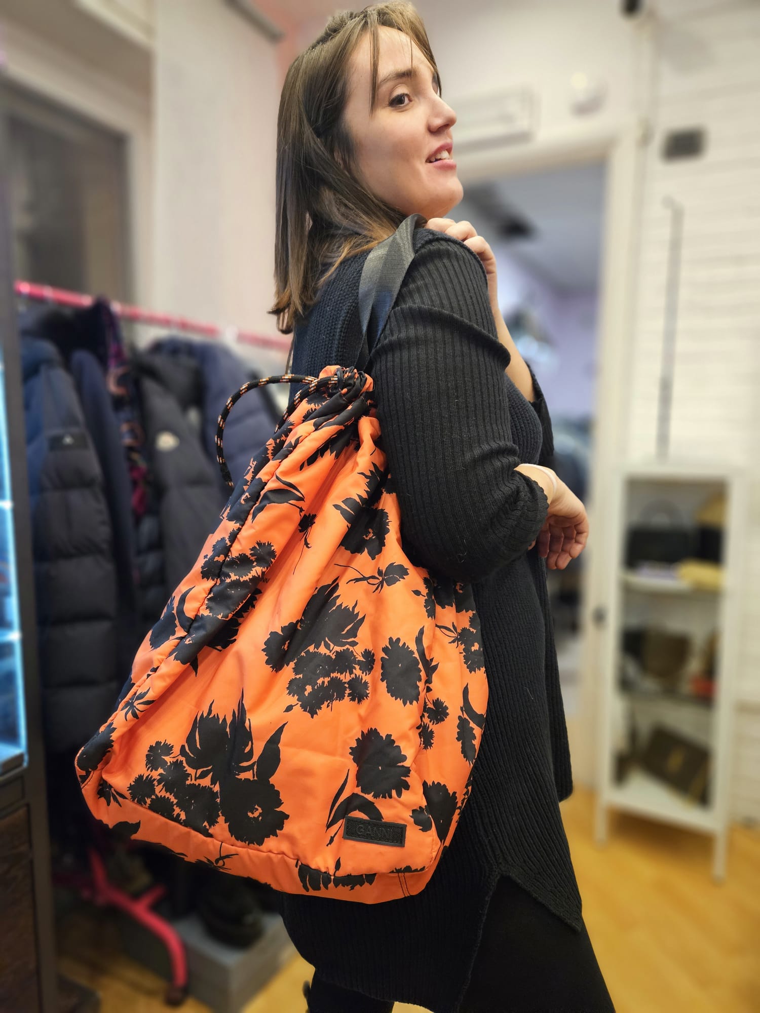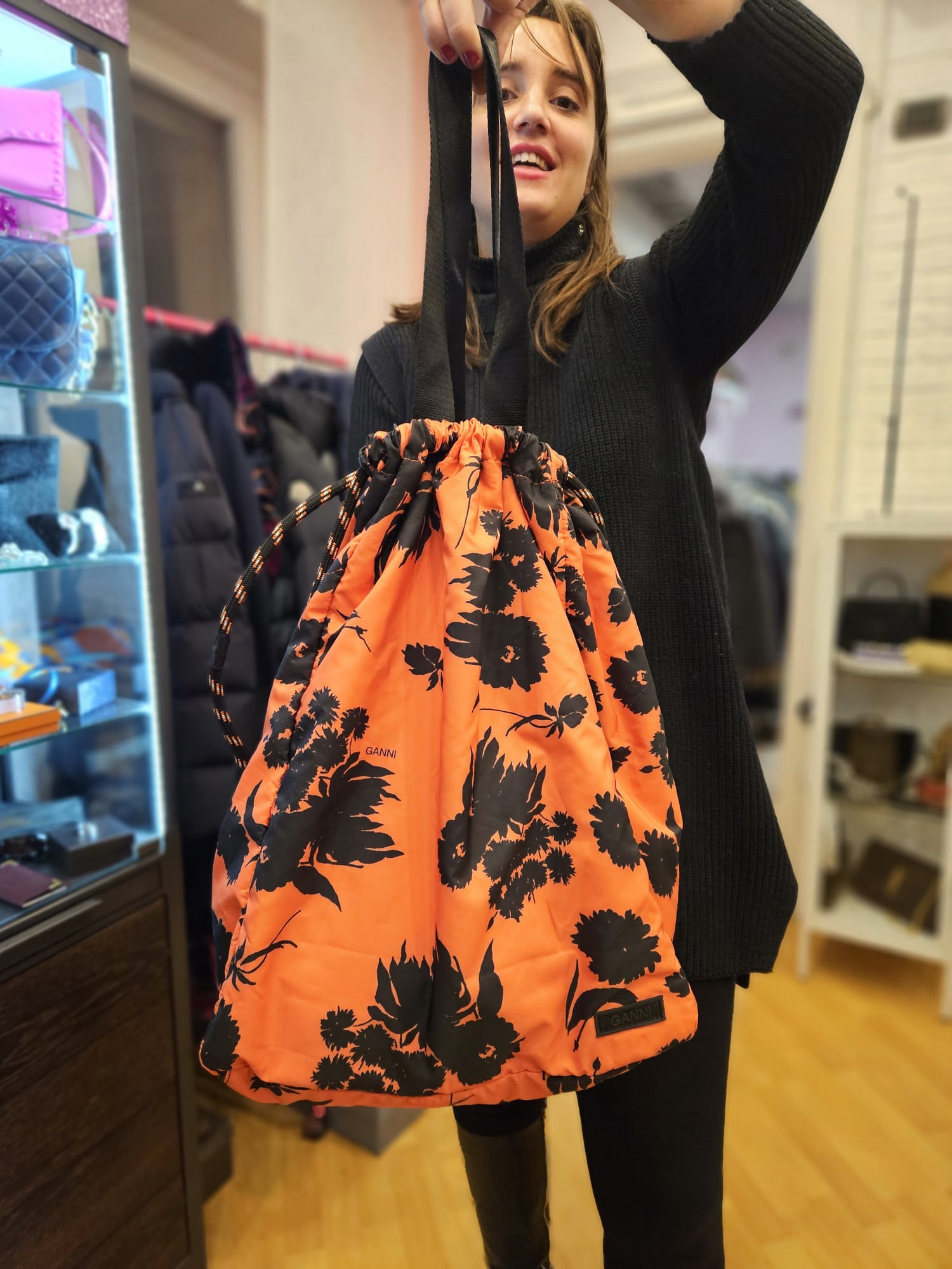 Borsa Ganni nuova in colorazione arancio e nera con manici comodi