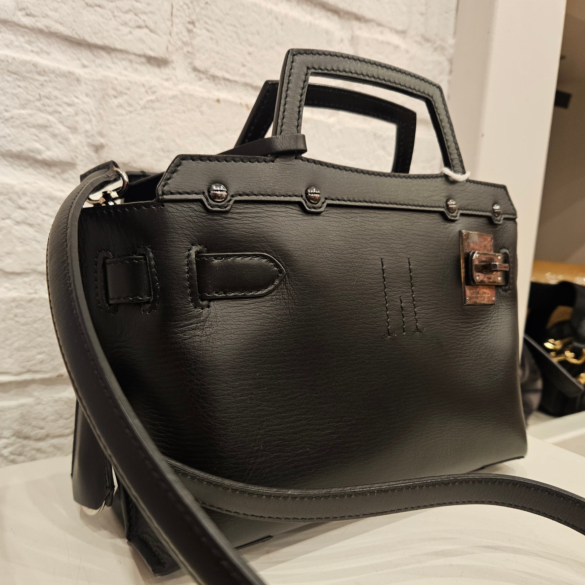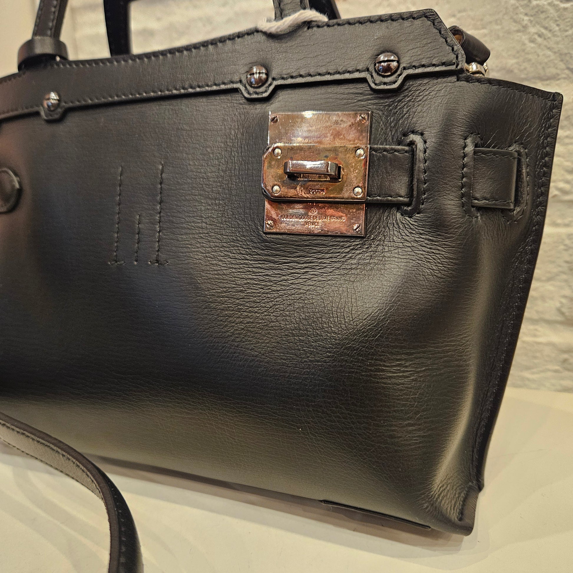 Borsa Golden Goose in pelle nera borsa a mano o a tracolla quest'ultima può essere rimossa. La borsa é in ottime condizioni priva di segni dovuti all'utilizzo. La borsa é dotata della suo lucchetto e di una dustbag