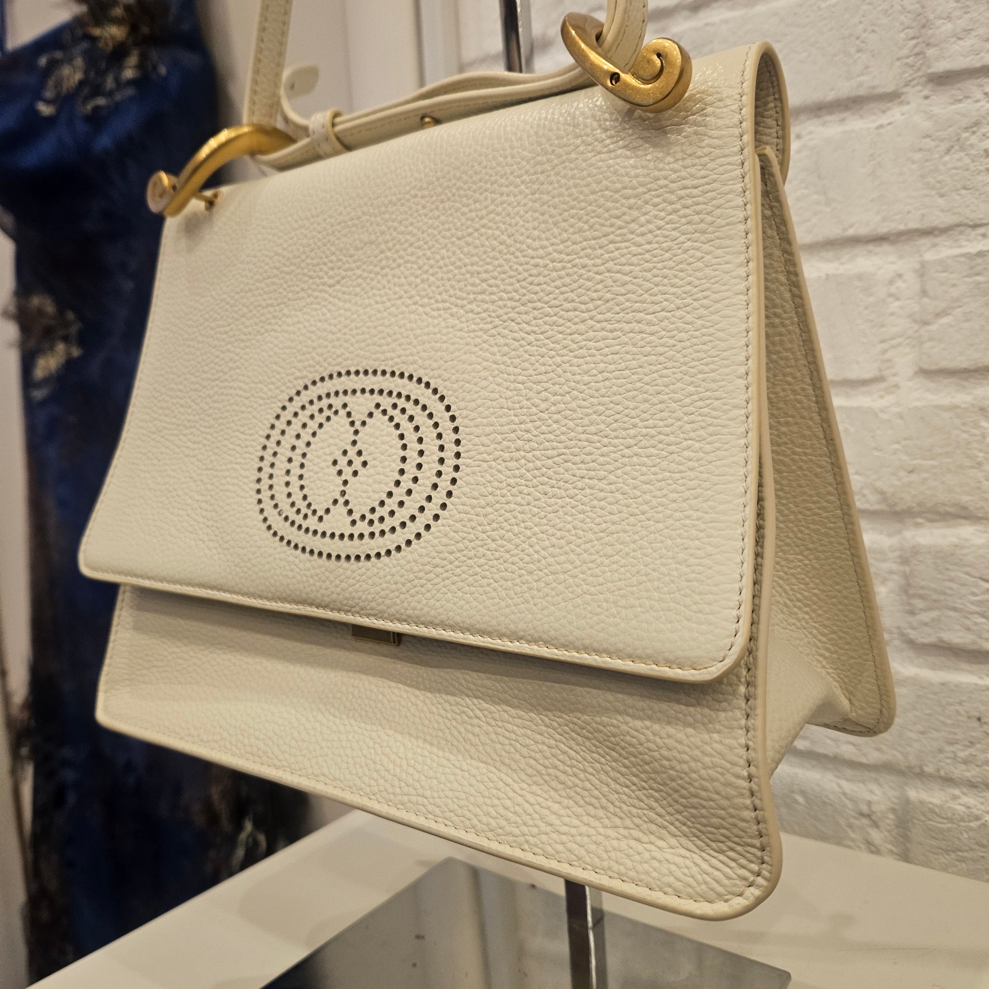Borsa La Carrie in pelle colorazione bianco panna.borsa in ottime condizioni, dettagli metallici dorati e interno scamosciato. Dotata di dustbag