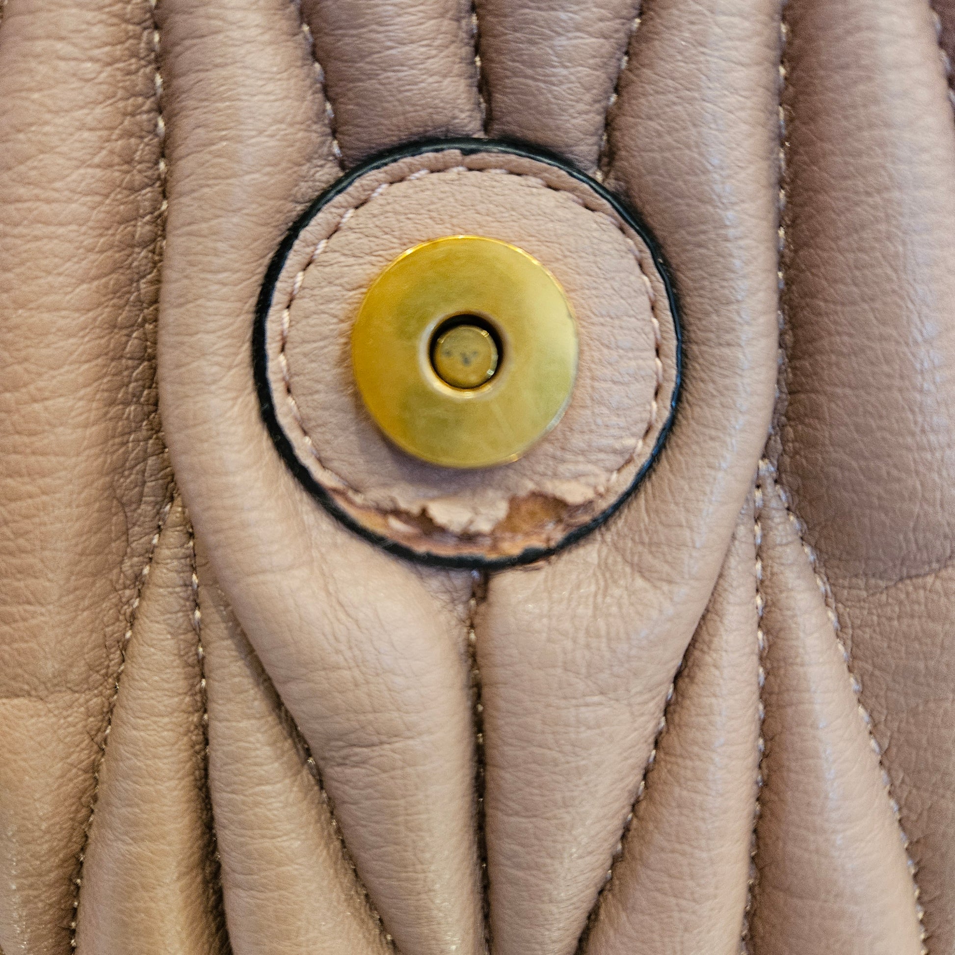 Borsa La Carrie in colorazione cipria e plissettatura. Borse in ottime condizioni, segnaliamo screpolatura su bottone magnetico,(vedi foto)