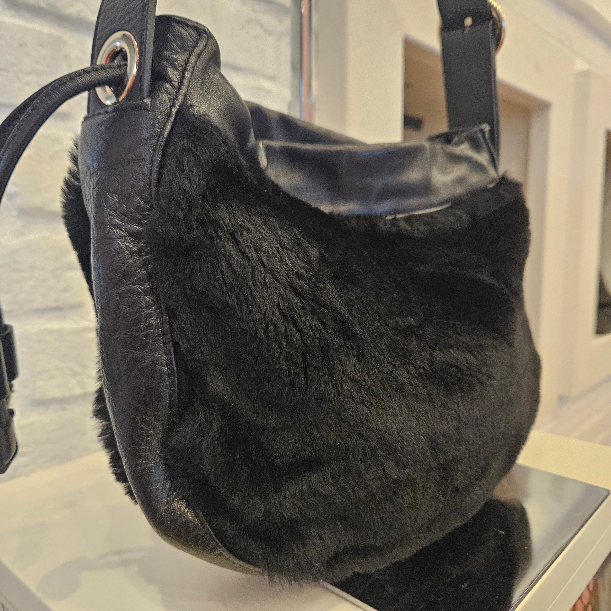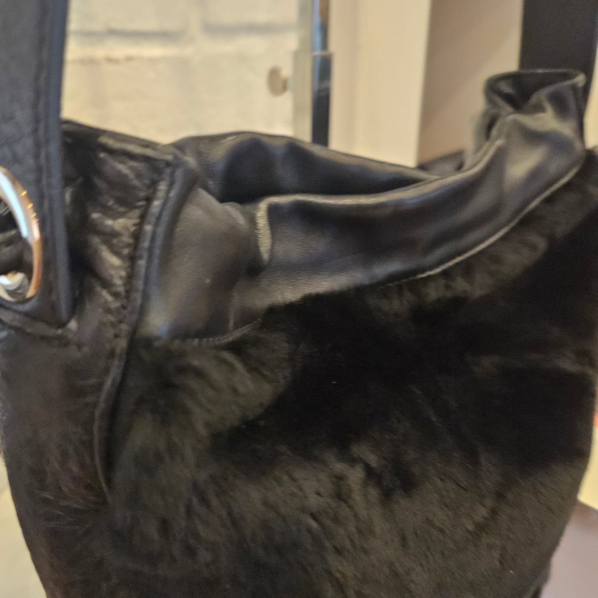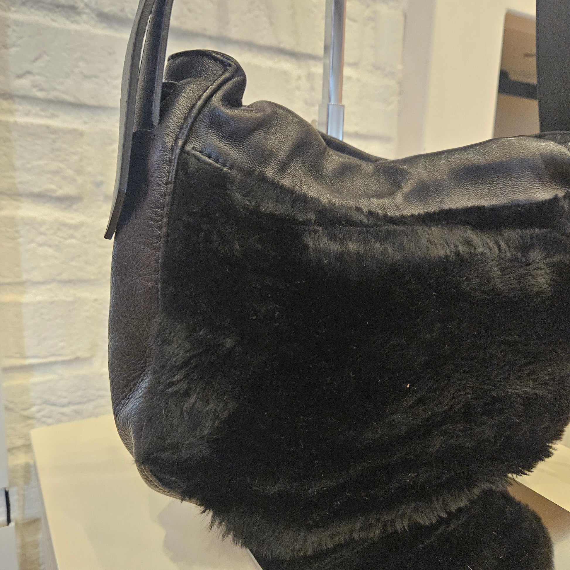Borsa Massimiliano Dutti, in nappa morbidissima in colorazione nera e inserto in pelo sintetica.