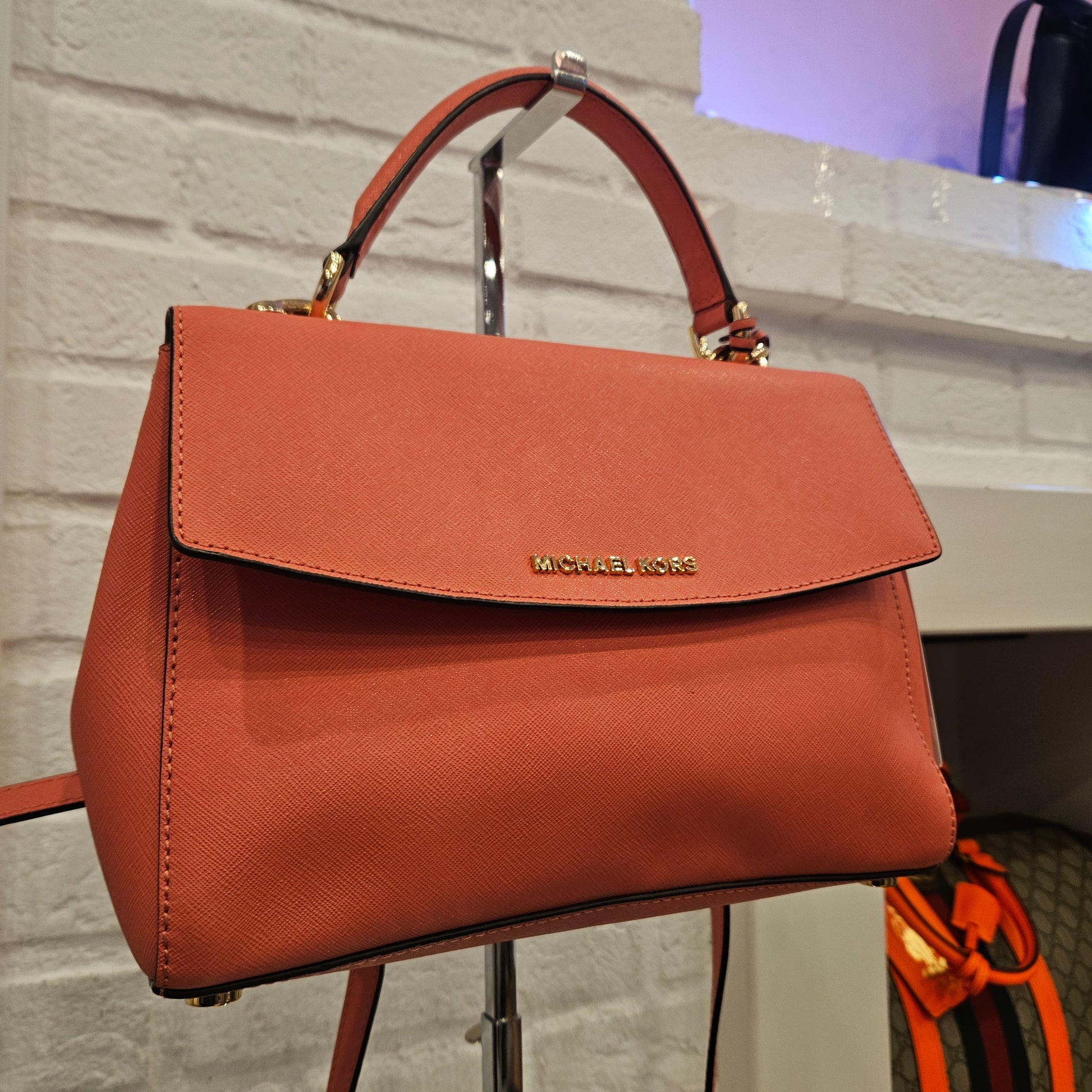 Borsa Michael Kors in saffiano colorazione rosa salmone, interno in tessuto loggato, borsa dotata di manicoce tracolla e della sua dustbag. Condizioni più che ottime!. É presente la sua dustbag.