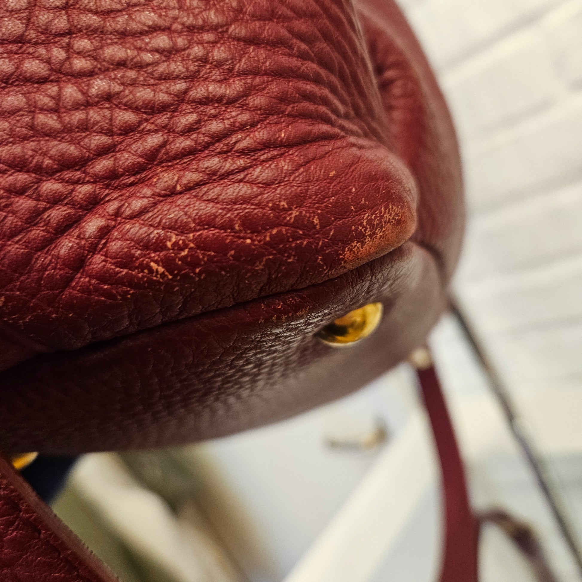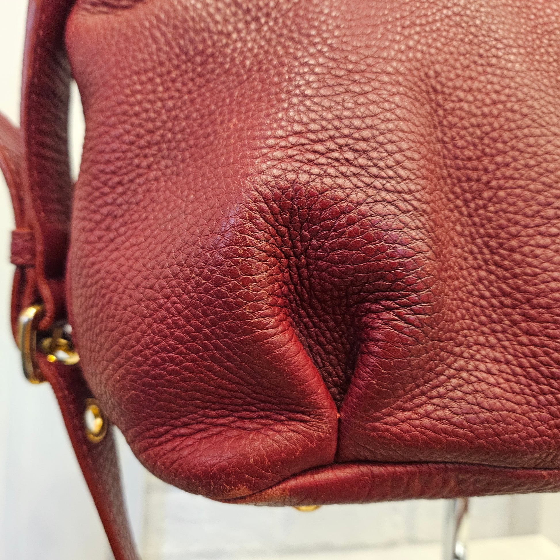 Borsa Miu Miu in oelle colorazione bordeaux con dettagli hardware dorati, borsa in ottime condizioni leggeri segni dovuti all'utilizzo in prossimità degli angoli alla base, interno in ottime condizioni, borsa comoda e spaziosa che può essere utilizzata sia a spalla che a tracolla.