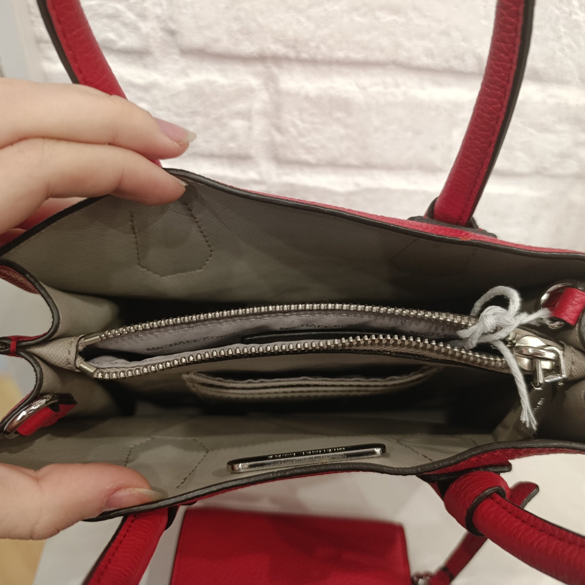 Combo borsa a mano con all'interno il suo portafoglio abbinato rosso di Michael Kors.