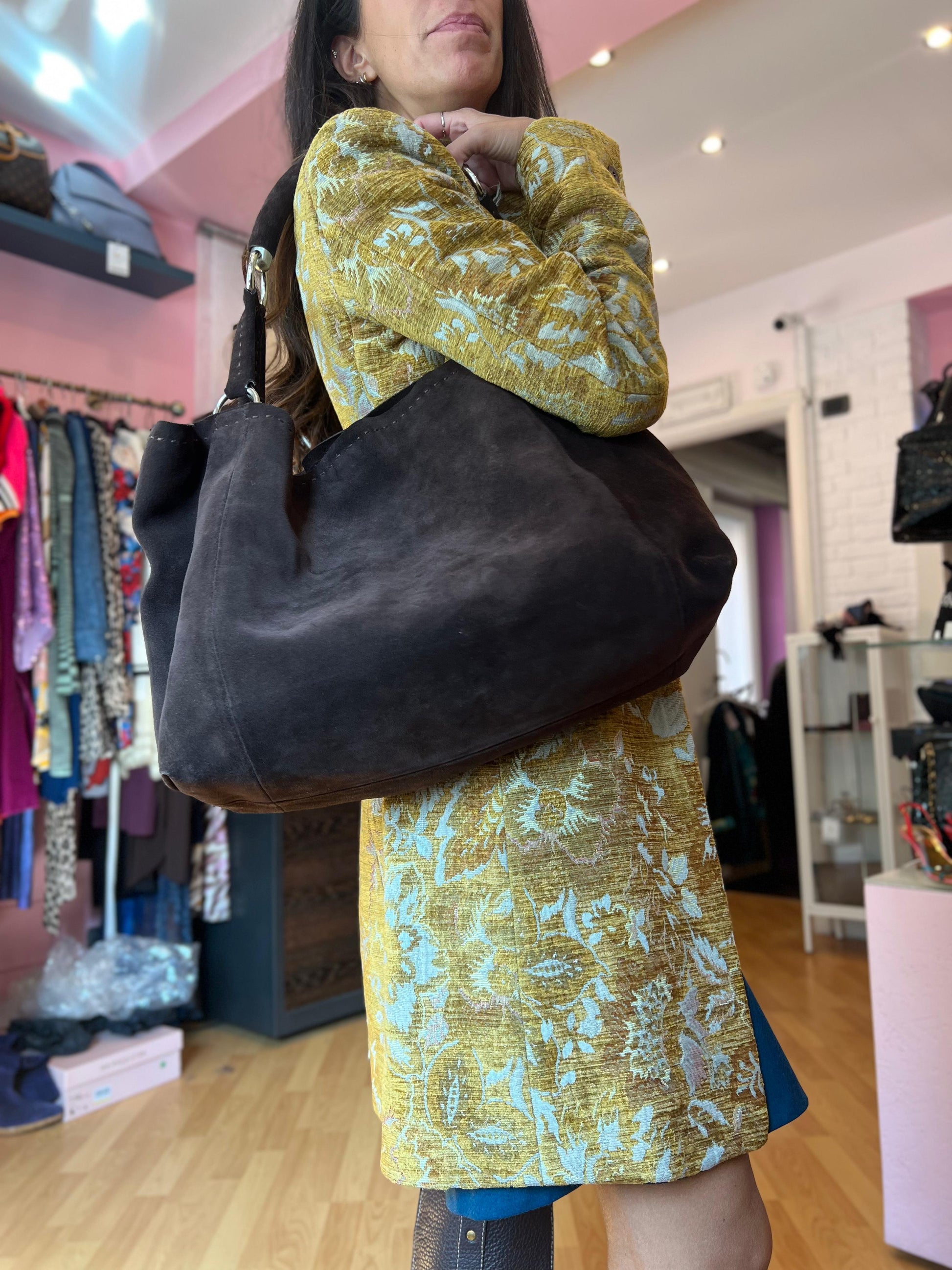 Bellissima Prada in camoscio colorazione marrone e dettagli metallici oro, la borsa é in ottime condizioni priva di segni dovuti all'utilizzo e al tempo, interno anch'esso in ottime condizioni