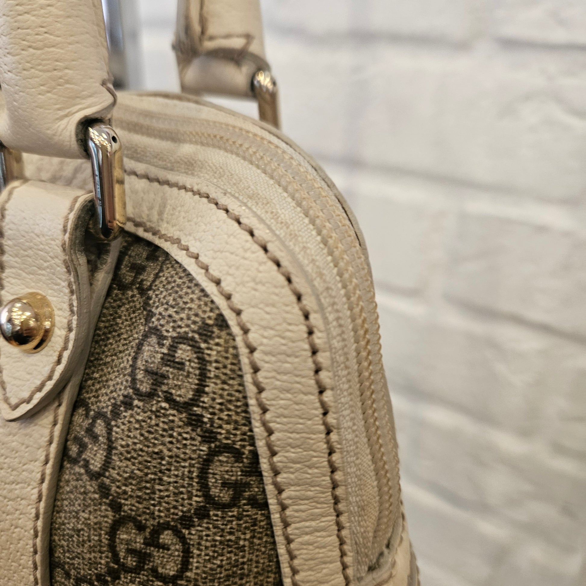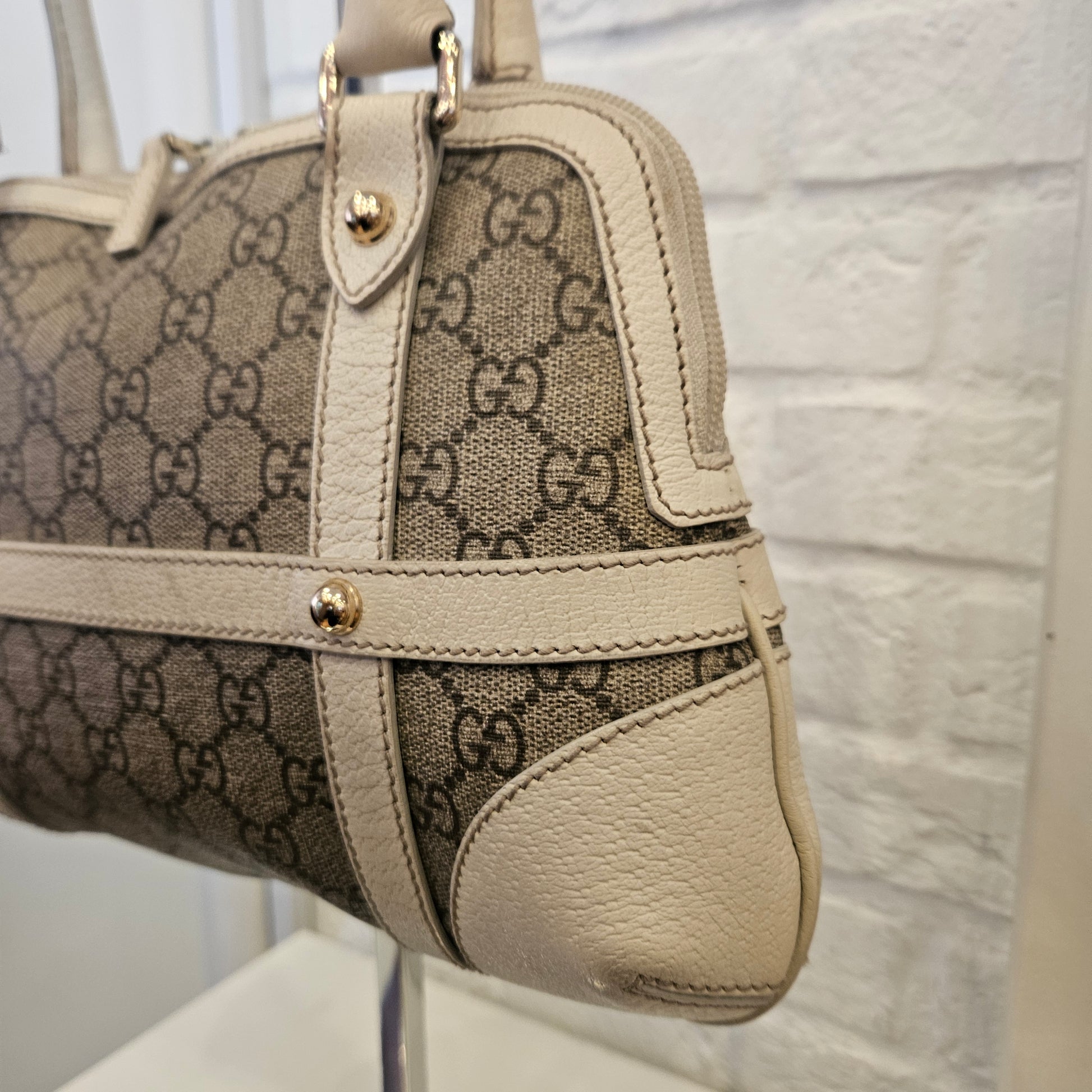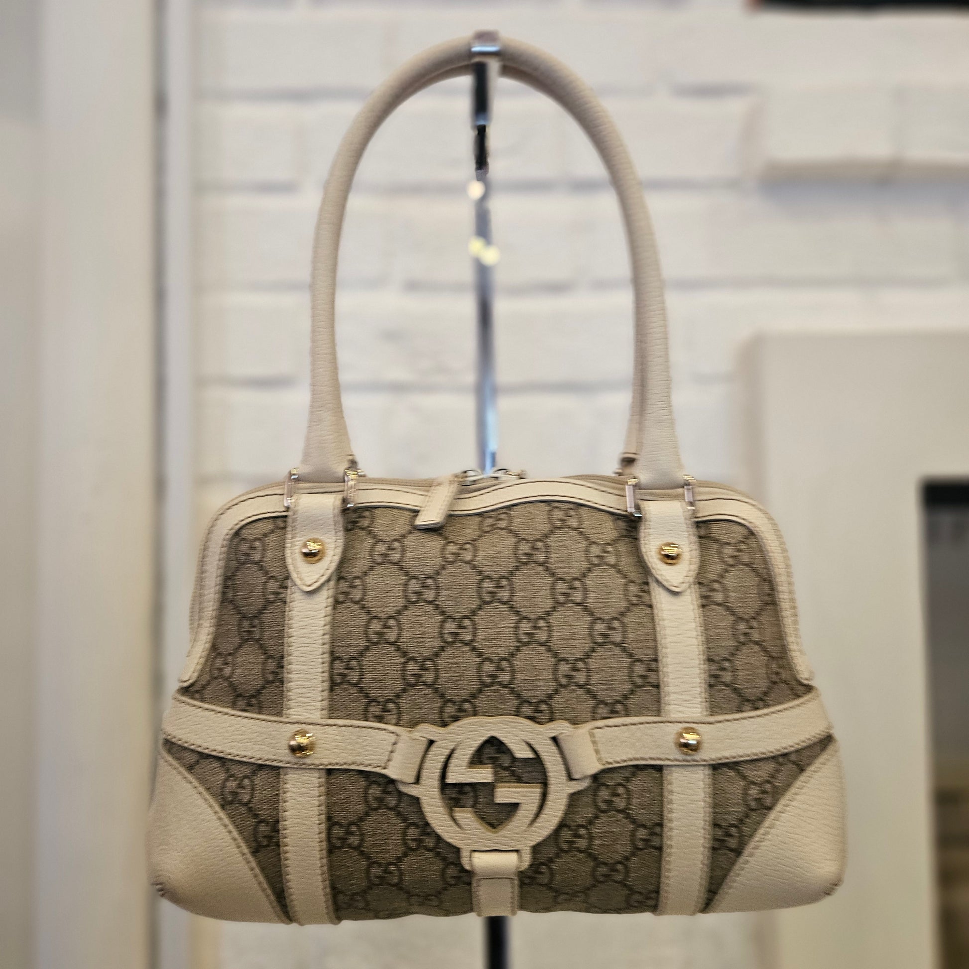 Borsetta a spalla Gucci primi anni 2000, pelle con motivo monogram e inserti pelle colorazione panna. La borsa é in ottime condizioni sono presenti impercettibili segni dovuti all'utilizzo e al tempo . Interno in ottime condizioni
