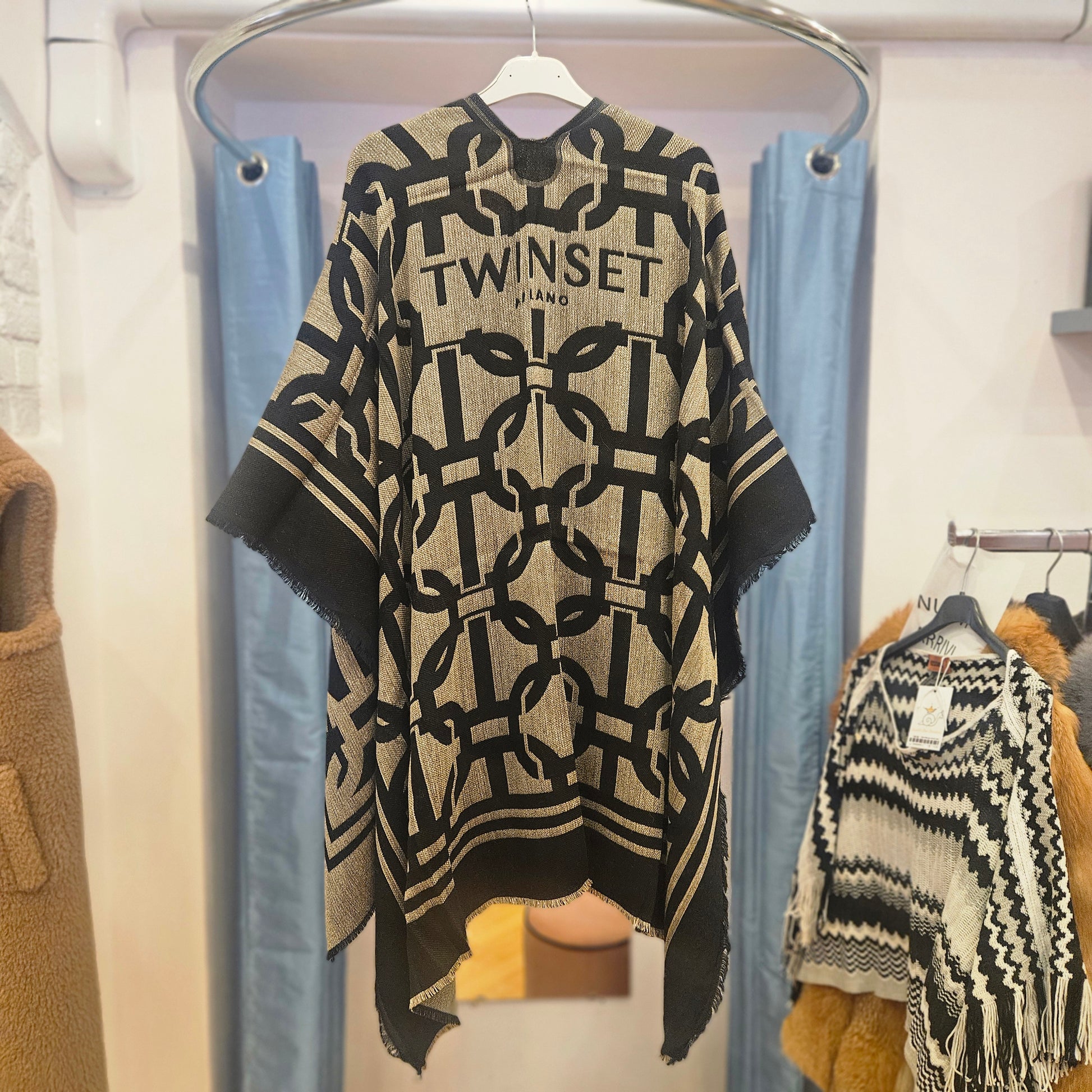 Cappa Twin Set tg U. Colorazione nero e oro, misto viscosa, lana e seta