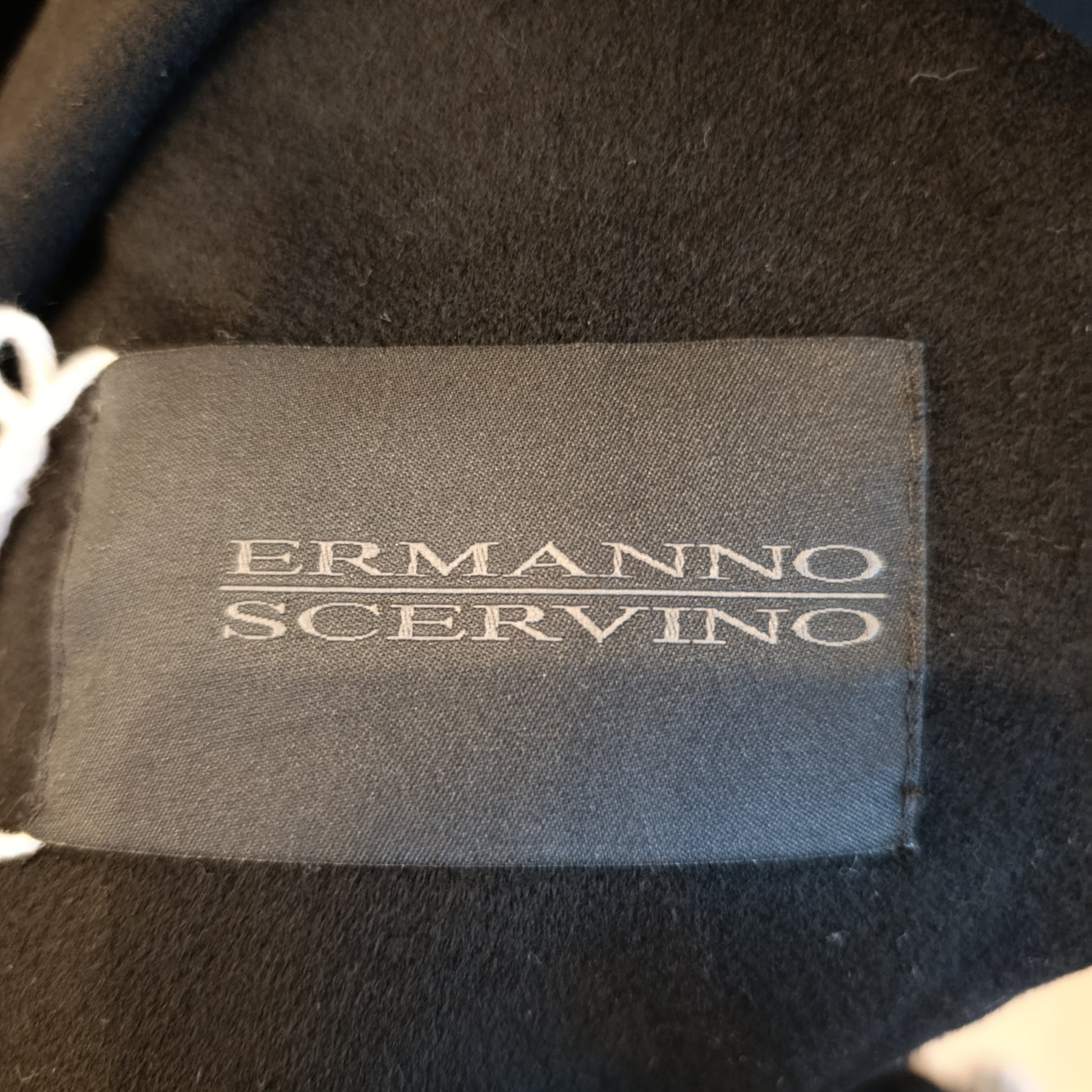 Cappotto nero Ermanno Scervino con inserti in vero pelo probabilmente di lontra, non è segnalato sull'etichetta.
