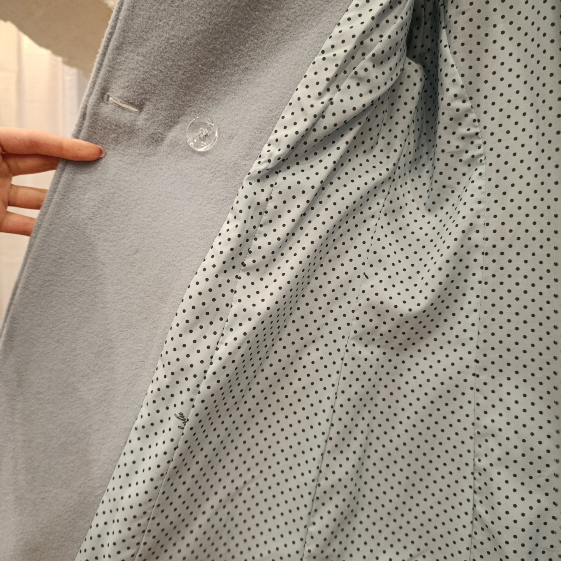 Cappotto luckylu tg 42/40 colorazione azzurra molto chiara, composizione 70% lana 10% cashmere, taglio bon ton condizioni ottimali