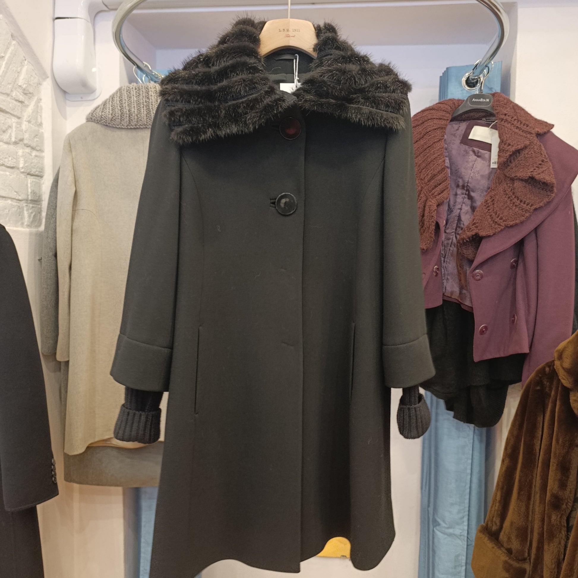 Cappotto nero Cinzia Rocca tg 46 con inserto in visone.