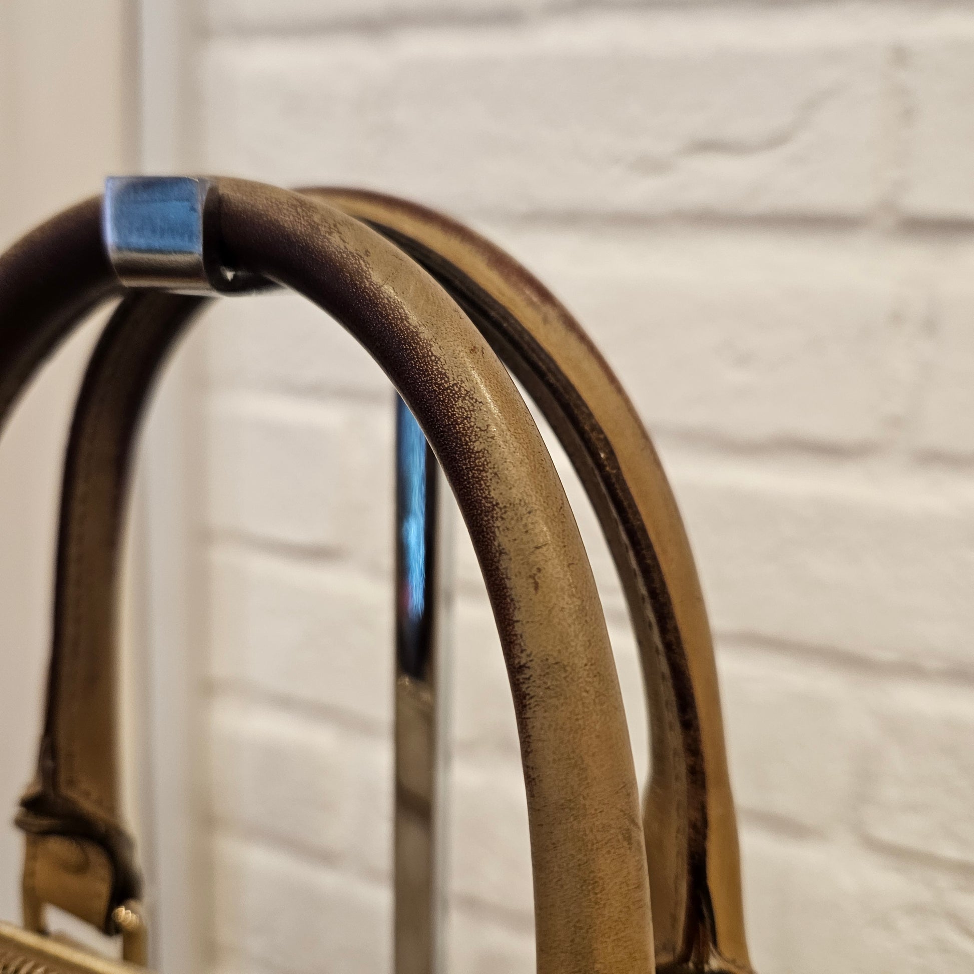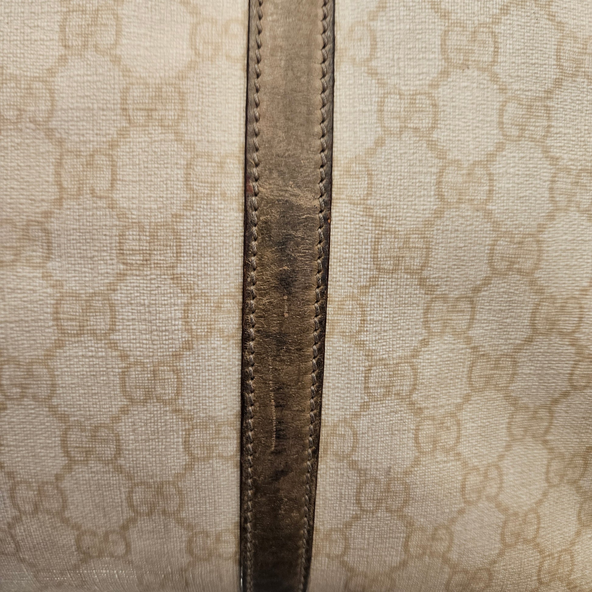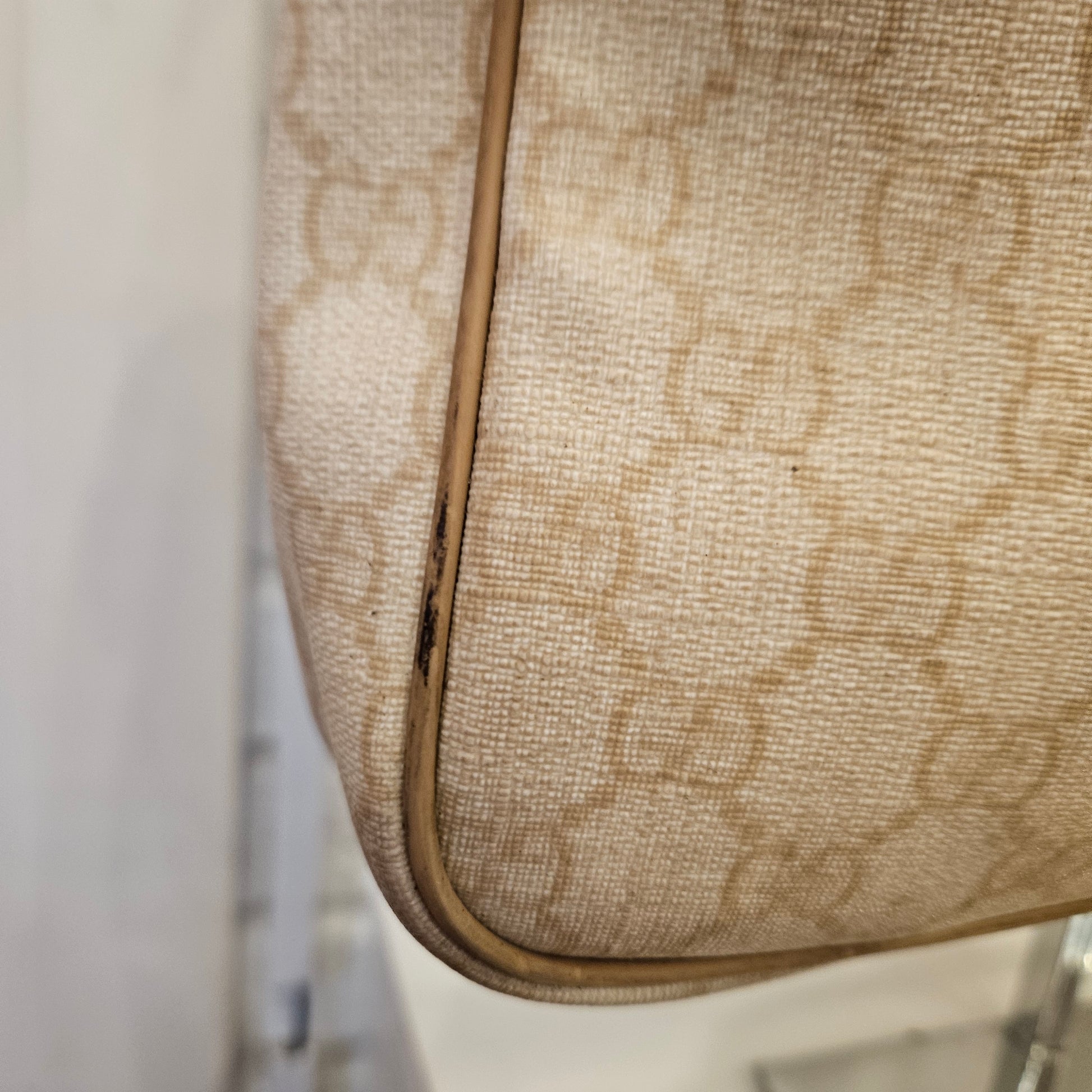 Cartella Gucci vintage in colorazione beige e inserti in pelle marrone, la borsa é in buone condizioni anche se presenta segni dovuti all'uso e al tempo su bordi e manici e gli inserti in pelle.