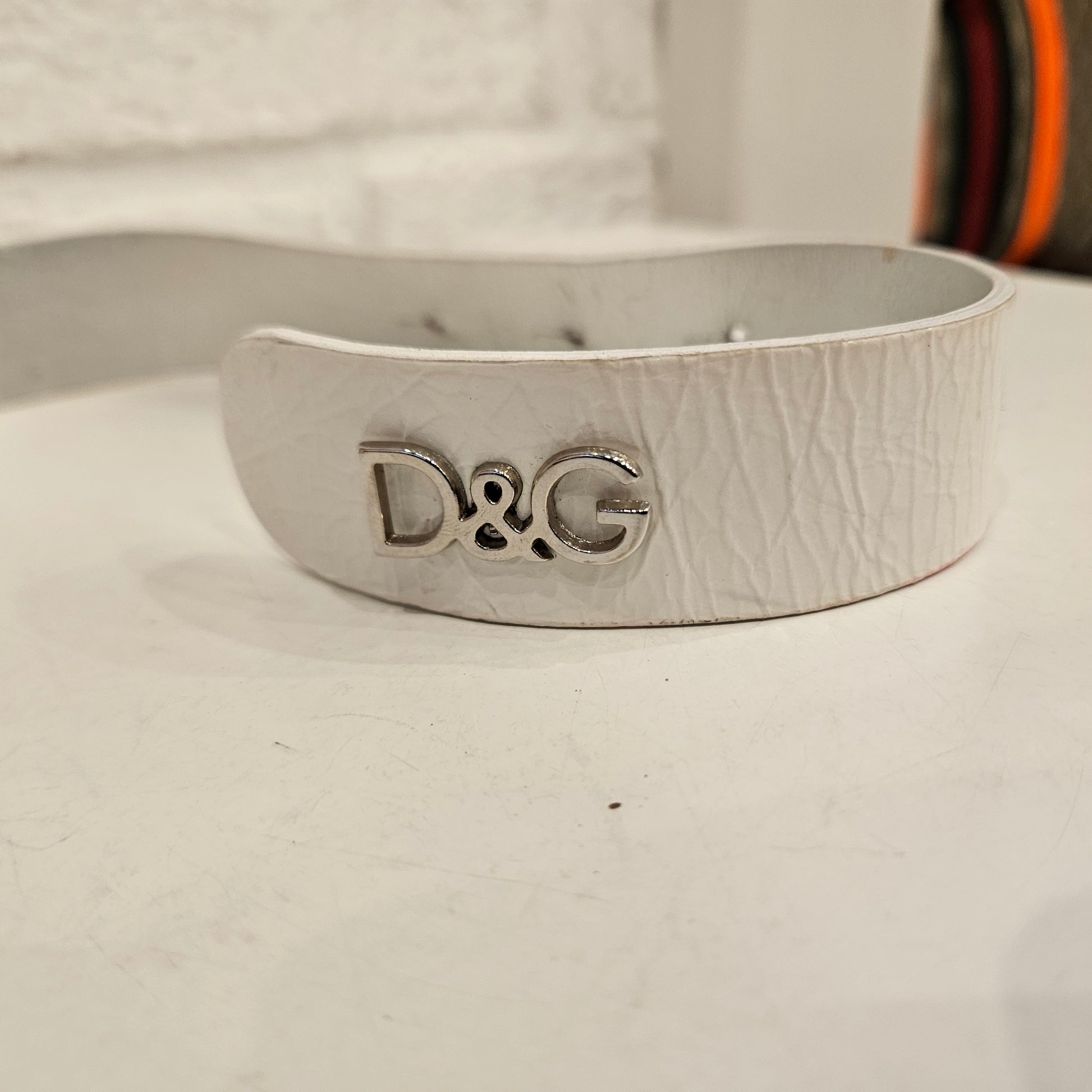 Cintura in pelle bianca Dolce&Gabbana,  articolo in buone condizioni che porta normali segni dovuti all'utilizzo