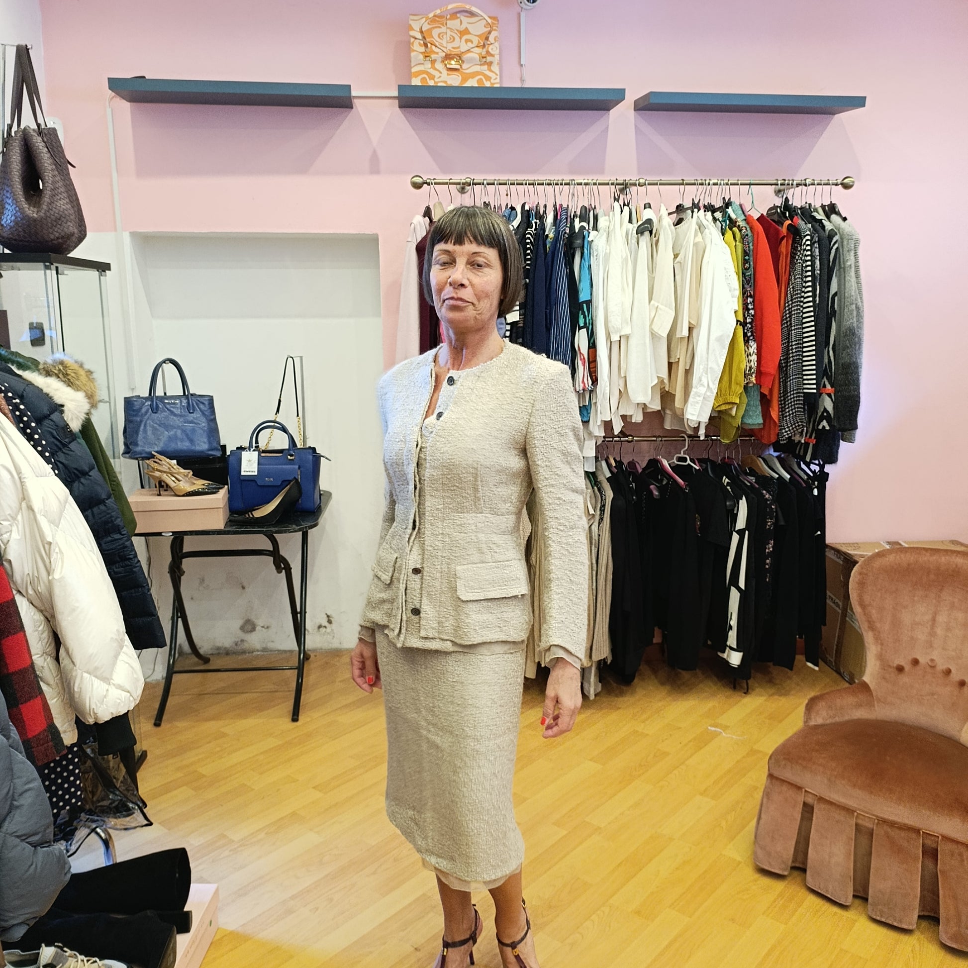 Completo bouclé Prada in colorazione beige rosata tg 42 in viscosa e lana, condizioni ottimali