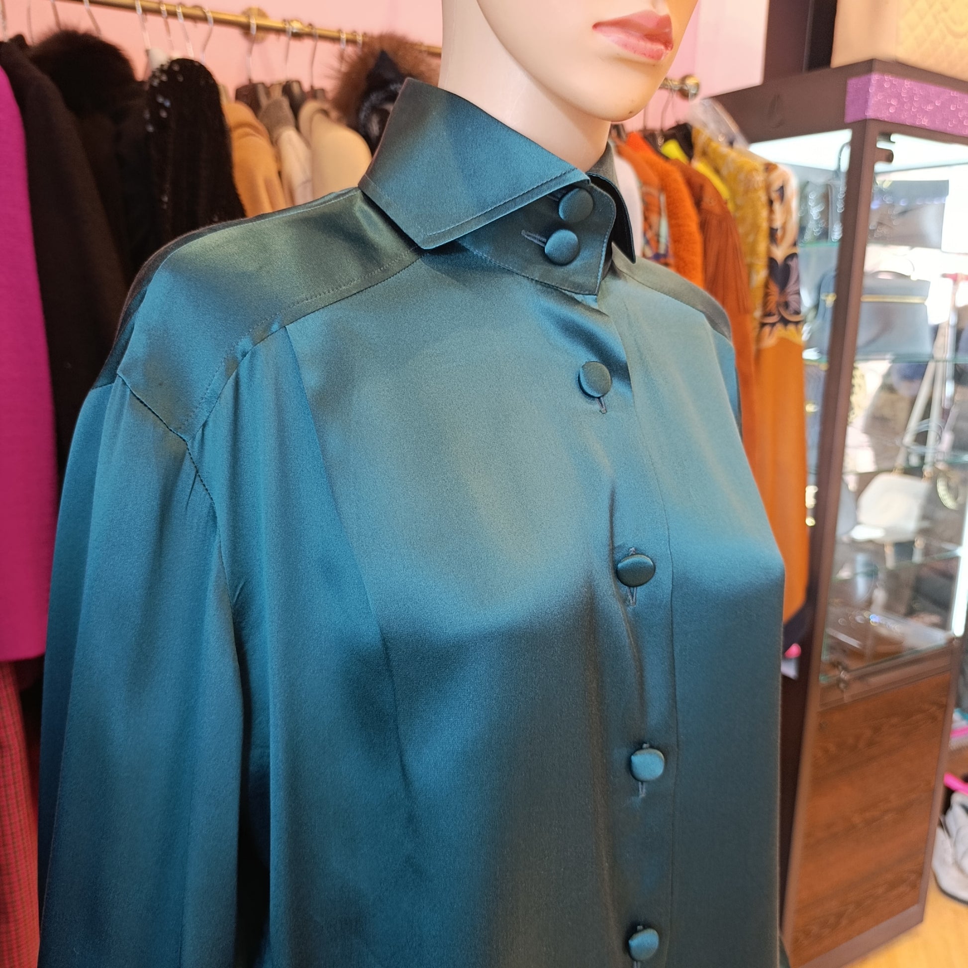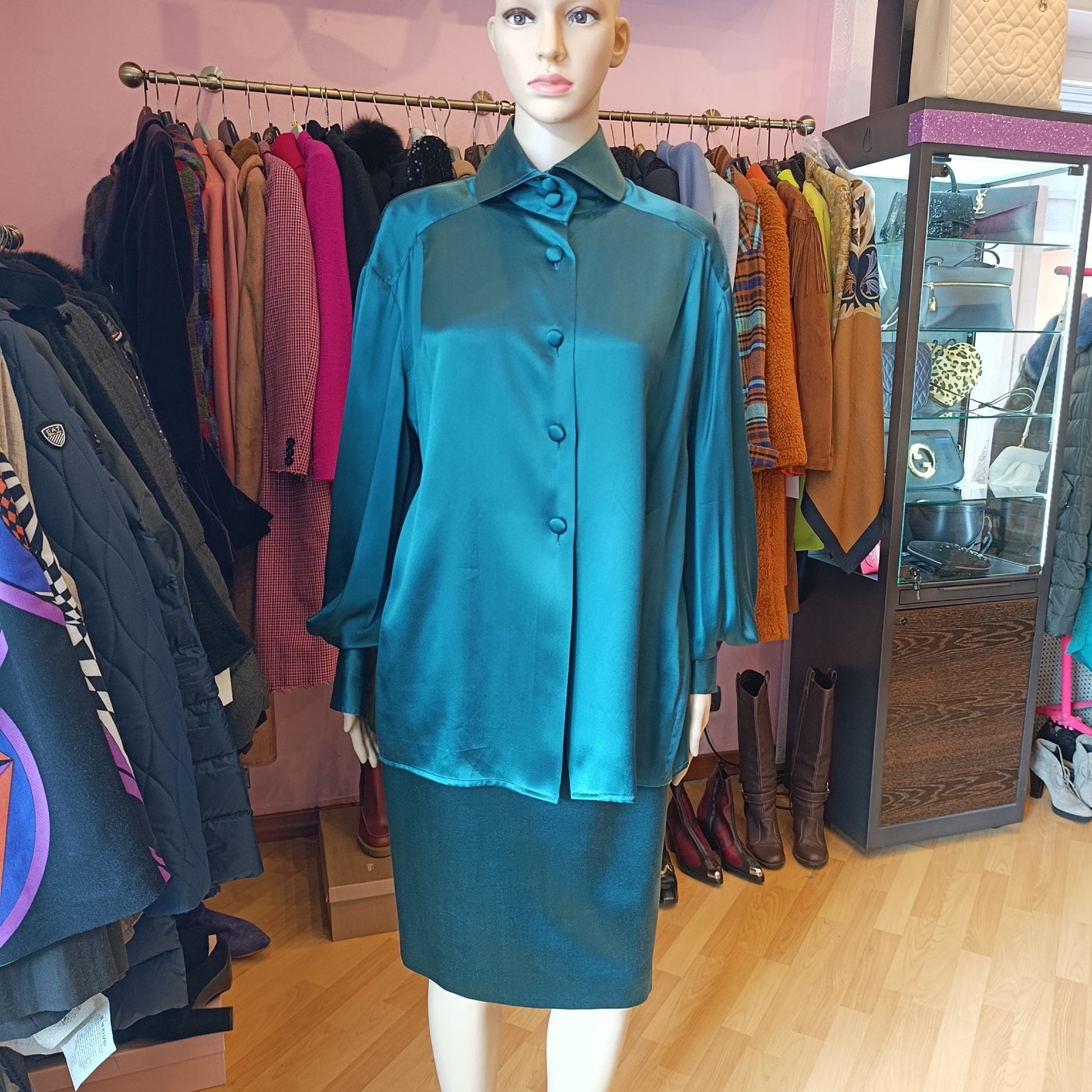 Completo elegantissimo verde con tantissimi dettagli composto da gonna longuette e camicia.