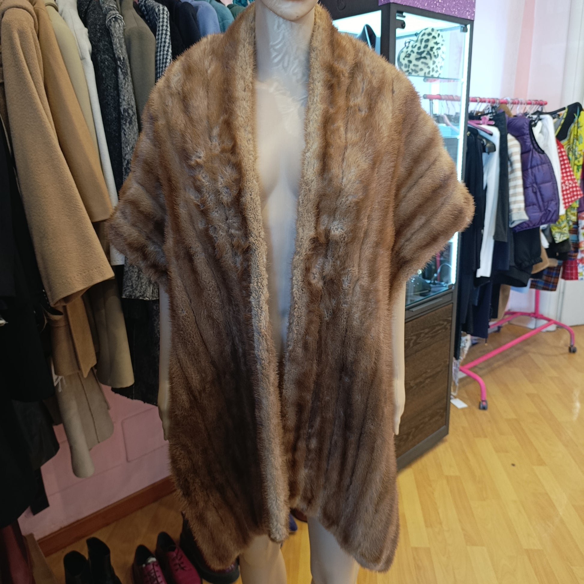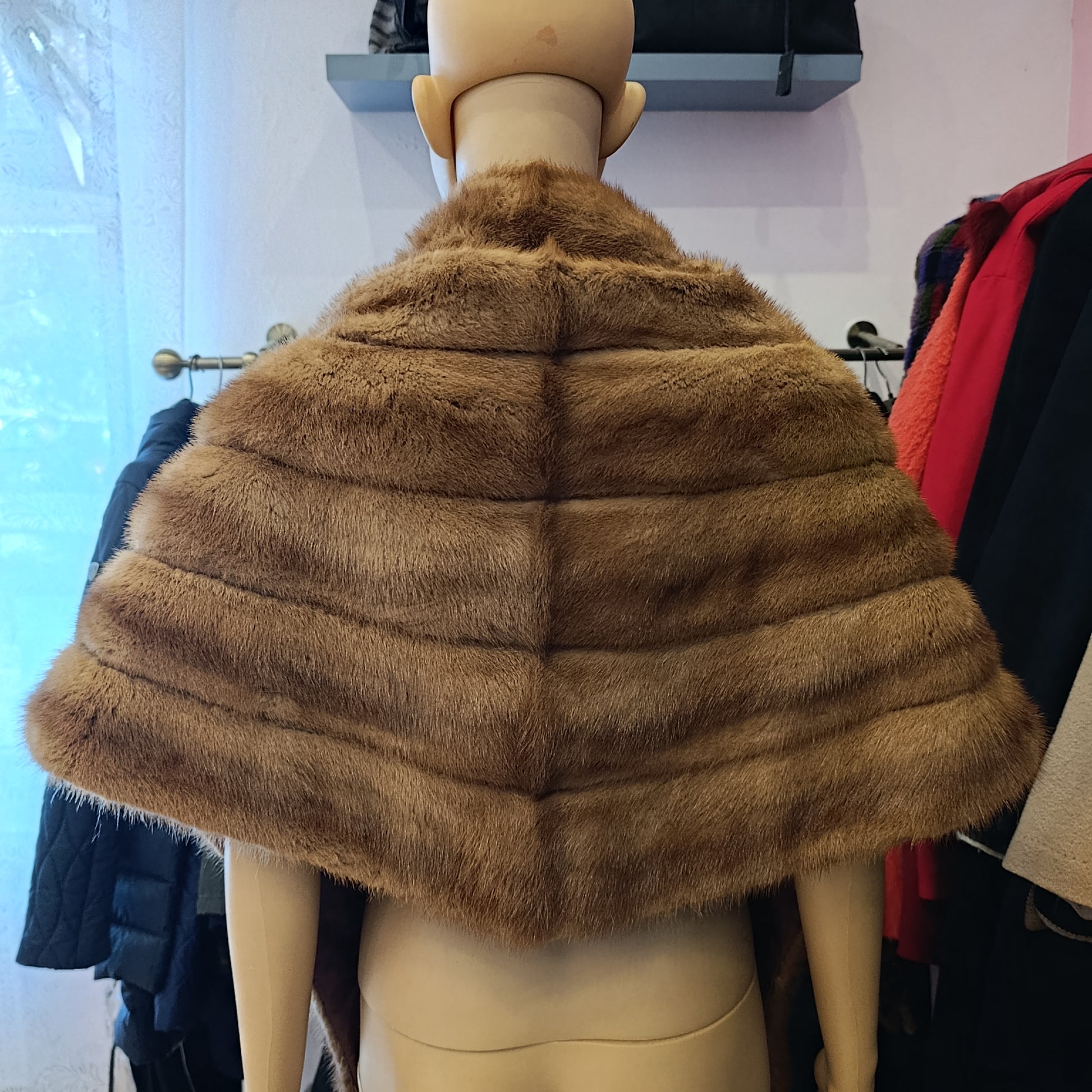 Coprispalla in pelliccia di visone chiaro/Miele vintage TU.