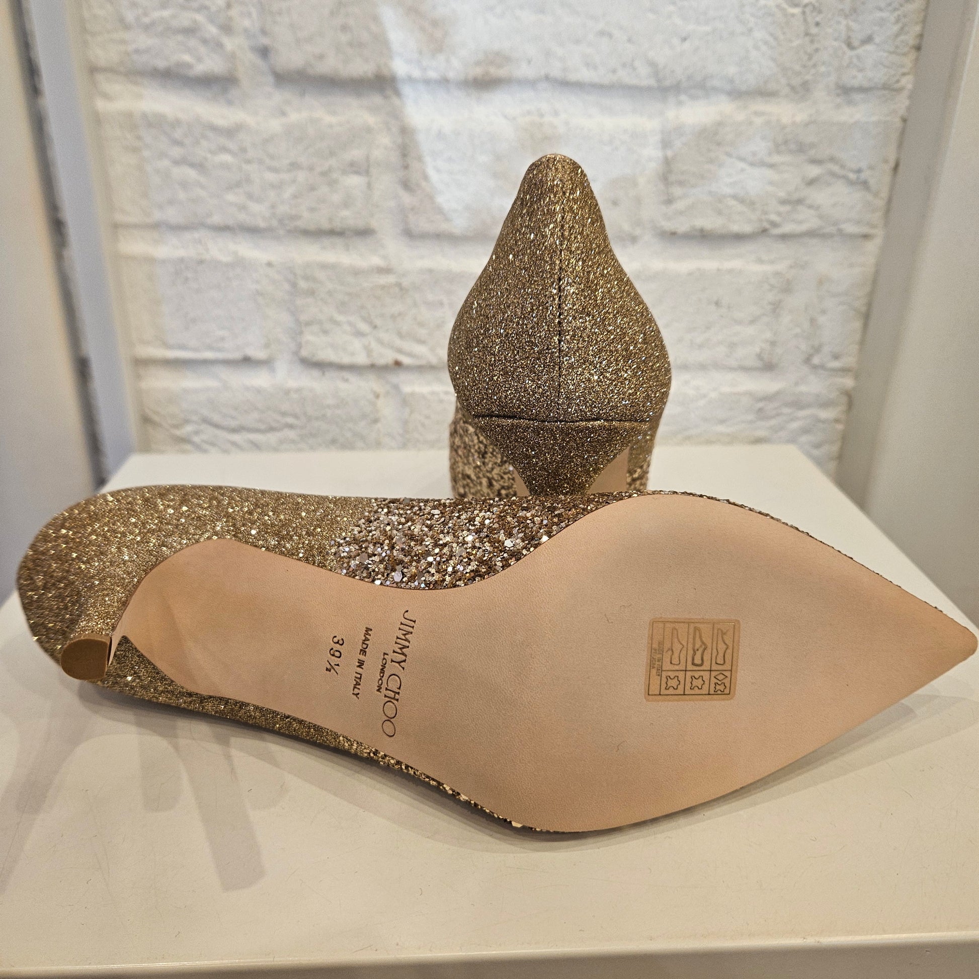 Décolleté Jimmy Choo glitterate in colorazione oro, scarpe Nuove mai, mai utilizzate con suola immacolata, vendute con scatola e dustbag