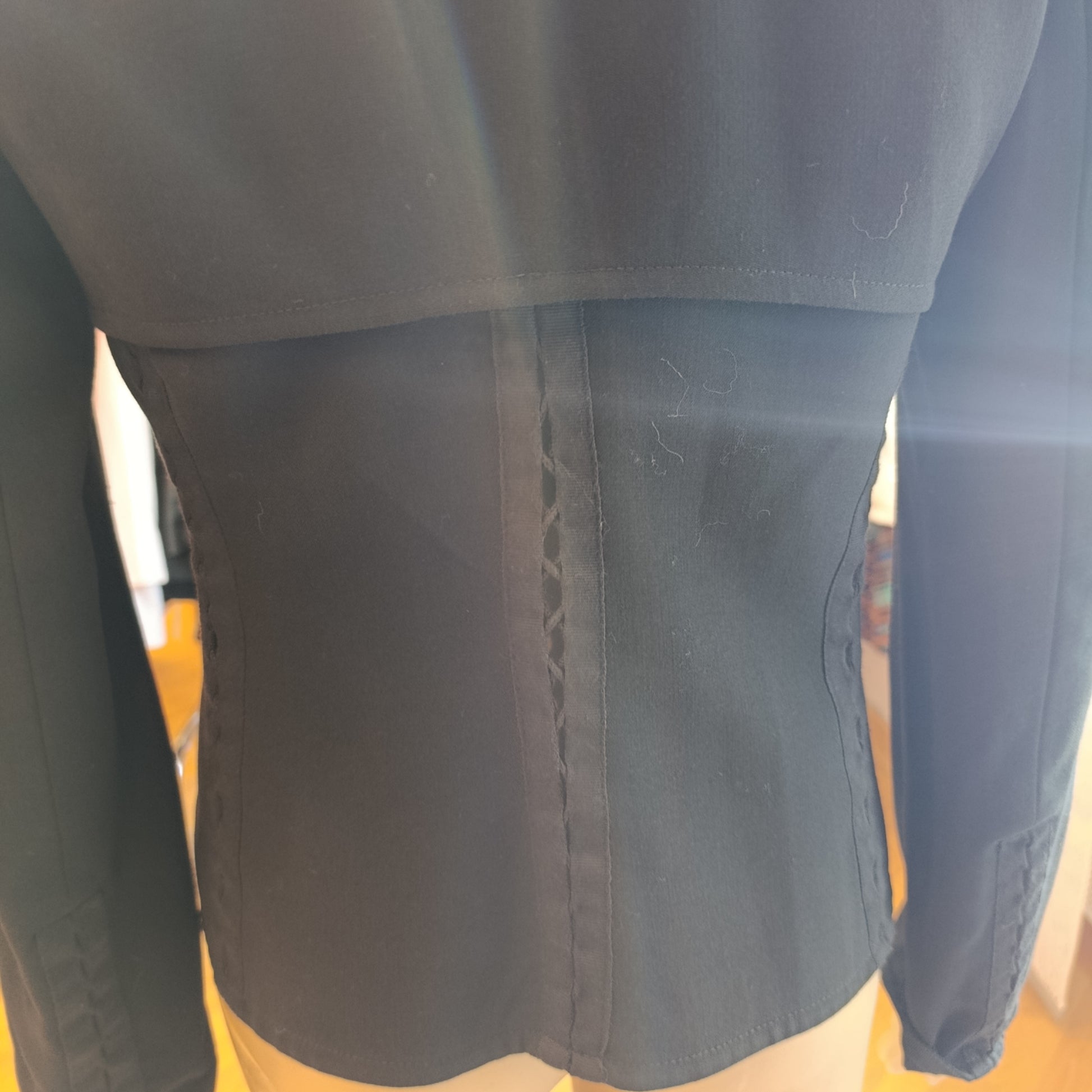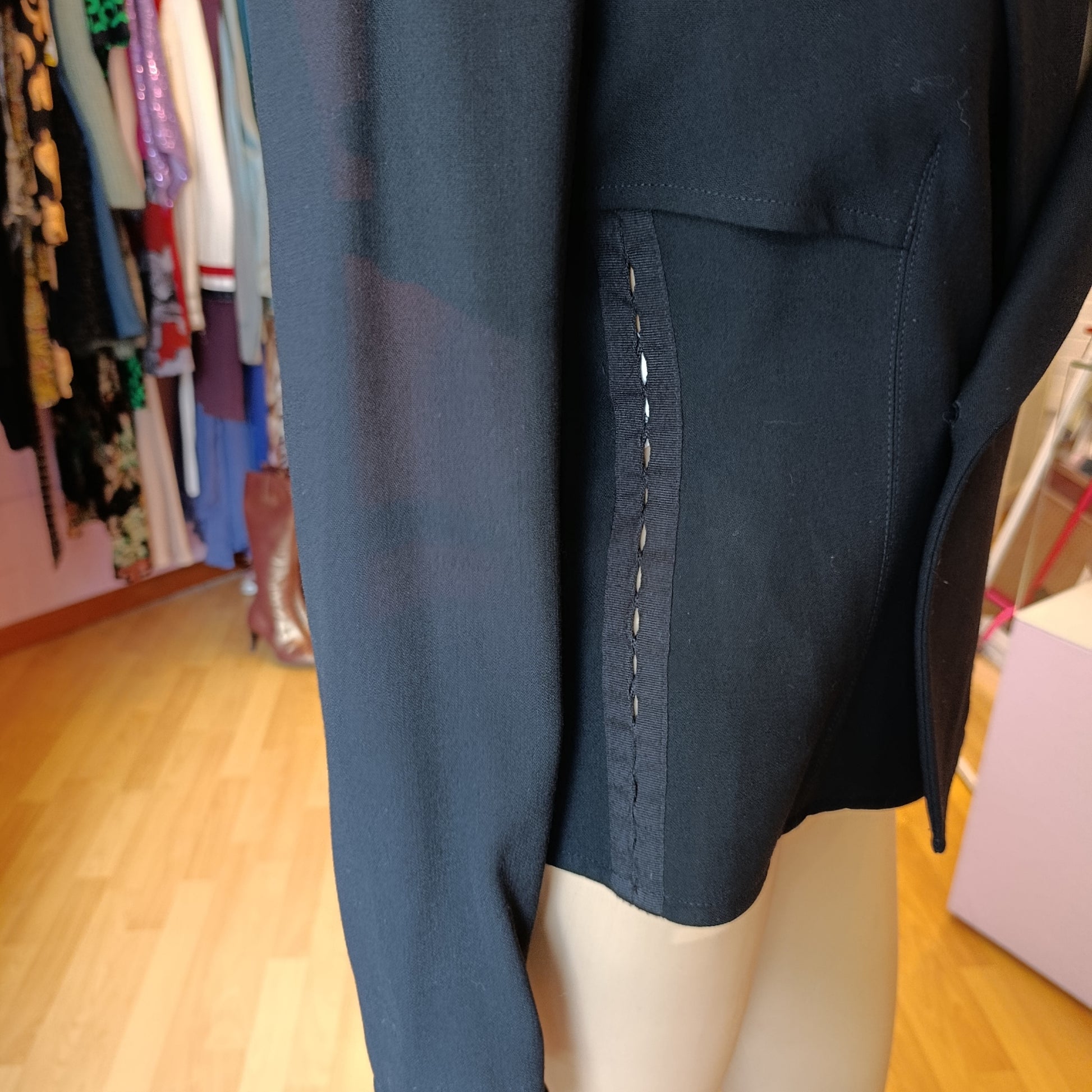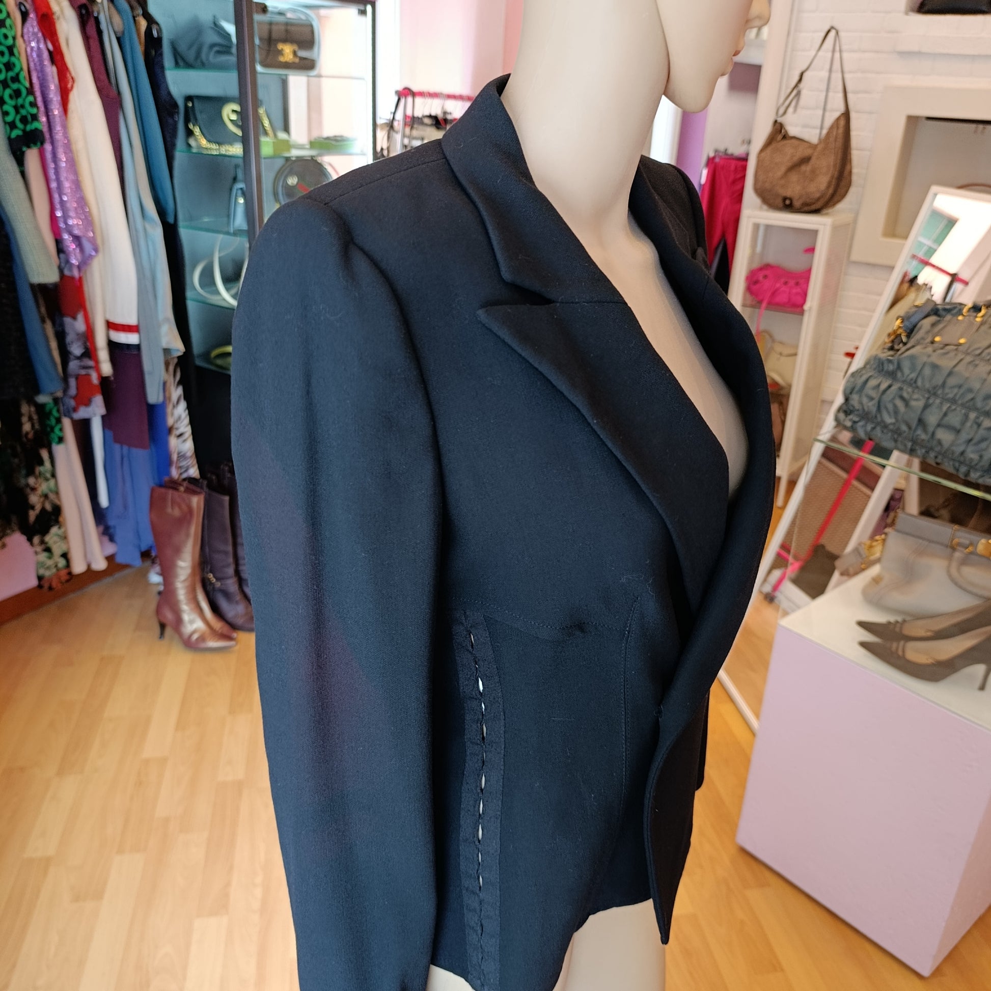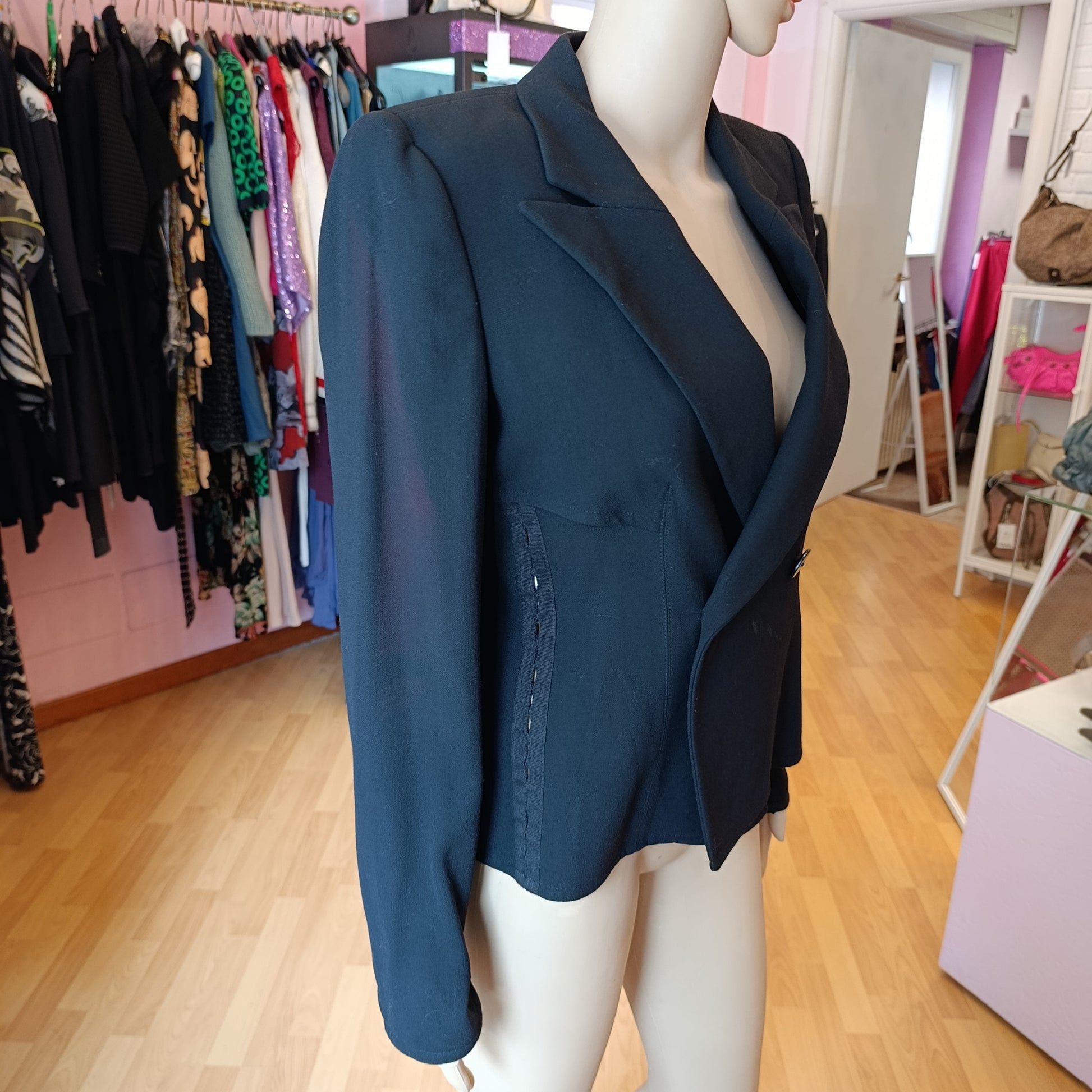 Giacca Armani collezioni tg 44, taglio sartoriale colorazione nera, modello sciancrato con dettaglio ad intreccio, condizioni ottimali