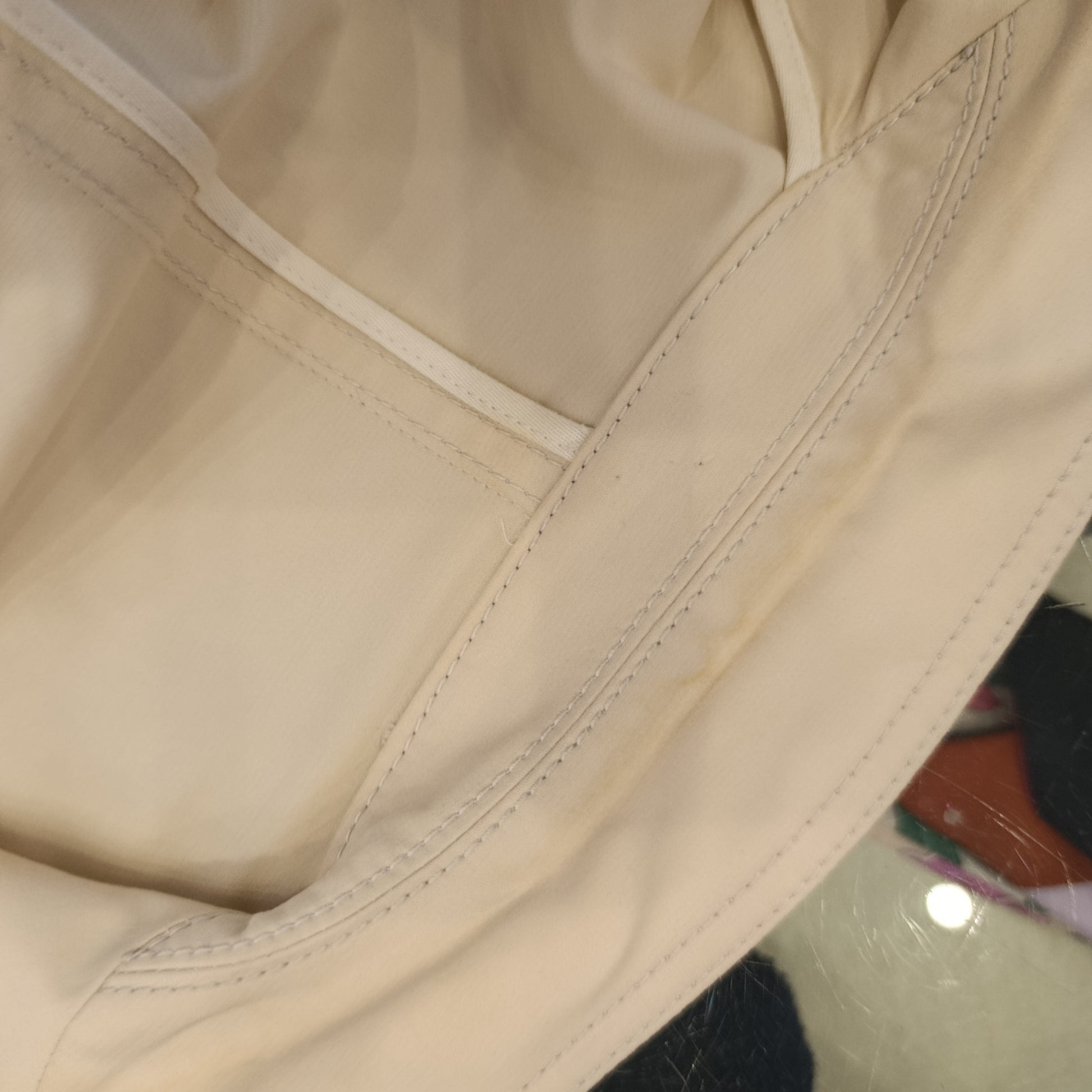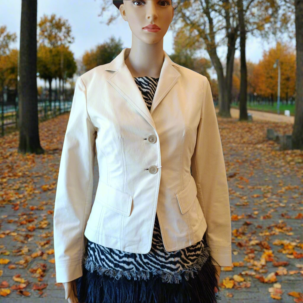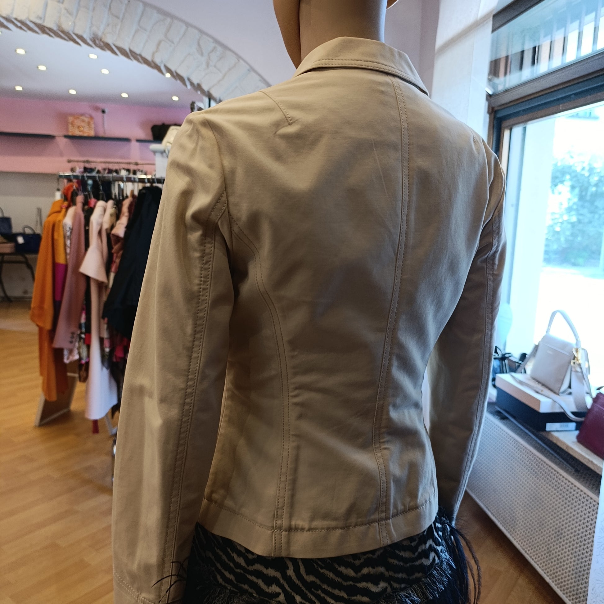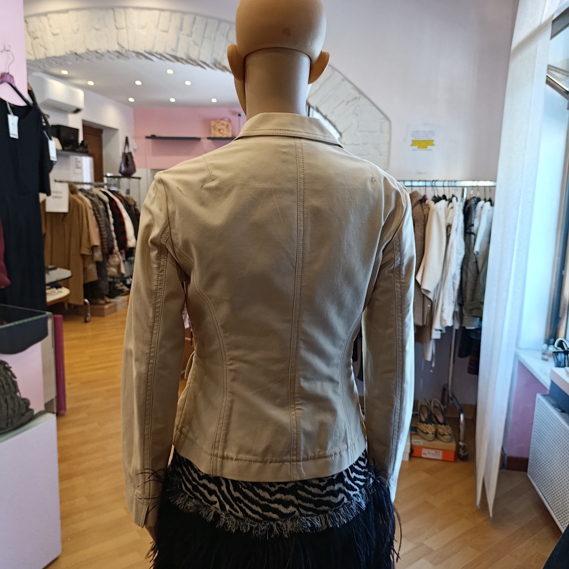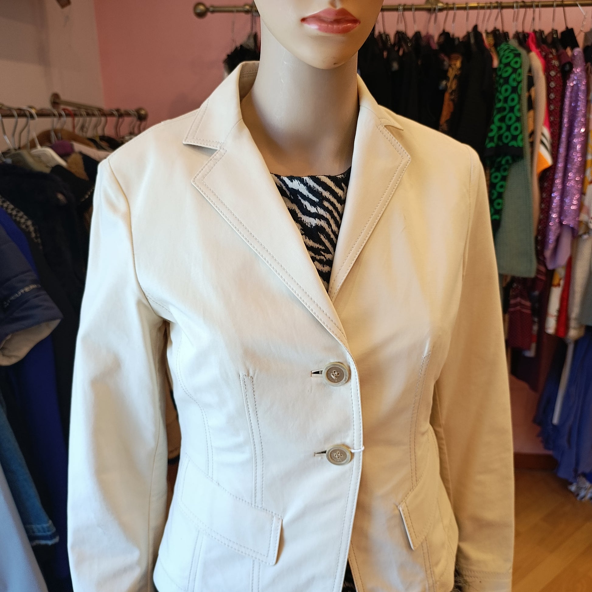 In cotone, condizioni ottimali anche se la giacca essendo chiara è leggermente da rinfrescare