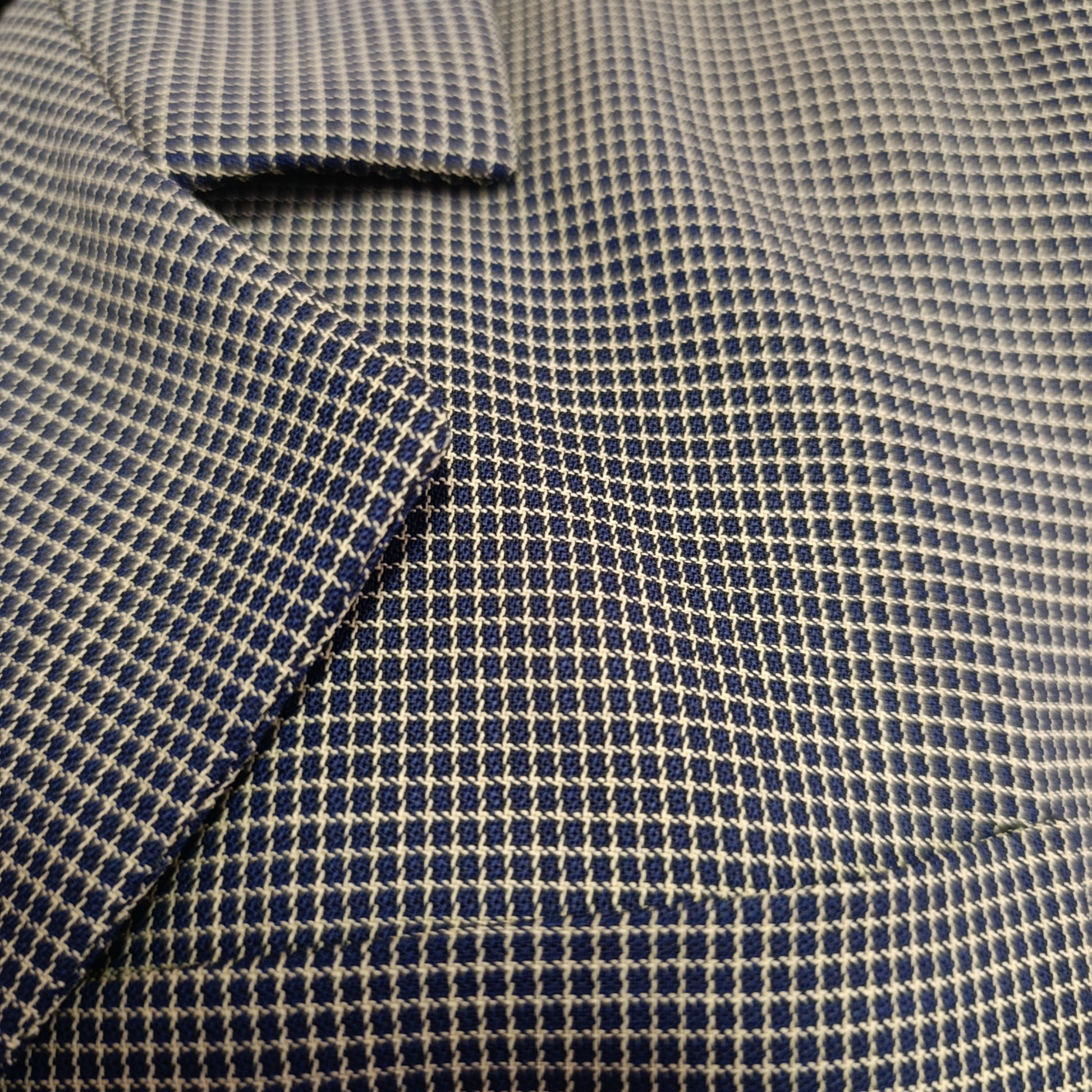 Trama a quadretti blu e griglia panna con bottoni in tinta blu.
