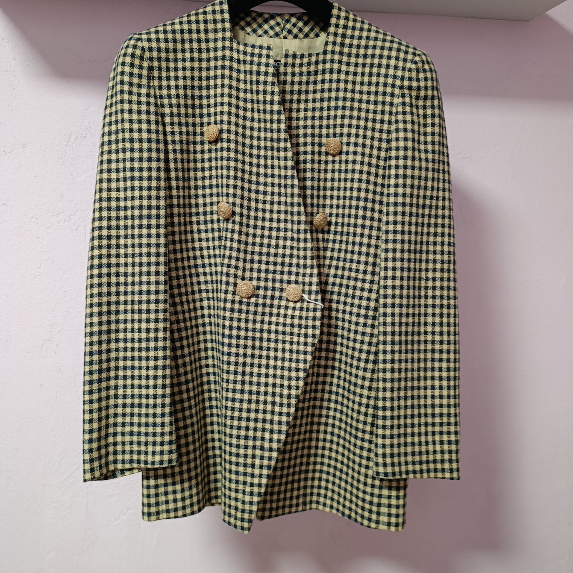 Giacca vintage a quadretti firmata Giorgio Armani con bottoni in tessuto