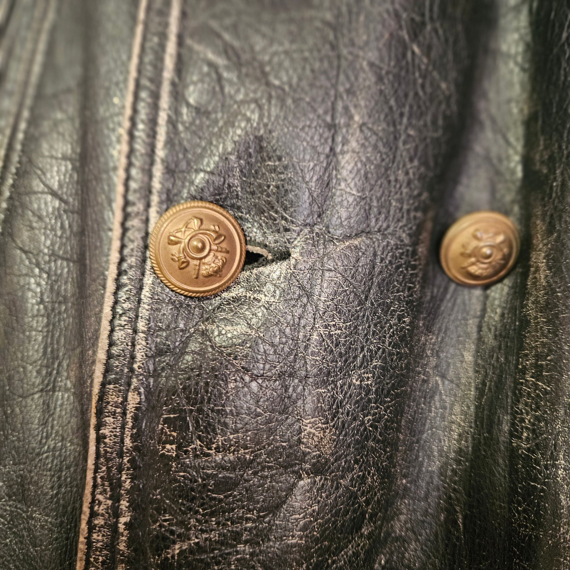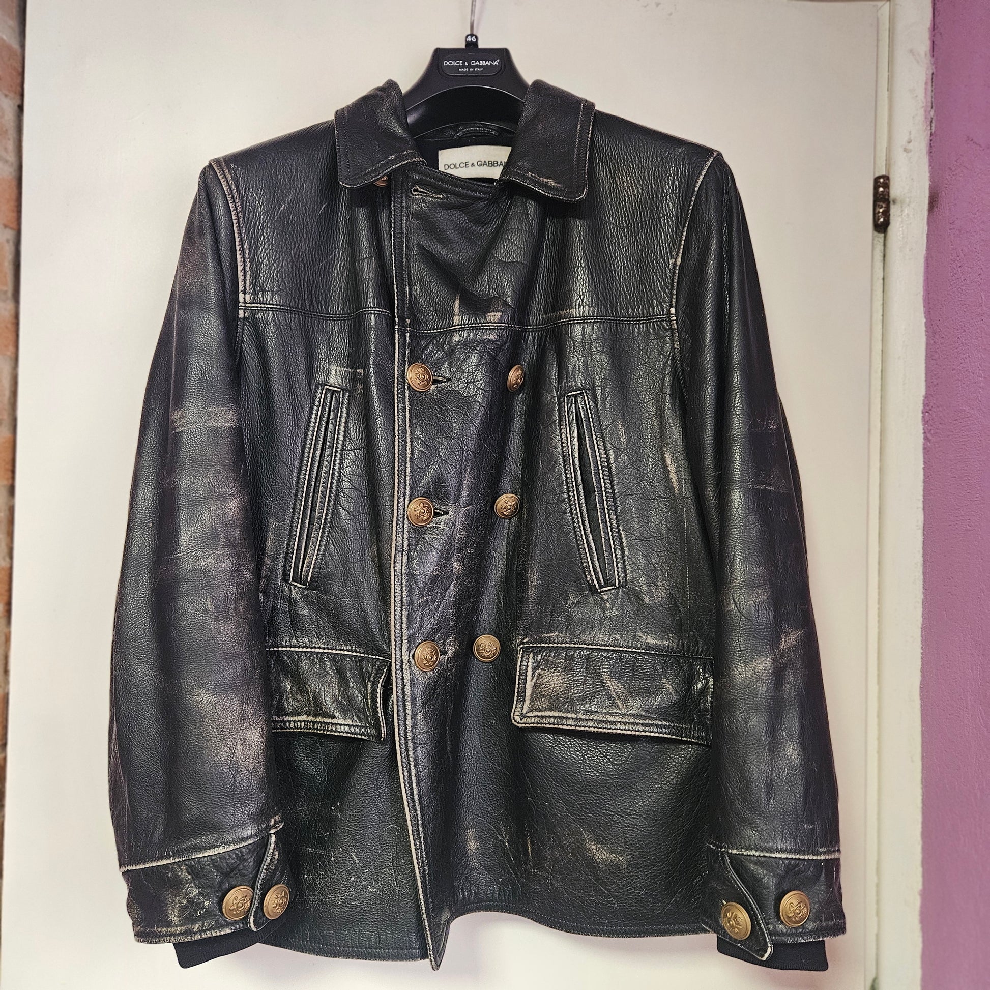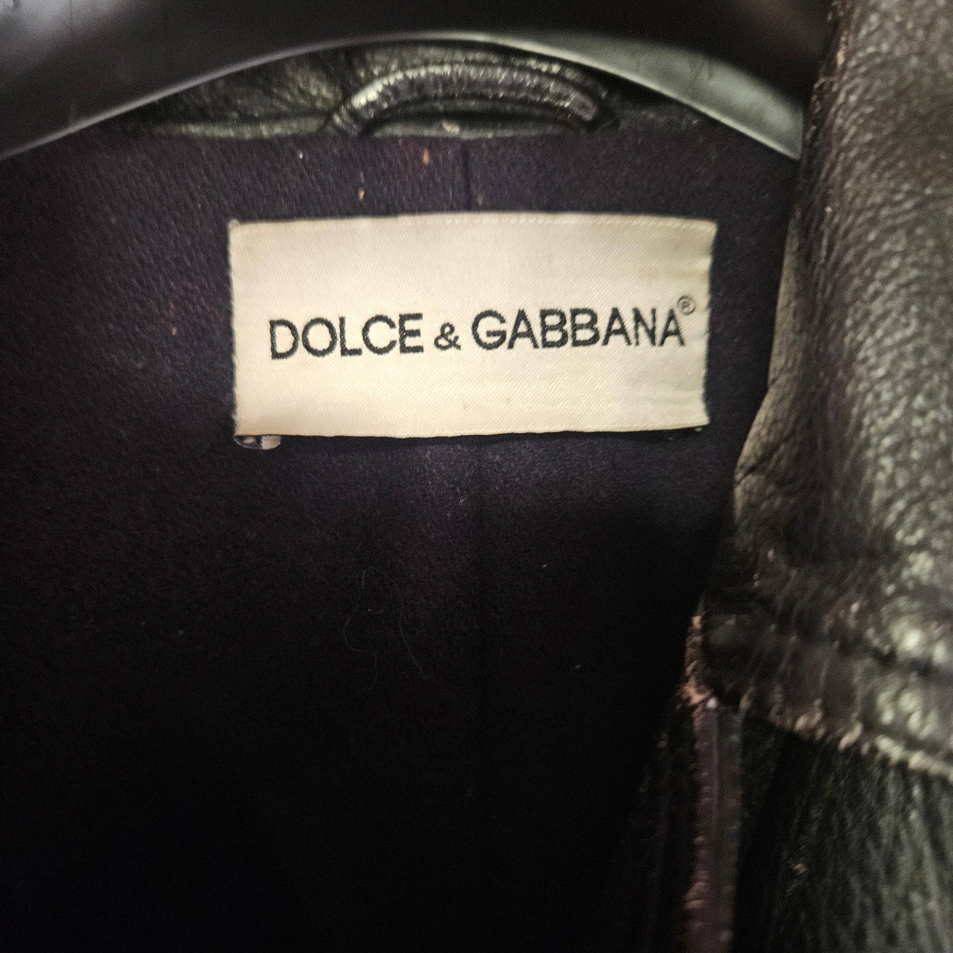 Giaccone in pelle Dolce&Gabbana in colorazione nera effetto delavee , articolo vintage in ottime condizioni, segnaliamo buco interno in una tasca