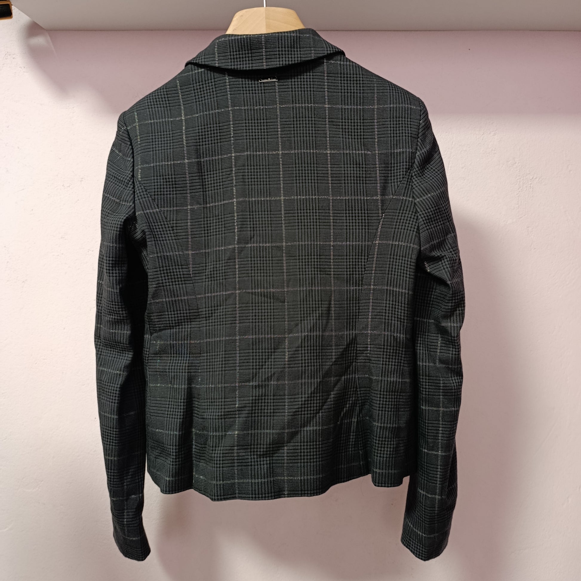 Giacca Liu Jo monobottone antracite fantasia quadri lurex in tg 42, ma ha una vestibilità adatta ad una tg 40.