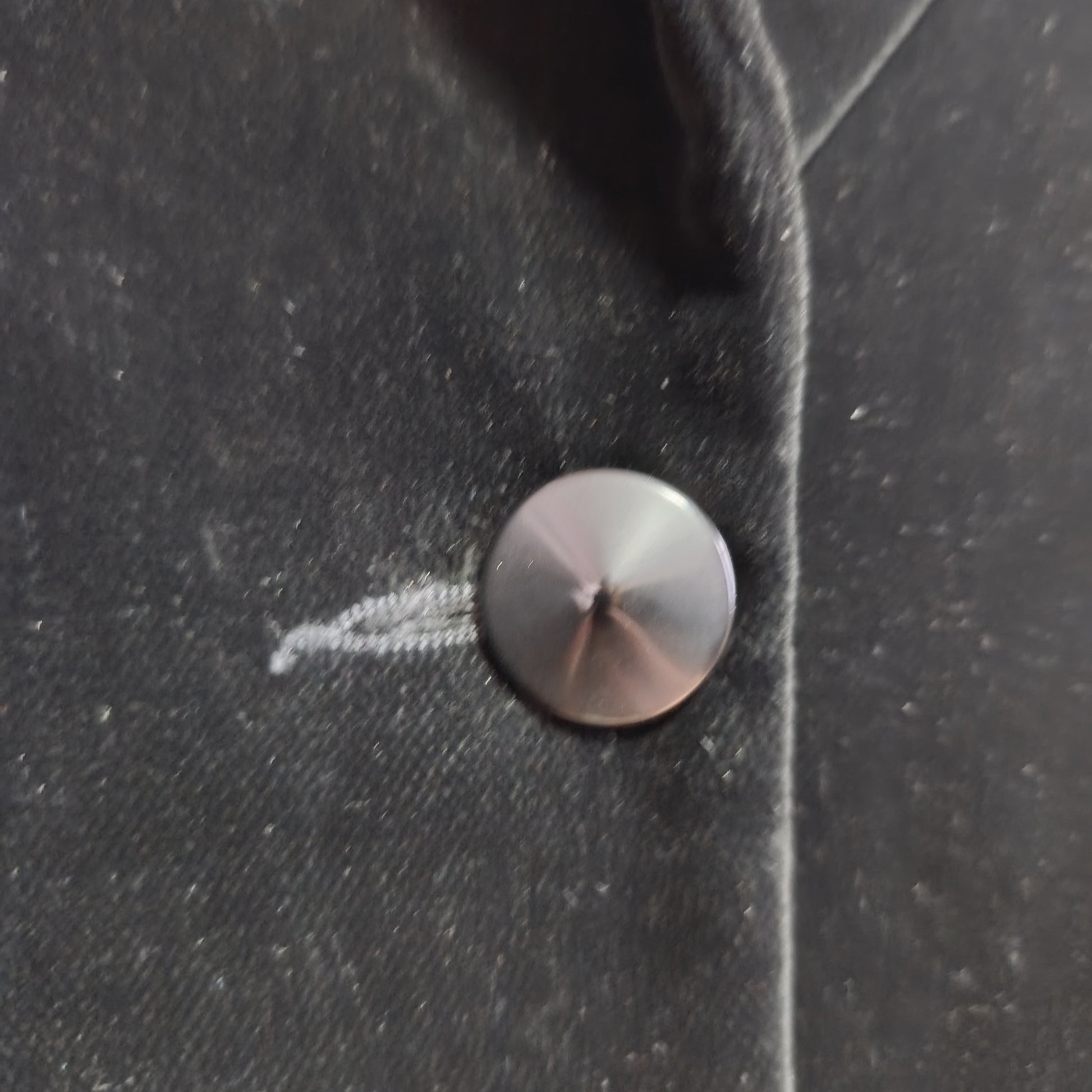 Questa giacca è un pezzo vintage, in velluto nero, monobottone, adatta a eventi formali e informali. Per un evento formale è abbinabile ad un pantalone palazzo anch'esso in velluto nero per creare un bellissimo tailleur da abbinare ad un bel tacco o ballerina per chi non usa i tacchi, impreziosito da un bel girocollo luminoso. Invece per rendendo più sportivo e da tutti i giorni si può abbinare ad un classico jeans dritto anche lavaggio chiaro con una sneakers bianca oppure un bel mocassino, occhiali da sole e il look è fatto.