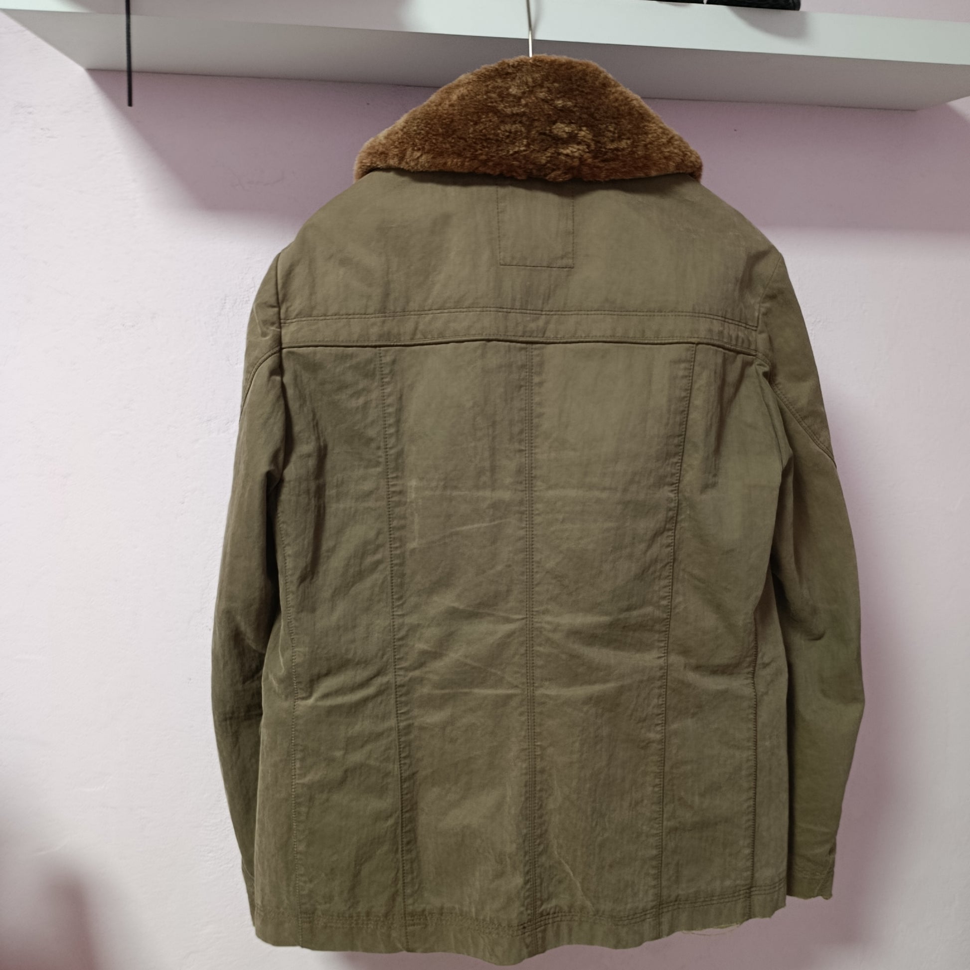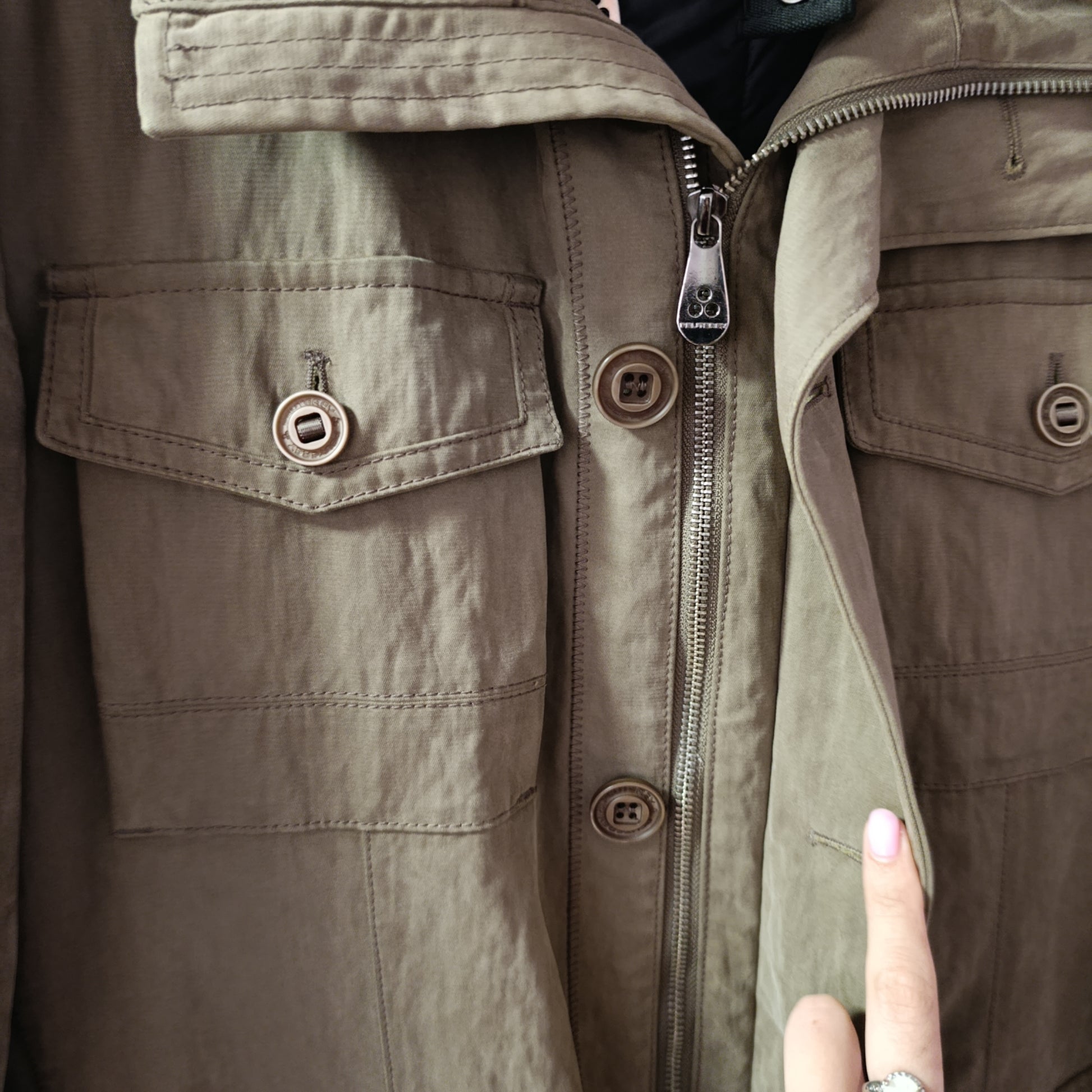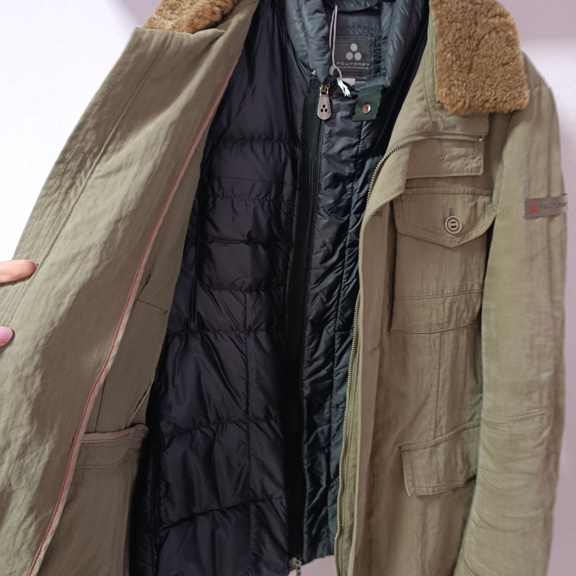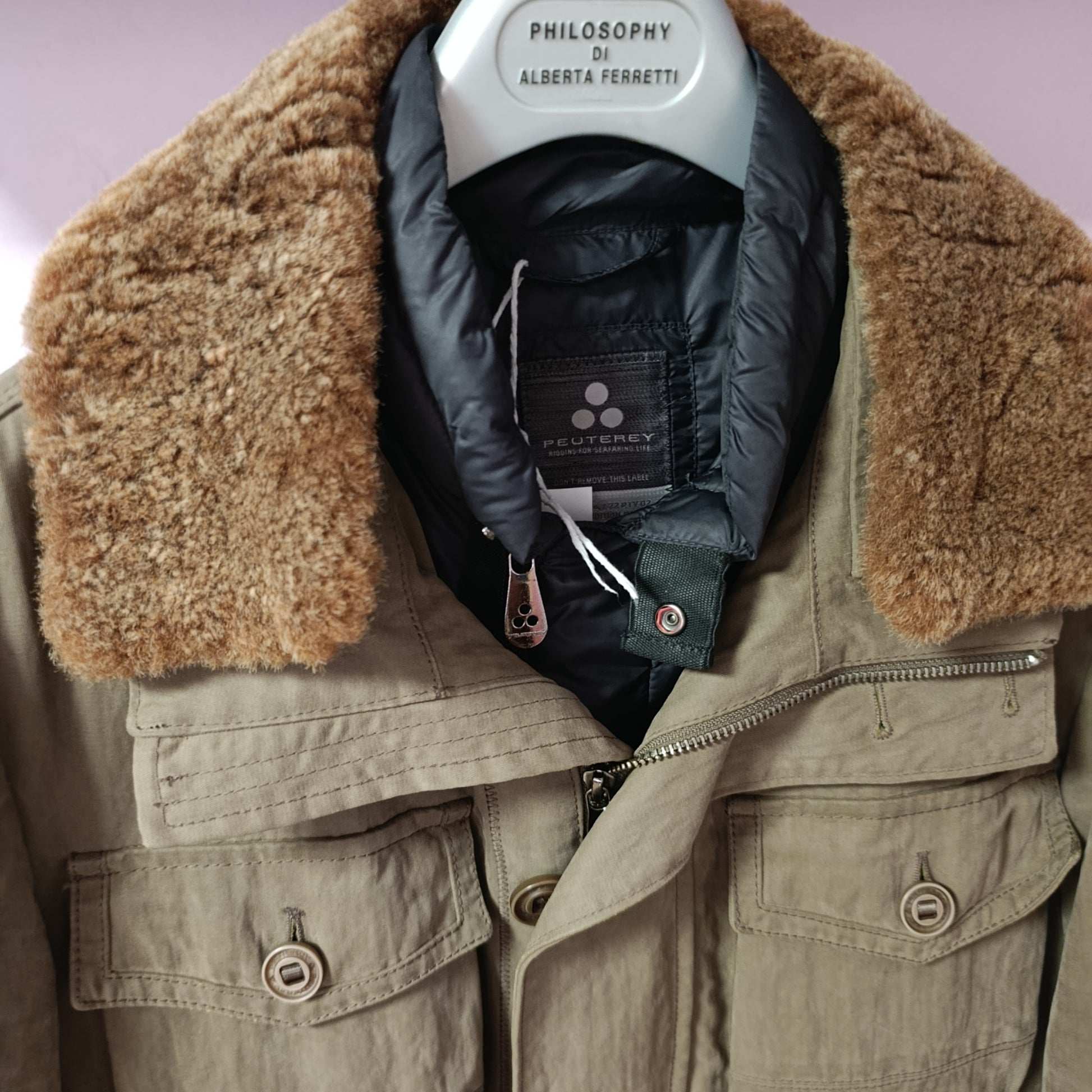 Bellissima giacca Peuterey tg 52 colorazione cachi, doppia imbottitura, giacca a due strati, con collo di lana colorazione marrone, in ottime condizioni