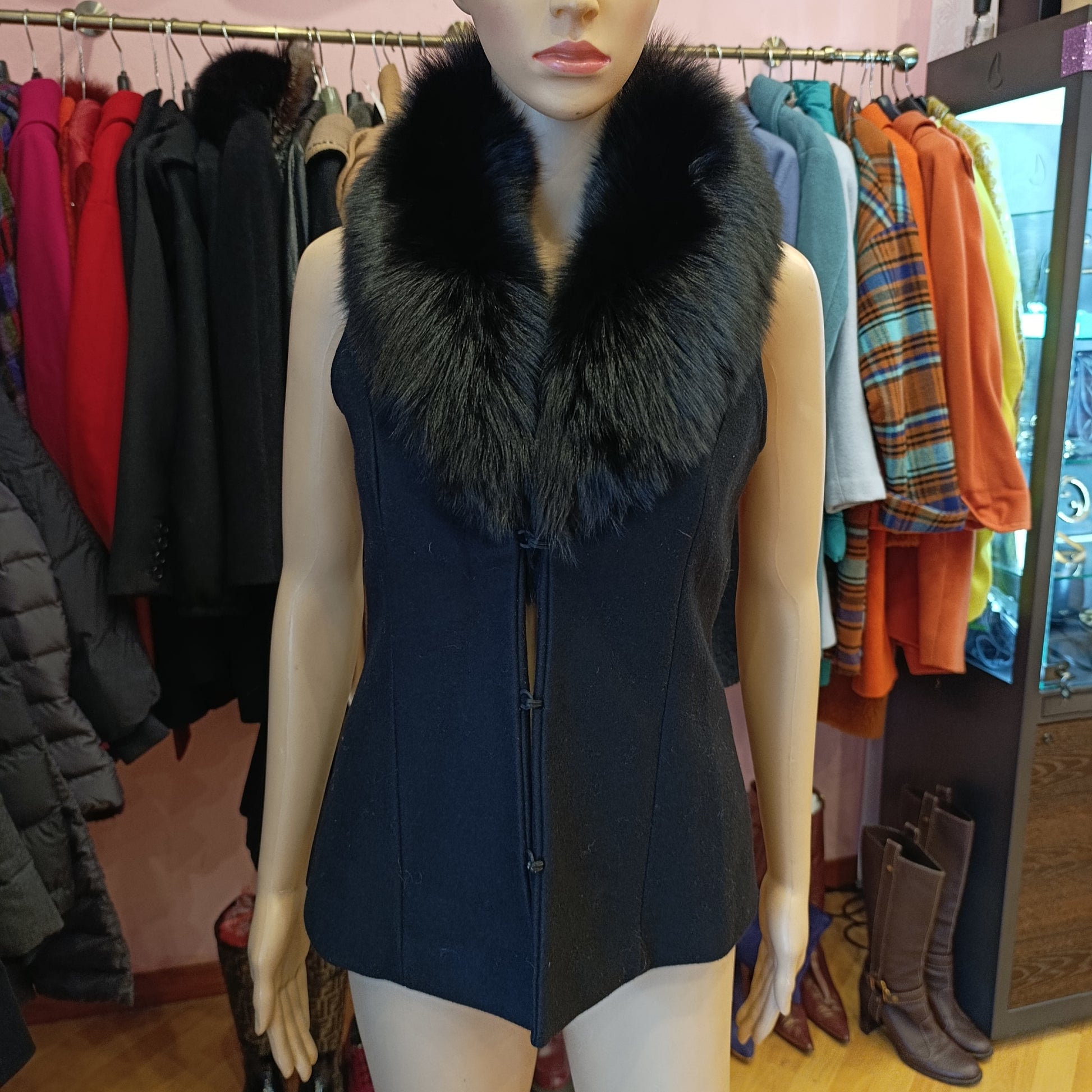 Gilet nero Flavio Castellani con inserto in pelo di volpe nera tg 40 vestibilita ridotta.