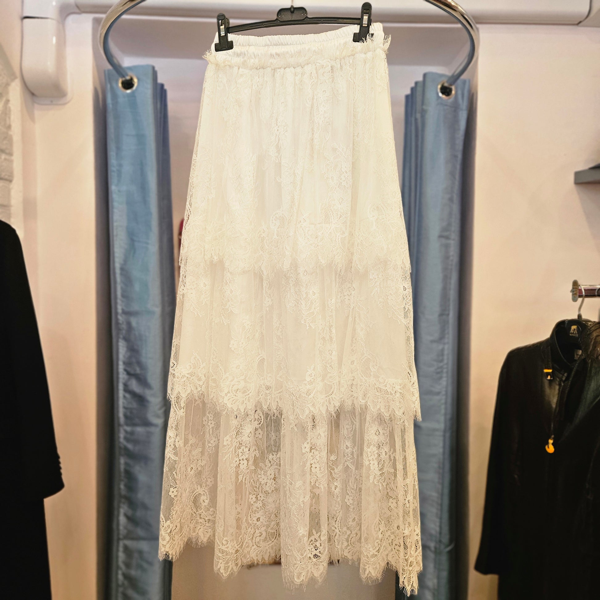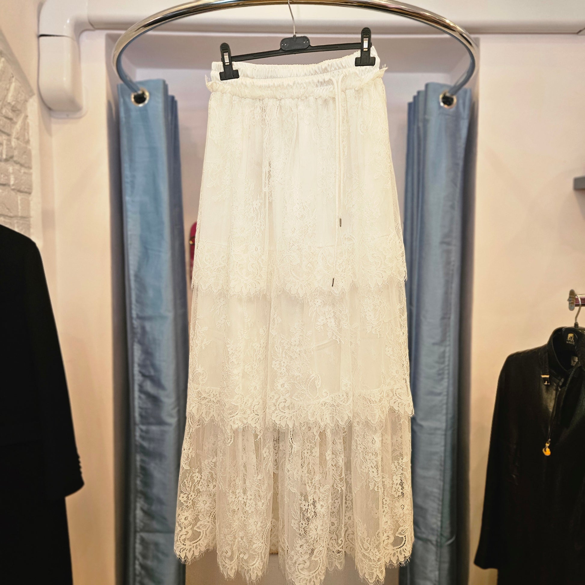 Gonna Motel in colorazione bianca costruzione a balze.